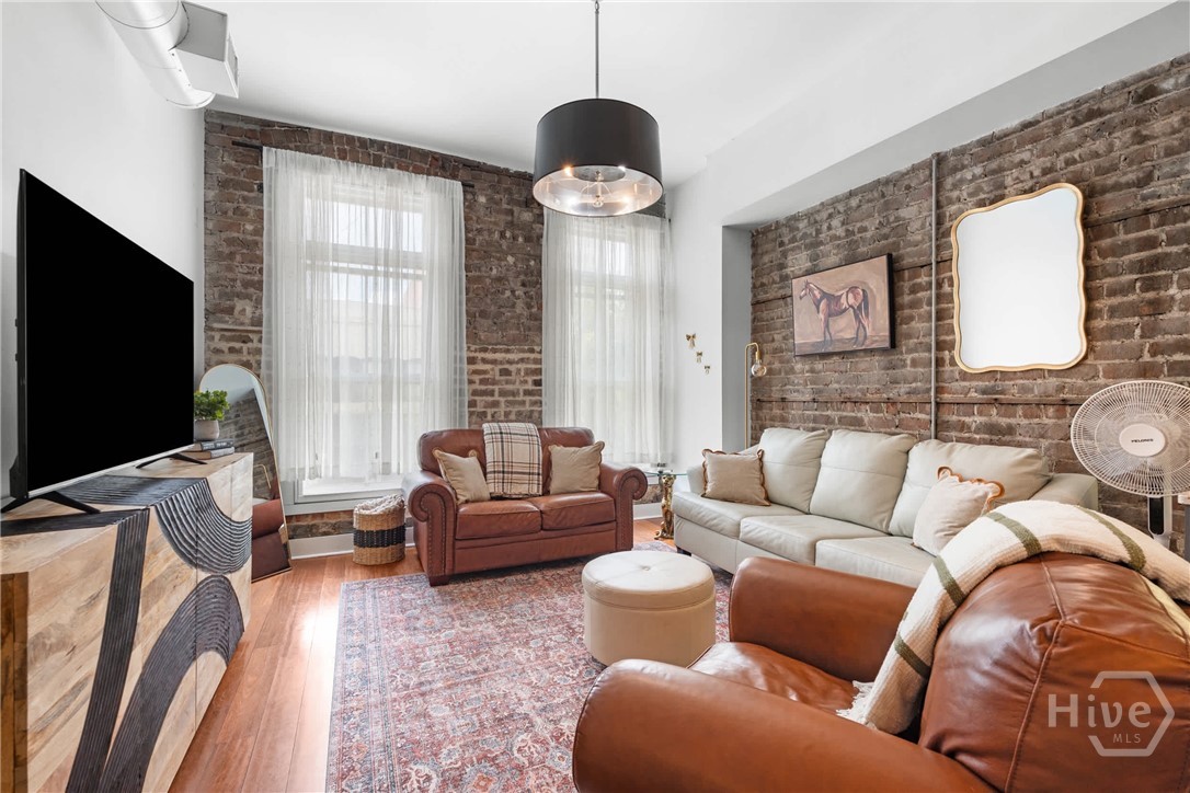 Located on iconic Broughton Street in historic Downtown Savannah, this beautifully updated loft places you in the center of it all with exceptional walkability to shopping, dining, entertainment, and cultural landmarks. The interior showcases soaring ceilings, exposed brick, and contemporary upgrades that create a stylish yet comfortable living space. Newly installed windows help minimize city traffic noise, offering a quieter urban experience. With a well-documented and proven Airbnb rental history, this turnkey property presents an outstanding opportunity for an income-producing investment, second home, or personal downtown residence.