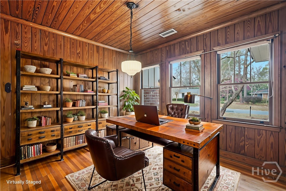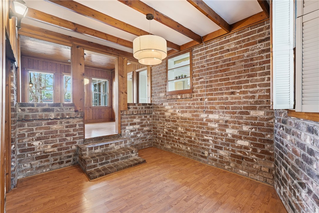 Nestled in Midtown’s sought after Fairway Oaks neighborhood, this move-in ready 3 bedroom, 3 bath residence offers timeless Savannah charm, rare architectural character, and an unbeatable location. Built of coveted Savannah Gray brick, the home features gracious living spaces including a formal living room with custom built-ins and fireplace, an elegant dining room, and a spacious den with a second fireplace and classic brick hearth. Flexible bonus room provide excellent options for a home office, study, guest space, or 4th bedroom/secondary primary suite. Original hardwood floors, refined period details, and abundant natural light create a warm and inviting atmosphere throughout. The kitchen overlooks a private backyard, while the screened porch, mature landscaping, and storage shed enhance the home’s outdoor appeal. A new roof installed in October 2025 offers added confidence and value. Ideally located near downtown Savannah, premier dining, shopping, cultural attractions, and major hospitals, this exceptional property is ready for immediate enjoyment.