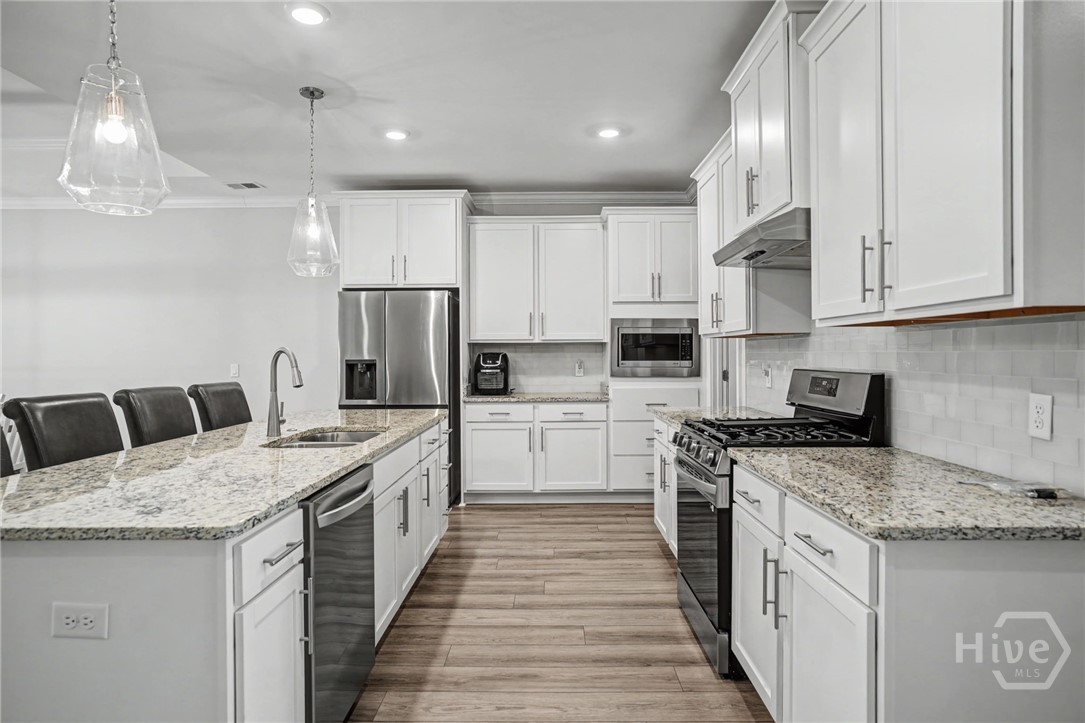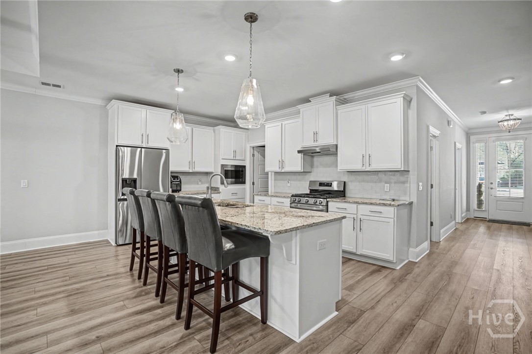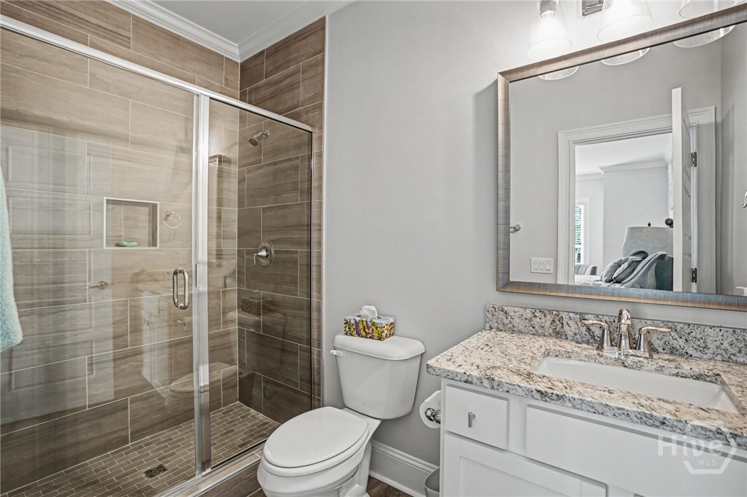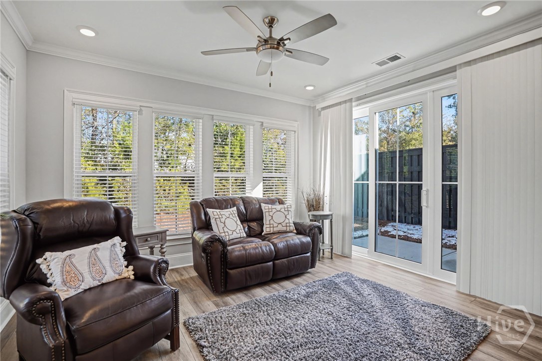 Enjoy easy, low-maintenance living in the gated Herb River Bluff community. This immaculate, newer-construction townhome offers a thoughtfully designed open floor plan with generously sized rooms. The kitchen features like new stainless-steel appliances, a beautiful quartz island with seating and a walk-in pantry. Spacious living room with gas fireplace and sunroom. There are two primary suites on the main floor, along with abundant storage and separate laundry room. Upstairs, the flexible loft space with full bathroom is perfect for a den, bedroom, or office. There is an also an unfinished space that could easily be transformed into additional living area with a separate walk in attic for more storage. Large two-car garage with bike room. Outside there is a patio backing to a wooded view. The HOA covers lawn care, common areas, and gated entry. This property is move-in ready! Conveniently located near Sandfly and Southside. Close to shopping, dining, schools, hospitals and downtown Savanah!