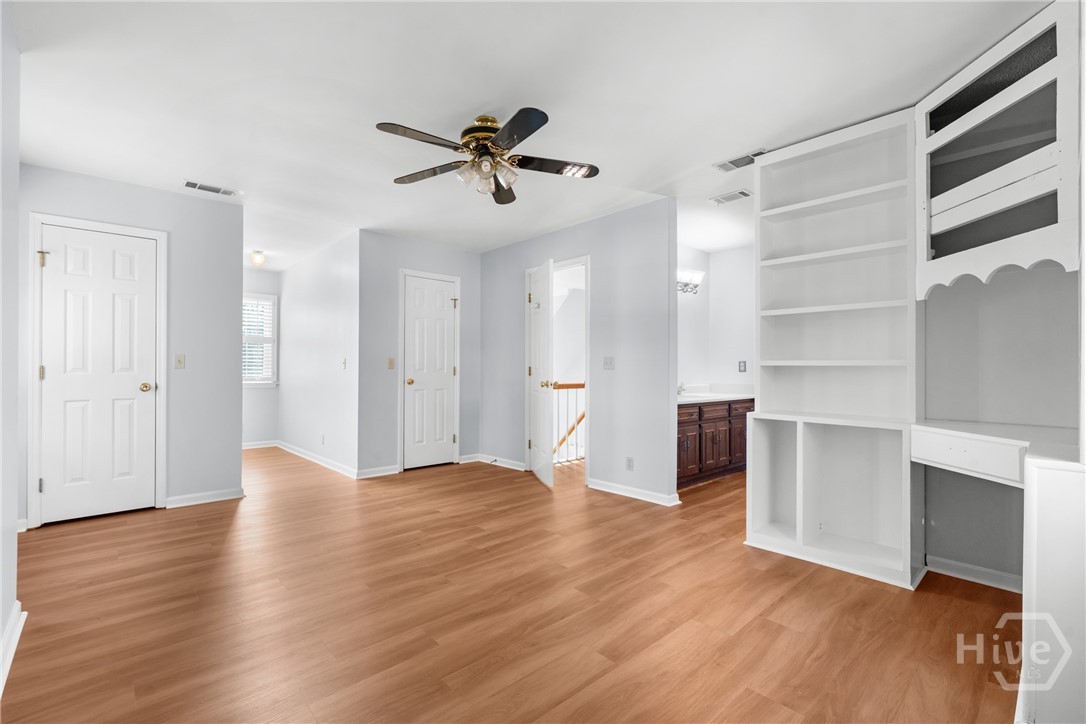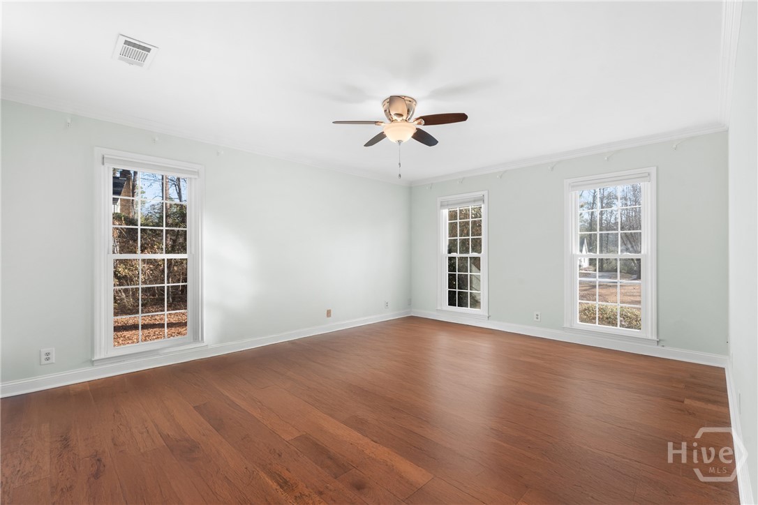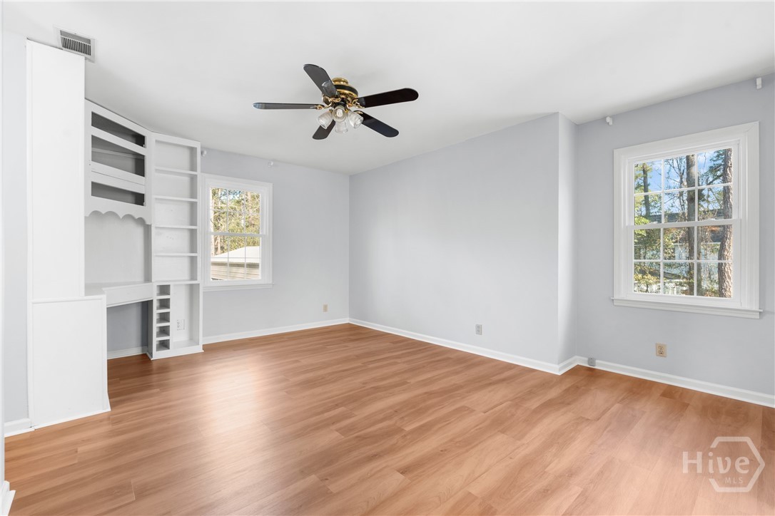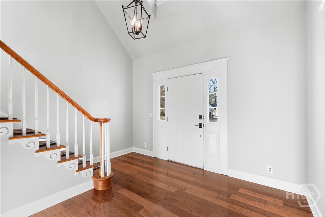 Beautiful one-owner custom-built Cape Cod-style home in the desirable Georgian Walk neighborhood. This 2,800+ sq ft, 3-bedroom, 2.5-bath home welcomes you with a dramatic two-story foyer and solid oak staircase. The open main floor offers a formal dining room, kitchen with ample cabinetry and breakfast nook, and a spacious living room featuring custom built-ins and a cozy wood-burning fireplace with Buck stove. The primary bedroom includes an ensuite bath, while two large upstairs bedrooms share a Jack-and-Jill bath with separate dressing areas. An 18x25 sunroom added in 2012 provides excellent entertaining space and opens to a large patio; new heat pump and mini-split installed in 2023. Gorgeous Mannington Solid Hickory wood floors span the main level, with ceramic tile in the half bath. Fresh paint throughout, new roof in February 2025, and new LVP flooring upstairs in January 2026. A large carport/storage building added in 2025 is ideal for RV, boat, or vehicle storage and includes 30- and 50-amp electrical hookups. Located in a well-established, well-maintained neighborhood, this home offers space, quality, and timeless appeal.