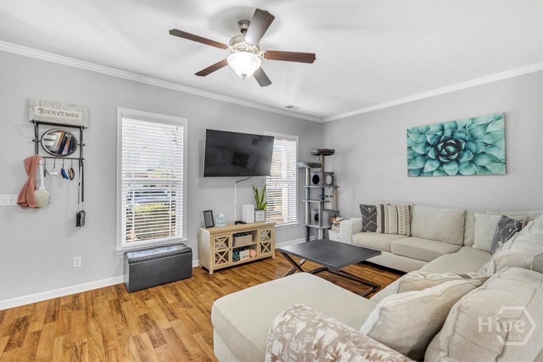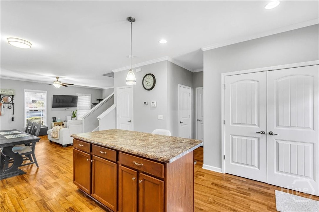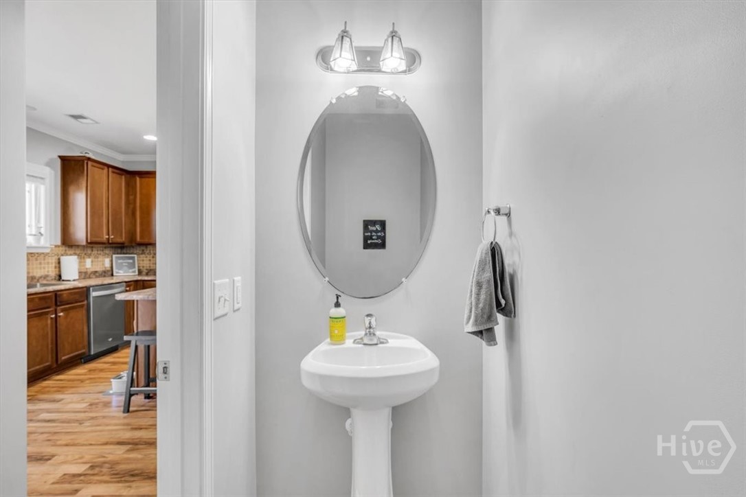 Welcome Home! 308 Gallery Way in Pooler, GA- a beautifully maintained 3-bedroom, 2.5 bath townhome offering a modern, and cozy feel with an open and functional layout ideal for everyday living and entertaining. The home features LVP flooring throughout the main living area, SS appliances, spacious laundry room WITH washer and dryer! Upstairs-3 bedrooms, 2 full baths, primary bedroom comes with a large walk-in closet, double vanity bathroom garden tub & shower. Outside you'll find a nicely covered back porch with an additional storage area. This picturesque end unit townhome is conveniently located near shopping, dining, Gulfstream, Savannah/ Hilton Head International Airport, HAAF, Ft. Stewart, and easy access to I-95. Don't miss this wonderful opportunity in one of Poolers most desirable communities.