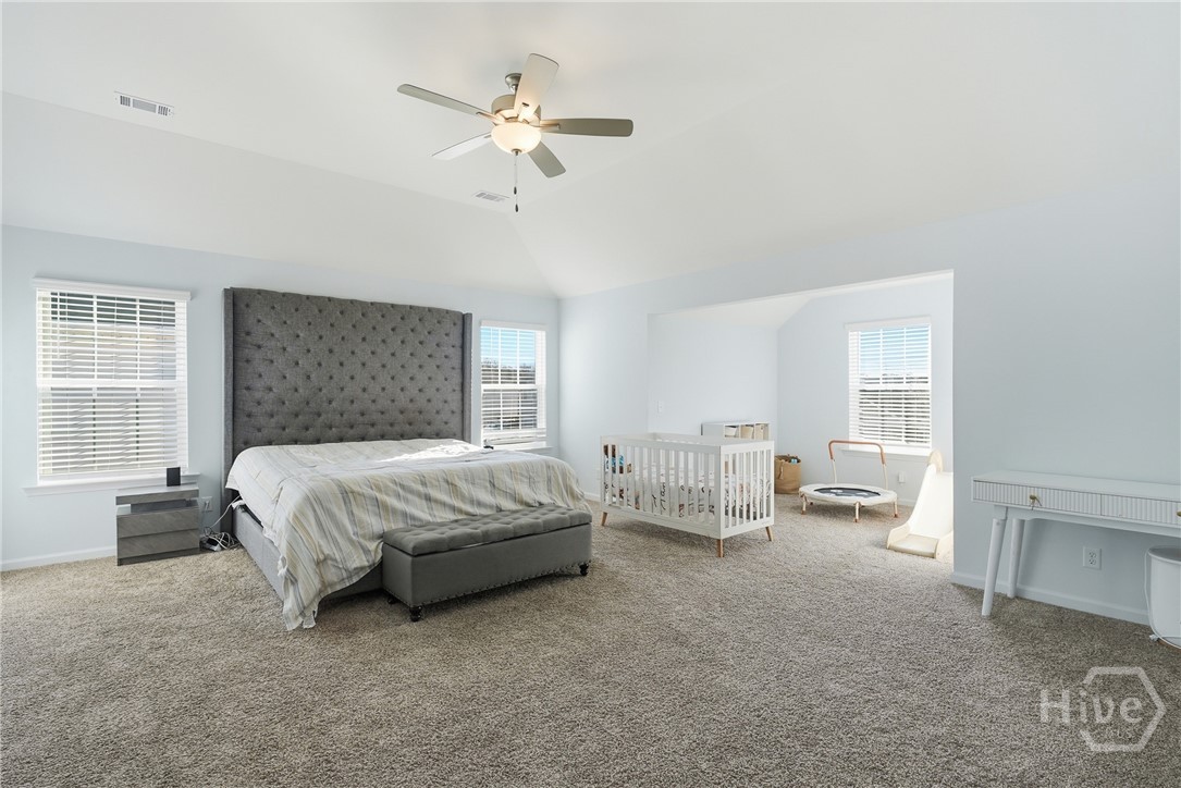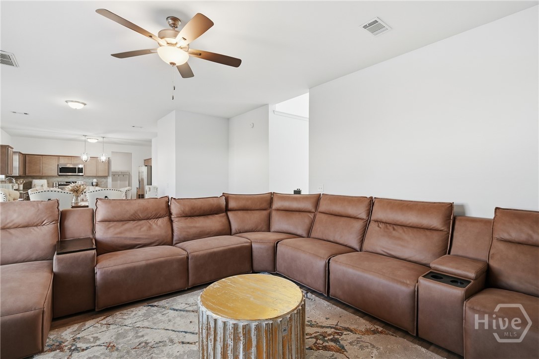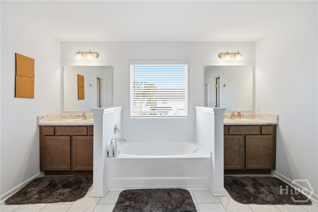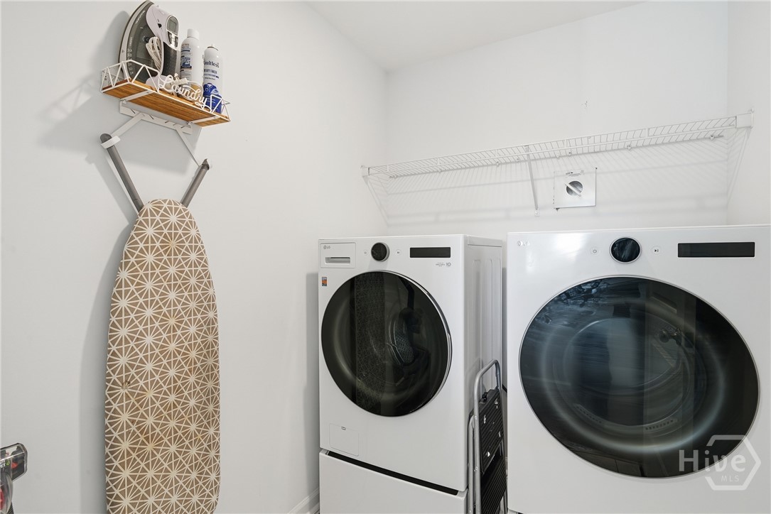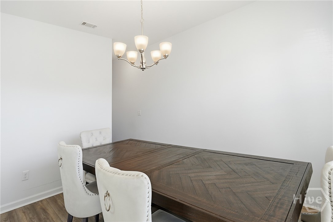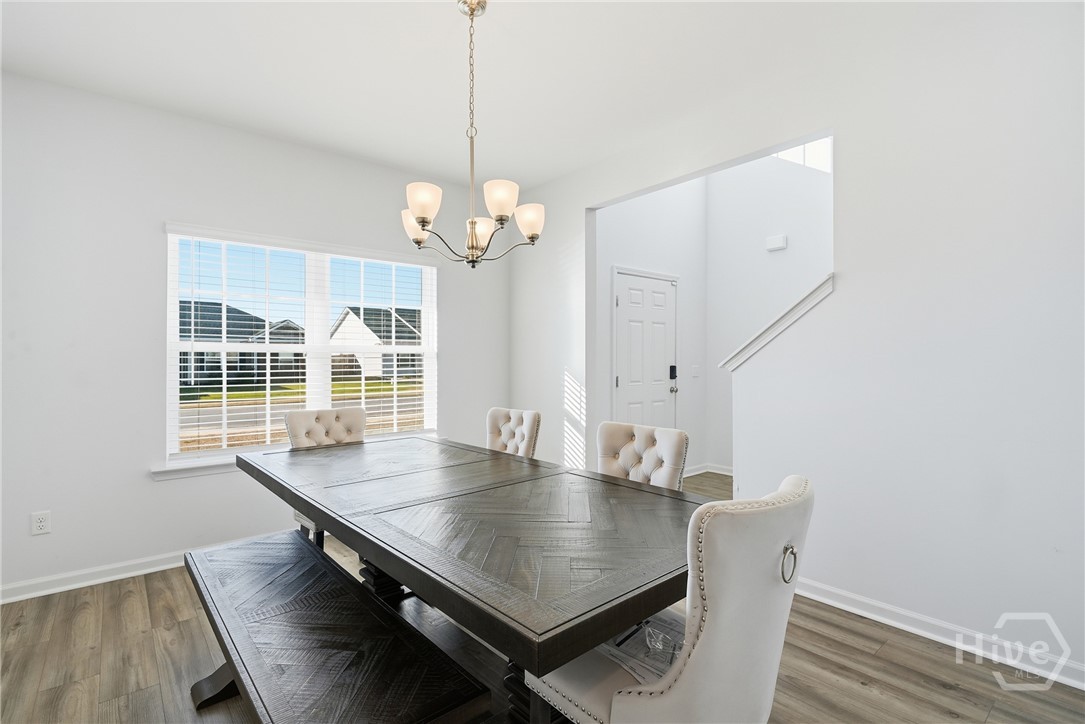 Located in the Tranquil South community, this beautifully designed 4-bedroom, 2.5-bath home features a two-story foyer, 9' ceilings on the main level, and a vaulted primary suite with a sitting area and two custom walk-in closets. Primary bath offers dual vanities, garden tub, and separate shower. The kitchen offers granite countertops, stained cabinetry, tile backsplash, and stainless steel appliances. Resilient vinyl flooring in wet areas including foyer, kitchen, baths, laundry and mudroom, ceiling fans in the family room and primary bedroom, and carpeted living spaces. The family room features a cozy fireplace, and the garage includes durable epoxy flooring. Spacious backyard with a covered patio, perfect for entertaining and relaxing outdoors! Conveniently located just minutes away from I-95, shopping, dining, and Fort Stewart.