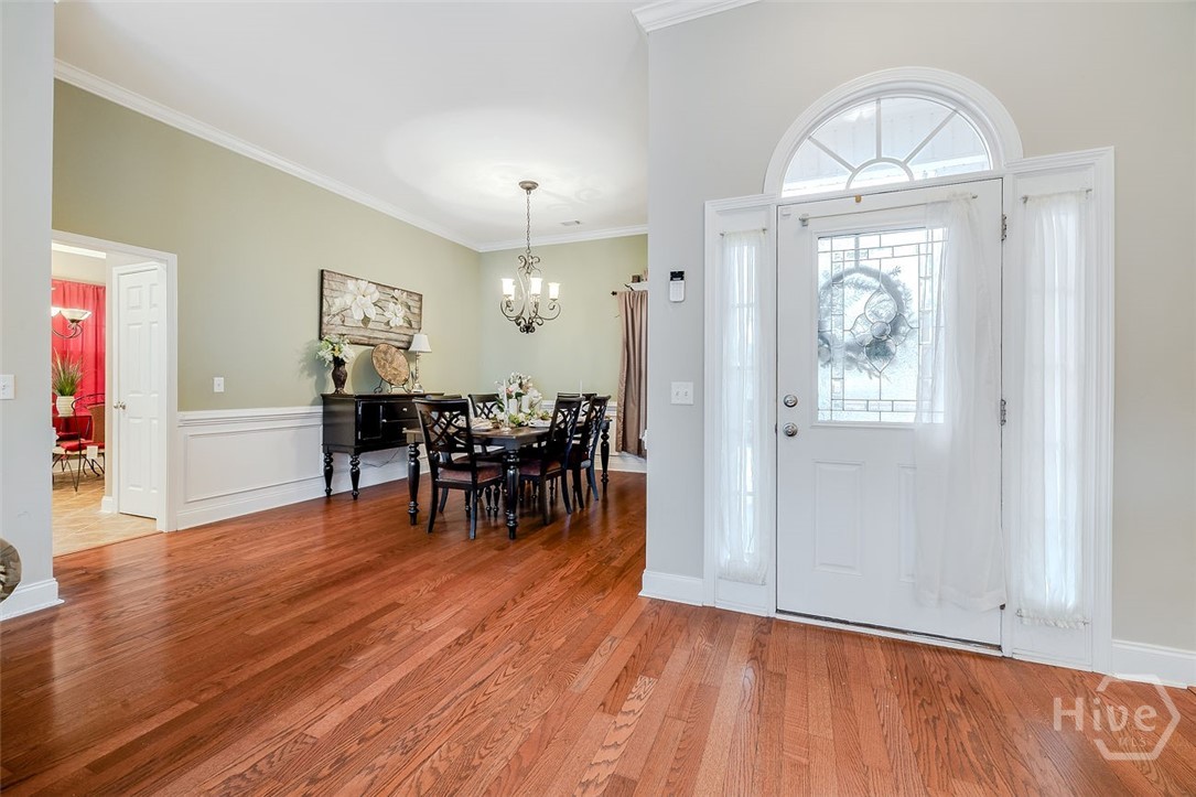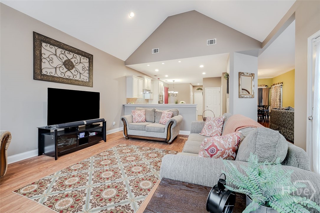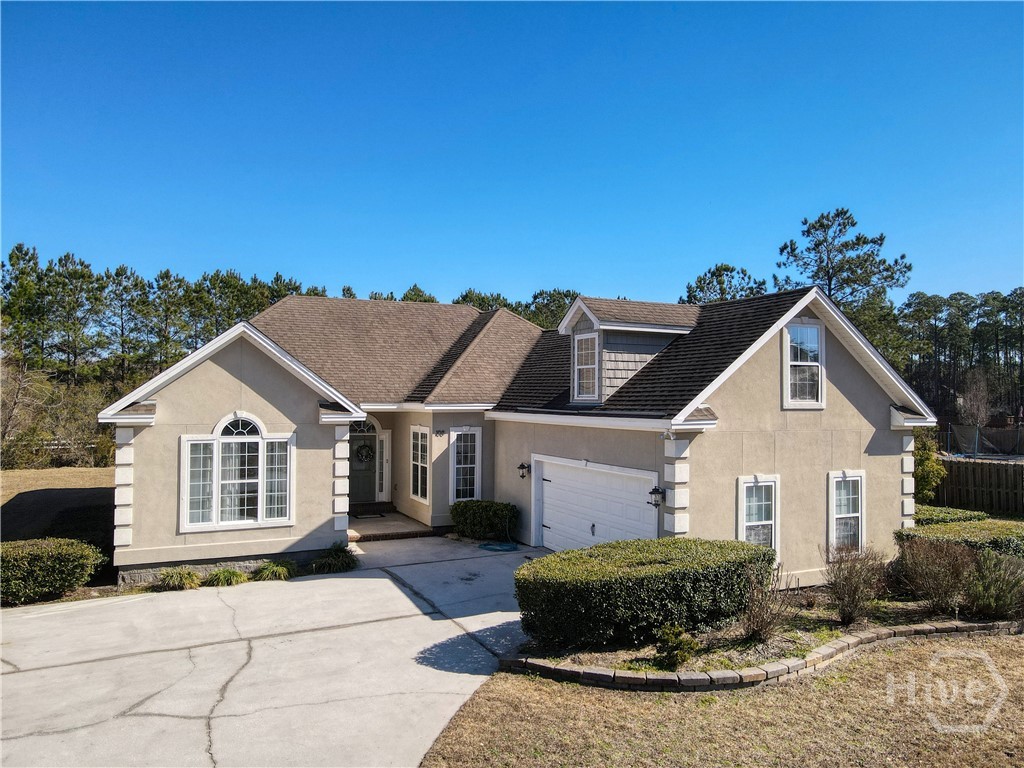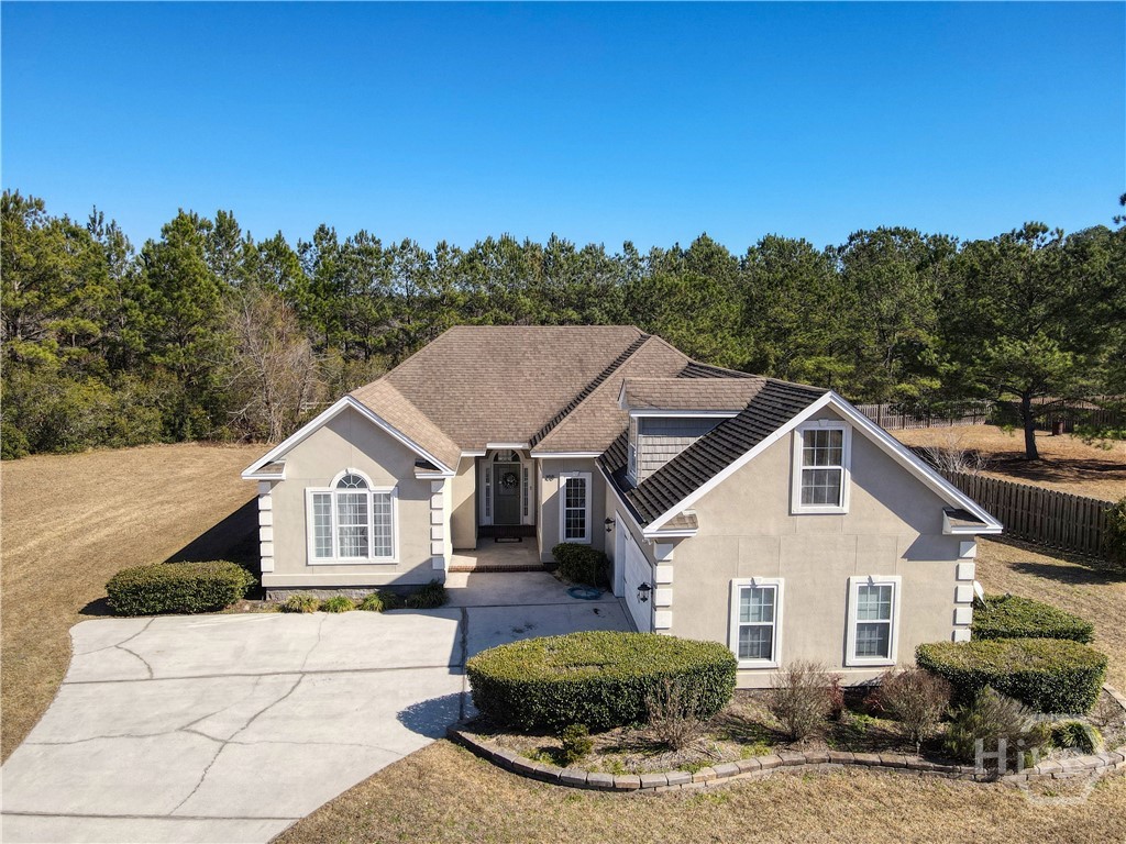 Fish from your own backyard! This thoughtfully designed 3-bedroom, 2-bath home offers over 2,000 sq ft plus a flexible bonus room to fit your needs. Enjoy a formal dining room, comfortable living room, and a cozy den with fireplace. The island kitchen features stainless steel appliances, gas stove, an industrial-size refrigerator and freezer, breakfast nook, breakfast bar, large pantry, and tile flooring. The spacious primary suite includes a garden tub, double vanities, separate shower, and walk-in closet. Situated on a generous lot with pond and wooded views, you’ll love the deck, courtyard-style driveway, and 2-car garage. Convenient to Savannah/Hilton Head Airport, Gulfstream, Tanger Outlets, and Hunter Army Airfield. Contact us to schedule your showing today!