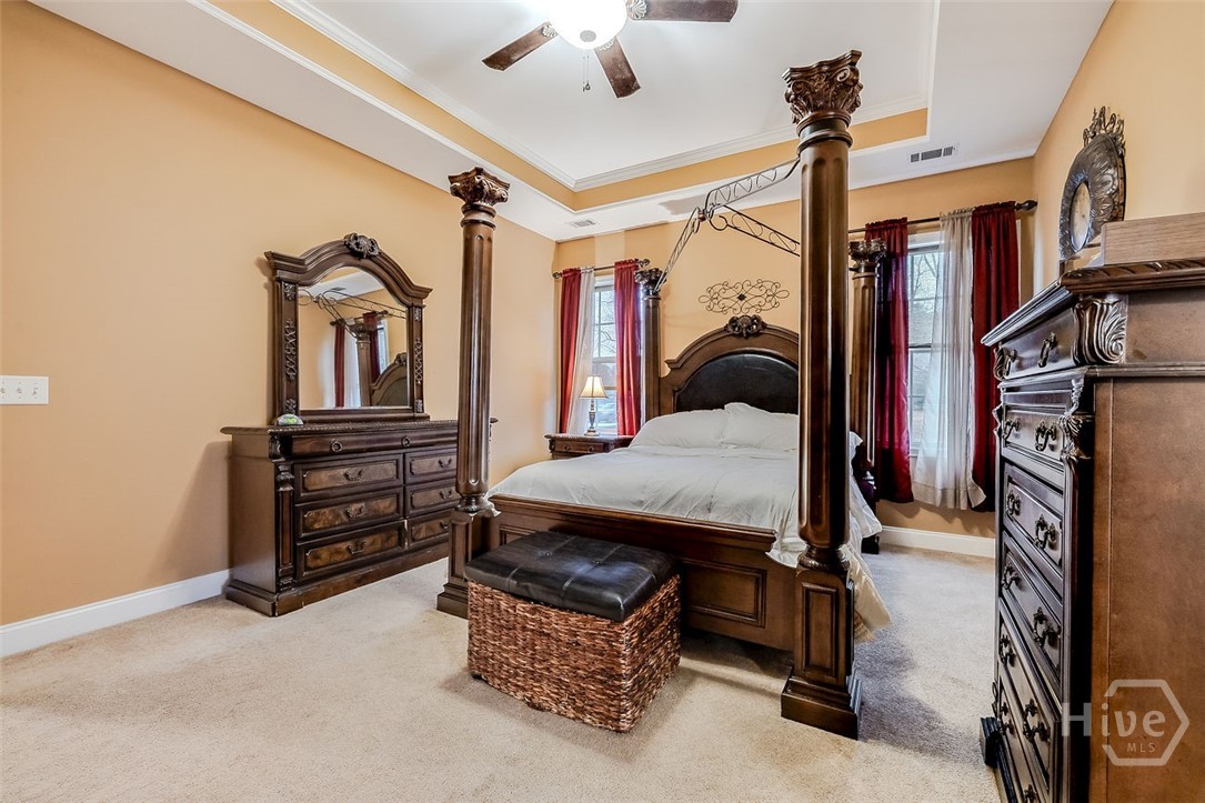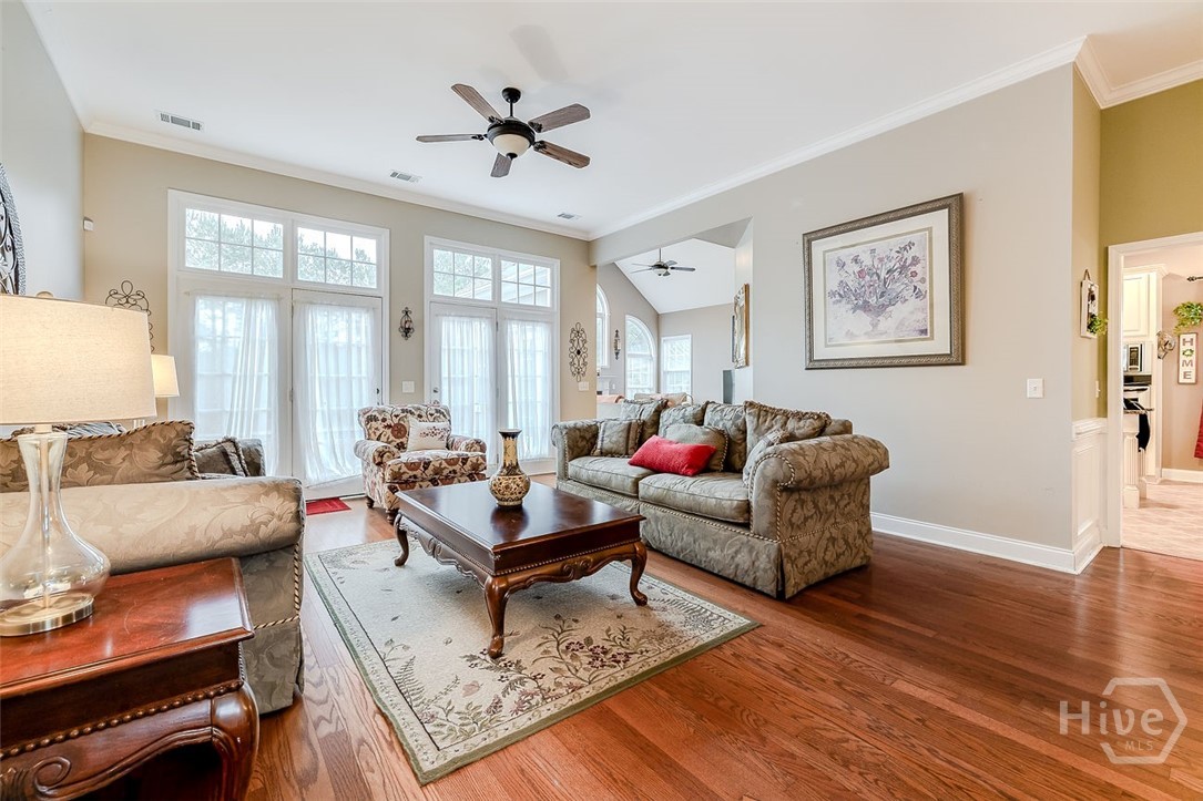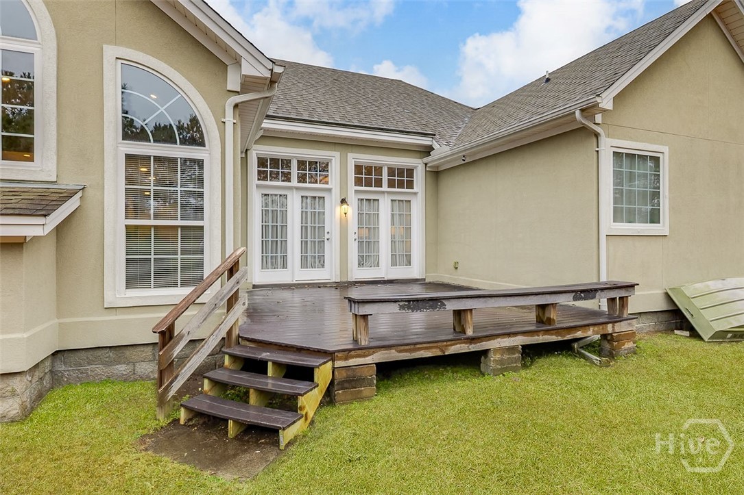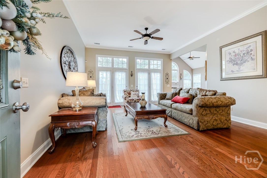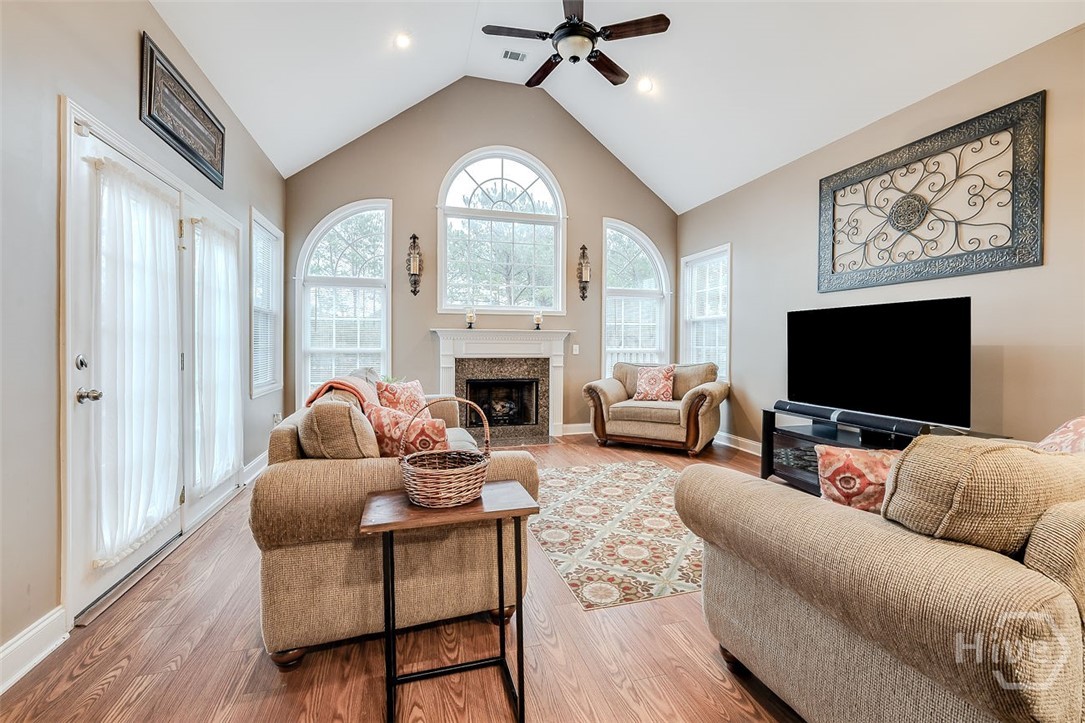 Fish from your own backyard! This thoughtfully designed 3-bedroom, 2-bath home offers over 2,000 sq ft plus a flexible bonus room to fit your needs. Enjoy a formal dining room, comfortable living room, and a cozy den with fireplace. The island kitchen features stainless steel appliances, gas stove, an industrial-size refrigerator and freezer, breakfast nook, breakfast bar, large pantry, and tile flooring. The spacious primary suite includes a garden tub, double vanities, separate shower, and walk-in closet. Situated on a generous lot with pond and wooded views, you’ll love the deck, courtyard-style driveway, and 2-car garage. Convenient to Savannah/Hilton Head Airport, Gulfstream, Tanger Outlets, and Hunter Army Airfield. Contact us to schedule your showing today!