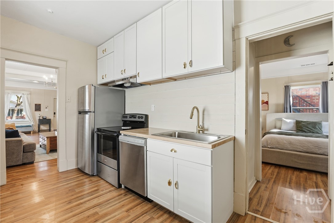 Perfectly positioned just minutes from the heart of downtown Savannah, this thoughtfully renovated 3 bed, 2bath home delivers effortless city living with timeless appeal. Inside, classic character meets contemporary style, with a welcoming living space that flows seamlessly into a generous formal dining room, ideal for both everyday living and entertaining. The kitchen has been stylishly updated with stainless steel appliances and warm butcher block countertops, creating a space that’s as functional as it is inviting. The primary suite serves as a private haven, complete with its own en-suite bath and a tranquil atmosphere to unwind at the end of the day. Recent improvements include the addition of off-street parking and a fully fenced backyard, offering both convenience and privacy. Step outside to enjoy a fully fenced backyard featuring a deck perfect for morning coffee, weekend gatherings, or quiet Savannah evenings. With its blend of charm, modern comfort, and unbeatable proximity to downtown, this home offers a lifestyle that is unmatched!