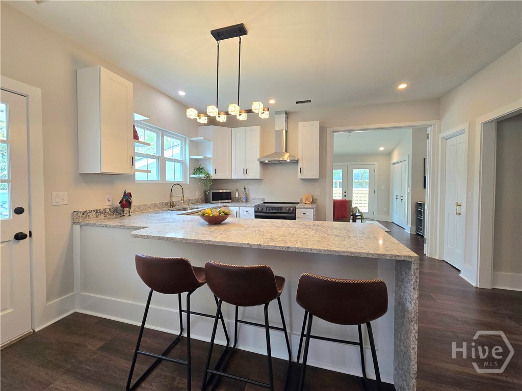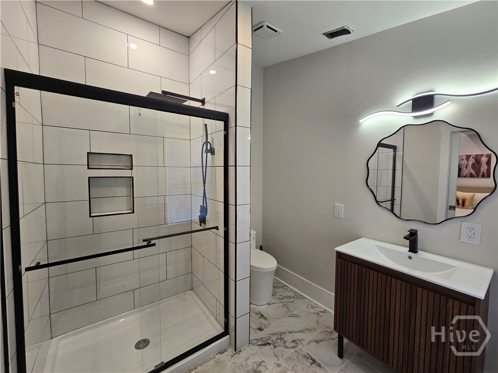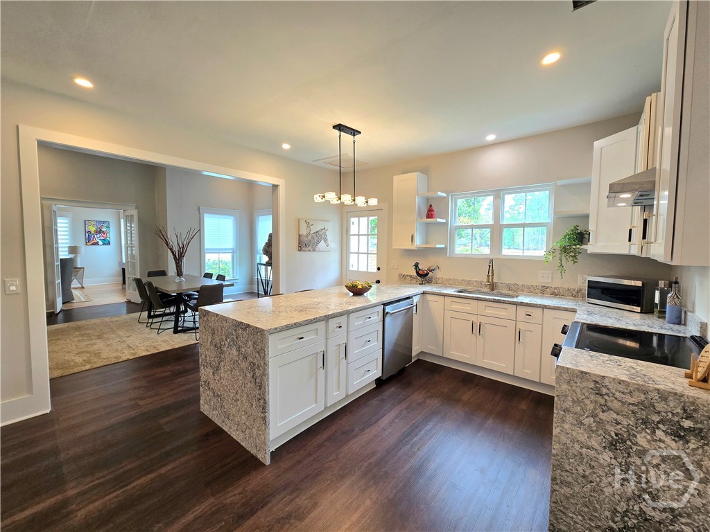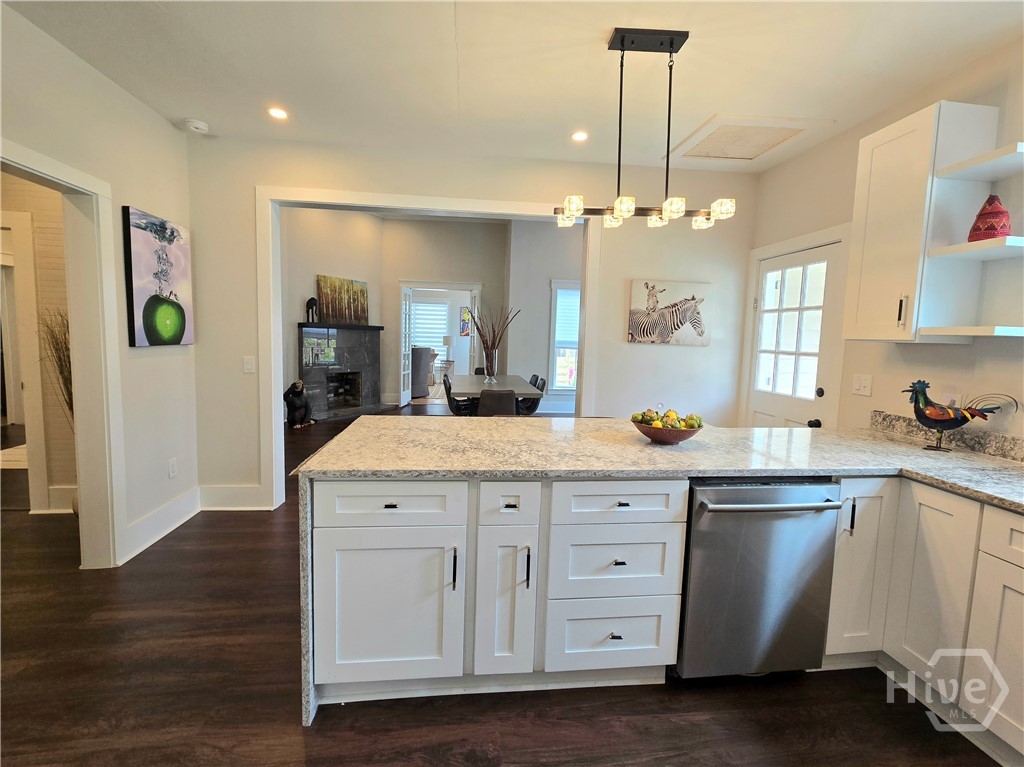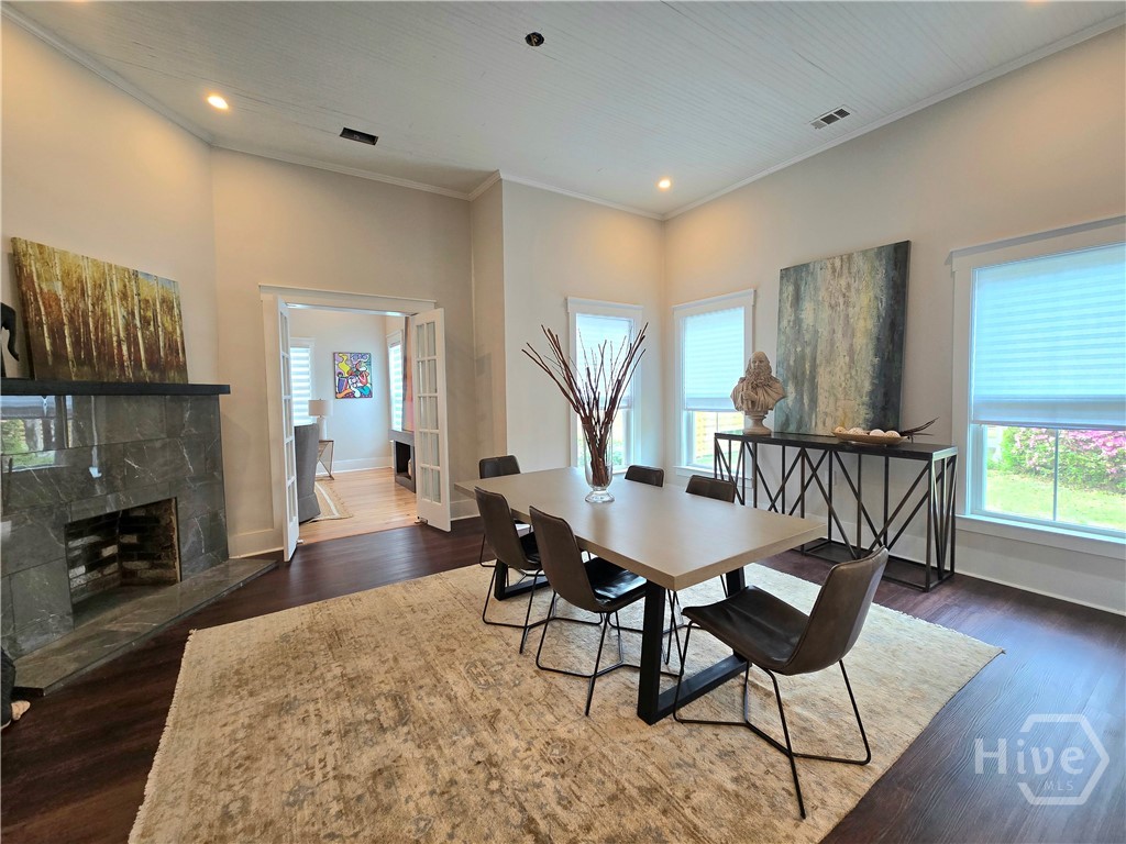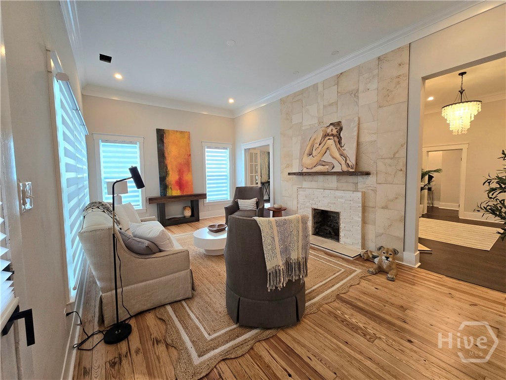 FROM RAGS TO RICHES! Radical transformation of this historical home originally built in 1930! The renovation is top notch! Kitchen upgrades include stunning lighting, a granite waterfall countertop, beautiful & functional cabinetry, and high end appliances. Everything in this 4 bedroom, 3 bath home has been updated including electrical and Hvac. 12 foot soaring ceilings and HUGE bedrooms are super hard to find. One of the coolest features in the home is the 3 sided fireplace. The peninsula fireplace is found in three separate rooms and all of them have different, stylish surrounds and mantles. Gorgeous hardwood flooring and tile elevate the freshly painted rooms. There are 2 master suites with modern bathrooms and storage. The fenced yard gives you privacy to relax on the back deck and space for a garden, right in the heart of town. Parking is not a problem either with a detached 2 car garage and large driveway. Walk to the restaurants, library, schools, the pharmacy, shopping or to the gym. Great central location, close to Ft. Stewart, Statesboro, Pooler & Savannah!