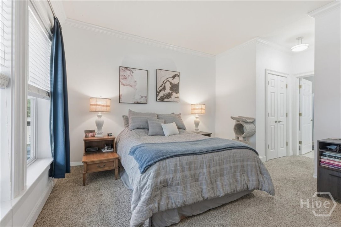 Priced to Sell!!! Buy with Confidence!! One-year Home Warranty included. Nestled Between Savannah’s coveted Downtown Historic District and Starland Yard, this beautiful Southern Victorian townhome blends classic architecture with modern livability. A striking Colonial red standing-seam metal roof creates a memorable first impression, while high ceilings and abundant windows fill the home with natural light. The semi-open main level features hardwood floors, a dedicated dining area, spacious kitchen with center island, flexible office or bonus room, and a separate laundry room—ideal for everyday living and entertaining. Storage is exceptional, with generous closet spaces throughout and a large attic providing substantial additional storage. Upstairs offers three bedrooms, including a spacious primary suite with private balcony access, ample closet space, and an en-suite bath with tiled shower, soaking garden tub, and dual vanities. Enjoy outdoor living in the private paver courtyard, plus the rare downtown luxury of a detached TWO-CAR GARAGE!! With approximately 2,400 sqft this home offers outstanding space and INCREDIBLE value in the Historic District, just minutes from SCAD with quick access to I-16 and strong appeal for both homeowners and investors.