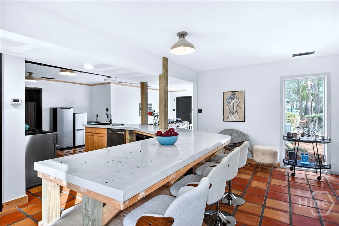 One-Owner, Custom Built, Miami Vice-style Home in Habersham Woods, Mid-Town Savannah. Inspired by South Beach's Art Deco Architecture, this Home encourages an open, airy lifestyle, and is reflected in the way the Home is designed to blur the line between indoor and outdoor spaces. Key features include the Spiral Staircase, Glass Blocks, Rounded Walls and Hallway, large Sliding Glass Doors, Floor-to-Ceiling Windows, and an Open-Plan Layout create the seamless transition between the Home’s interior and exterior. The iconic Miami style of the '80s has evolved into a timeless aesthetic that blends boldness, luxury, and tropical elegance. Whether you’re looking to create a Chic Coastal Retreat or simply bring a bit of Miami’s flair into your Life, this Home is for you. Three spacious and airy Bedrooms in the Main House with Walk-In Closets and their own En-Suite Baths and access to the Pool Area offering a serene place for both sleep and relaxation. This Home also features a great Loft/Flex Space and an amazing and stylish 1 Bedroom/1 Bath Mother-in-Law Suite with it's own Entry and Pool access, also great for that Airbnb or Rental.