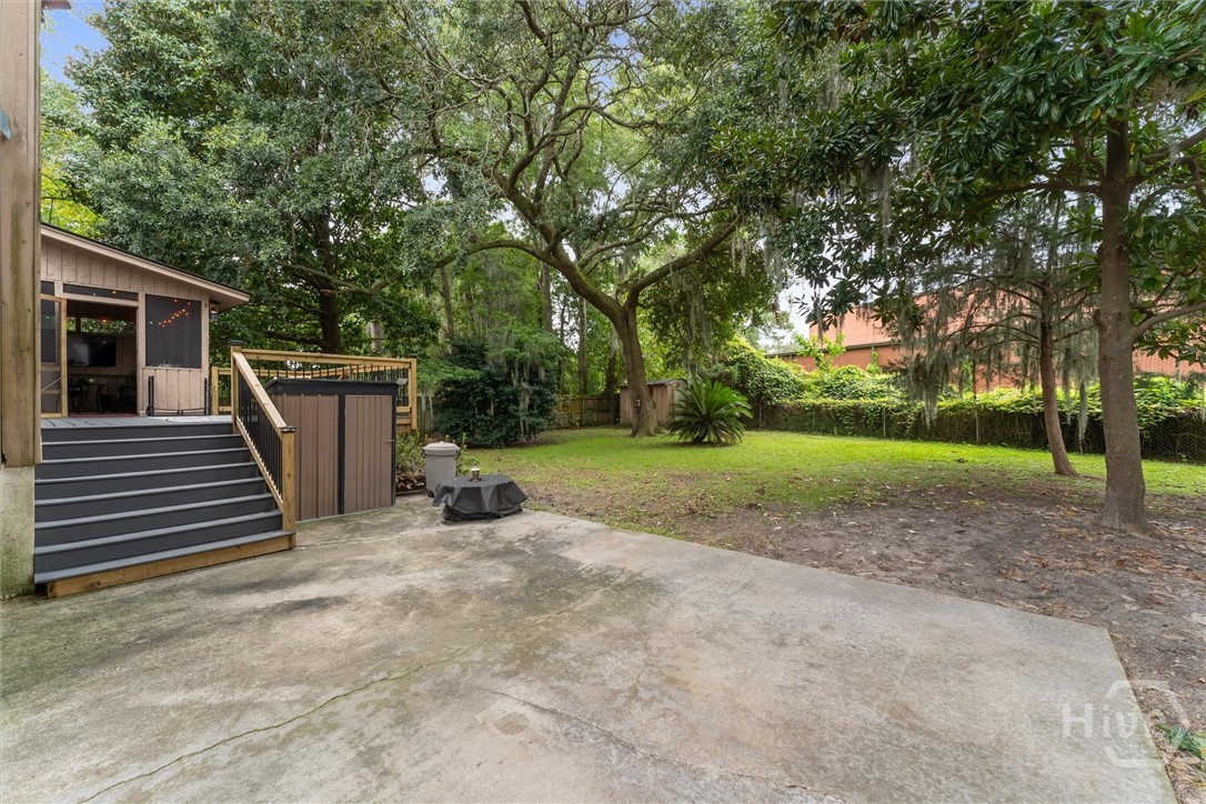 Welcome to this Wilmington Island beauty tucked among the trees and full of natural light. From the long front breezeway entry to the open spaces inside, this home has personality in all the right places. The great room is spacious and inviting, featuring soaring ceilings, a fireplace, and custom built-ins — all flowing easily into the kitchen so entertaining feels effortless. The kitchen offers stainless steel appliances, granite countertops, a bar for gathering, and a walk-in pantry that keeps everything tucked away and organized. There’s also a private fourth bedroom and half bath located off the kitchen and garage entrance upstairs making it ideal for guests, a home office, bonus space, or multigenerational living. The outdoor set up truly steals the show. Lounge on the screened porch with private access from the primary suite or from the Trex deck off the great room. The deck dramatically draped with oaks, leads to an oversized concrete pad. You can be the envy of the neighborhood, with either the best backyard BBQ parties or the one who owns the coolest recreational vehicles. This backyard offers plenty of room for boats, an RV, side-by-sides, a zip line, or whatever comes with island life. With county-only taxes and no HOA- this home offers flexibility, space, and that laid-back coastal lifestyle people are searching for! You can be in dowtown Savannah OR Tybee Island beachfront within 10-15 minutes