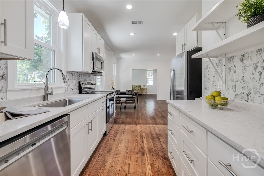 Experience classic Savannah charm with this beautifully renovated 3 Bed, 2 Bath home with modern updates featuring both refinished original and new hardwood floors, an open-concept layout, and brand-new windows that brings in plenty of natural light. The bright living and dining areas flow seamlessly into a stylish kitchen. Outside, enjoy a fully fenced backyard and spacious shed, ample parking, and timeless curb appeal that captures the charm of a classic Savannah home. Located close to shopping, dining, and downtown Savannah, this move-in-ready property combines historic character with modern convenience—the best of both worlds! Schedule a private showing today on this turn-key home!