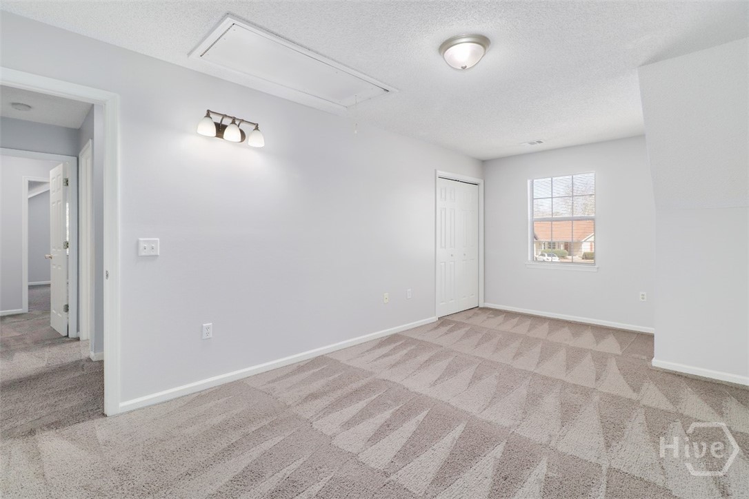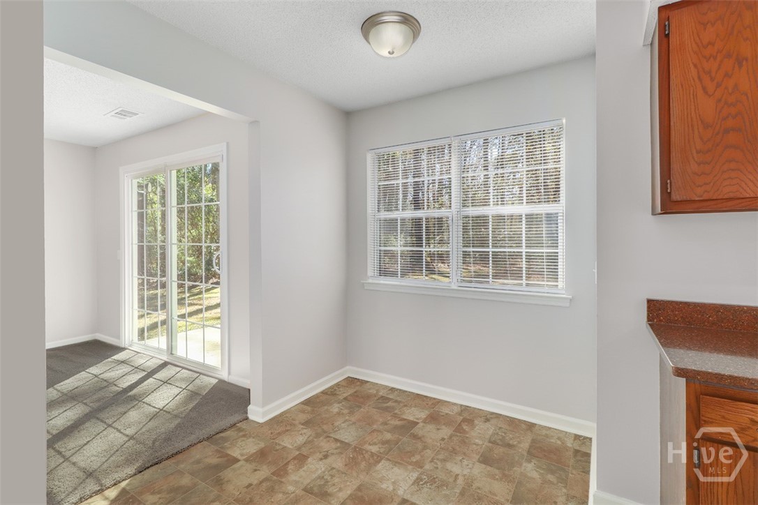 Charming two story home situated on a quiet cul-de-sac with a spacious covered front porch perfect for relaxing. Inside, you’ll find a cozy living room featuring a wood-burning fireplace that opens seamlessly to the kitchen and breakfast nook. The galley-style kitchen includes a pantry and overlooks the private, wooded backyard, offering peaceful views while you cook or entertain. Step outside to enjoy the backyard patio, ideal for grilling or outdoor gatherings. The main level also includes a full bedroom and full bathroom, perfect for guests or a home office. Upstairs, you’ll find three additional bedrooms and a full bathroom. The largest bedroom features a generous walk-in closet.