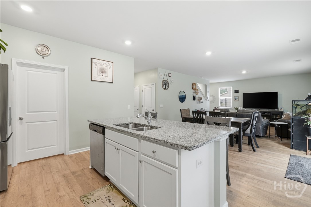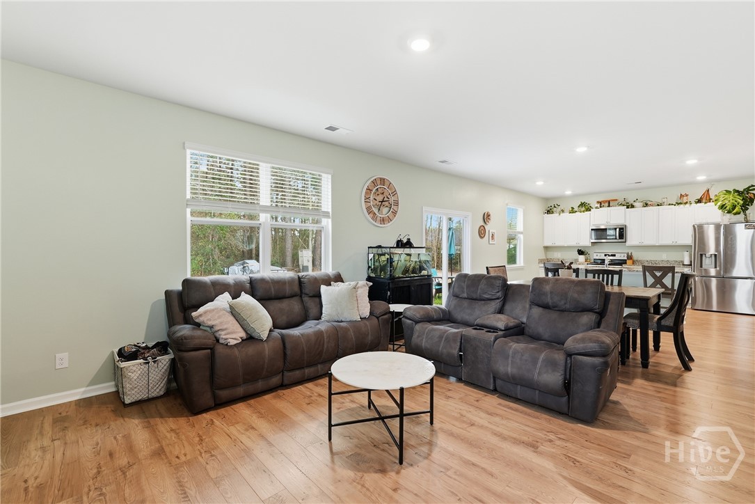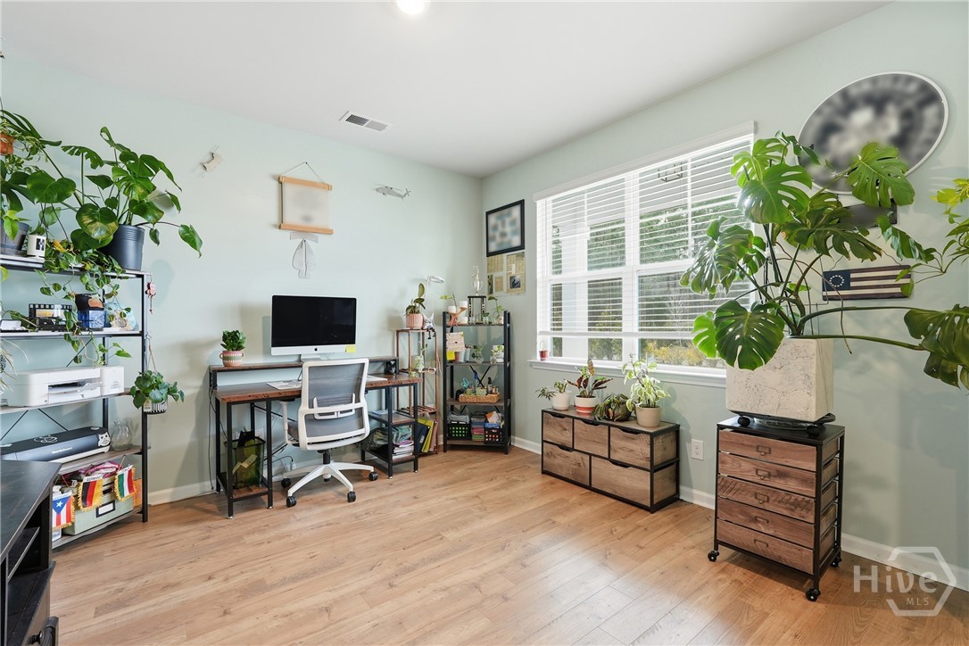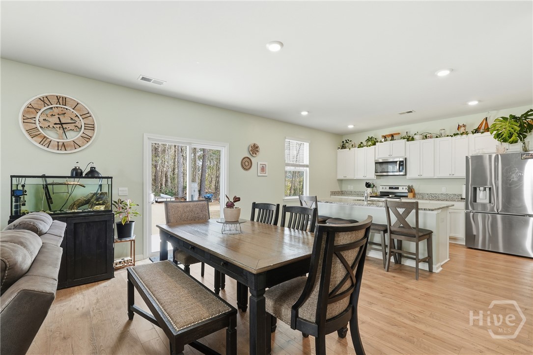 Welcome to 210 Grist Mill Drive! This beautiful 4-bedroom, 2.5-bath home sits on a private-feeling lot with no backyard neighbors and a spacious yard perfect for relaxing or entertaining. Inside, a large flex room at the front of the home offers endless possibilities, ideal for a home office, playroom, second living area, or formal dining room. The main living areas feature durable LVP flooring, while the kitchen is equipped with granite countertops and stainless steel appliances. The primary suite includes dual vanities and generous closet space, and the second full bathroom also offers dual vanities for added convenience. Three additional bedrooms provide plenty of room for family or guests. Conveniently located just 30 minutes from Hunter Army Airfield and only minutes from shopping, dining, and everything Rincon has to offer.