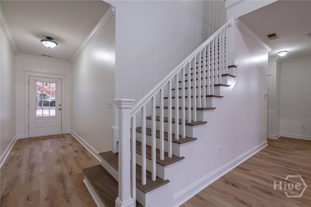 You will love this COMPLETELY RENOVATED townhome in Franklin Grove, a highly sought-after SWIM/TENNIS gated community in OCONEE County. It also features a beautiful clubhouse with a fully equipped fitness room. From office space and local restaurants to top-tier amenities, everything you need is just steps from your front door. Perfectly positioned in the coveted NORTH OCONEE School District with direct access to Highways 78 and 316/EPPS BRIDGE shopping and dining, this END UNIT is waiting to be called home! Step inside to discover a light-filled, OPEN-CONCEPT design with soaring ceilings that seamlessly connects the family room, dining area, and kitchen—an entertainer’s dream. The slate fireplace on a cold evening is the perfect backdrop for relaxation or conversation. The kitchen features stainless appliances, granite countertops, custom cabinetry, walk-in pantry and breakfast bar. Also included on the main level is a large dining area and a half bath for guests. On the second level of the home is a spacious owner’s suite, large enough for a sitting area, an expansive walk-in closet and large windows bringing in so much natural light! The luxurious ensuite bath offers a granite dual vanity, separate shower, whirlpool tub and water closet. Two additional bedrooms, a full bath and a conveniently located laundry closet complete the upper level. Step outside to your private patio, where you can enjoy views of a lush green space—perfect for morning coffee or an evening unwind. Come experience a lifestyle of community in Franklin Grove! (Some images have been virtually staged.)