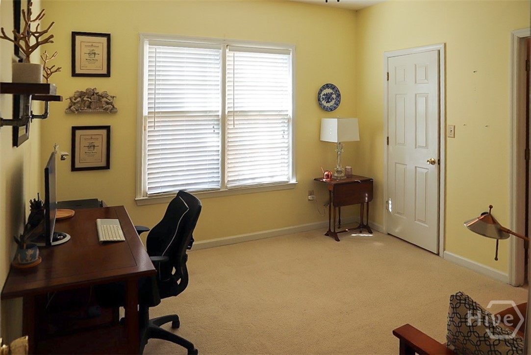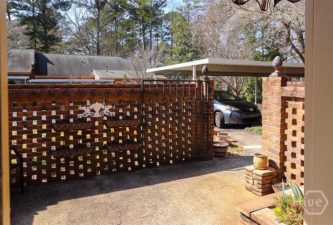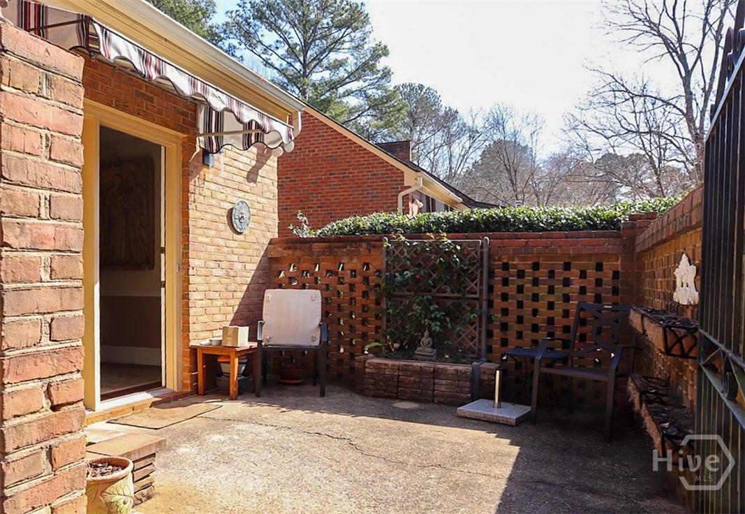 Welcome to effortless living in the heart of East Athens’ sought-after Drayton Square—where picturesque, tree-lined streets and an outstanding amenities package create the perfect backdrop for low-maintenance comfort. Residents enjoy a sparkling community pool, tennis/pickleball courts, onsite trash service, and a friendly neighborhood atmosphere just minutes from everything. This thoughtfully designed, single-level patio home offers a refined yet inviting floor plan with beautifully proportioned rooms that transition seamlessly from one space to the next. “Step-free” entry welcomes you inside, where warm hardwood floors and plush carpet flow through the foyer, formal living and dining rooms. The living room is anchored by custom built-ins and a cozy gas-log fireplace flanked by accent lighting—ideal for showcasing treasured artwork. The formal dining room easily accommodates gatherings of six or more and offers exceptional versatility—perfect as a secondary living space or home office. Double French doors extend the living area outdoors, creating a natural connection to the private courtyard. The bright eat-in kitchen is positioned for easy access to the dining room, allowing the home chef to serve with ease. Crisp white custom cabinets pair beautifully with an upgraded appliance package featuring a like-new stove/oven, newer Samsung dishwasher, vent-hood microwave and refrigerator. The bedroom wing is privately tucked along the left hallway and features a generously sized primary suite with room for oversized furnishings. Multiple closets provide ample storage, and the well-appointed updated bath connects through a dual-entry layout. Both bedrooms enjoy private ensuite vanity areas, while a shared updated tile shower is conveniently accessible from either side. Outdoor living is equally impressive with the brick-enclosed courtyard offering true privacy, additional storage room, and wrought iron gate leading to the two-car carport. Whether hosting friends or savoring a quiet morning coffee, this serene patio space was designed to be enjoyed. Recent improvements enhance both comfort and efficiency, including relocating the heating unit to the attic for improved airflow, a new large-capacity water heater, and multiple appliance upgrades. Centrally located, this convenient East Athens locale is within a mile to the UGA Veterinary Teaching Hospital and less than six minutes to Downtown Athens/UGA. This coveted end-unit home combines convenience, charm, and easy living in one exceptional package.