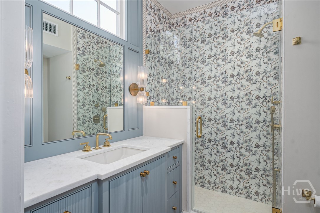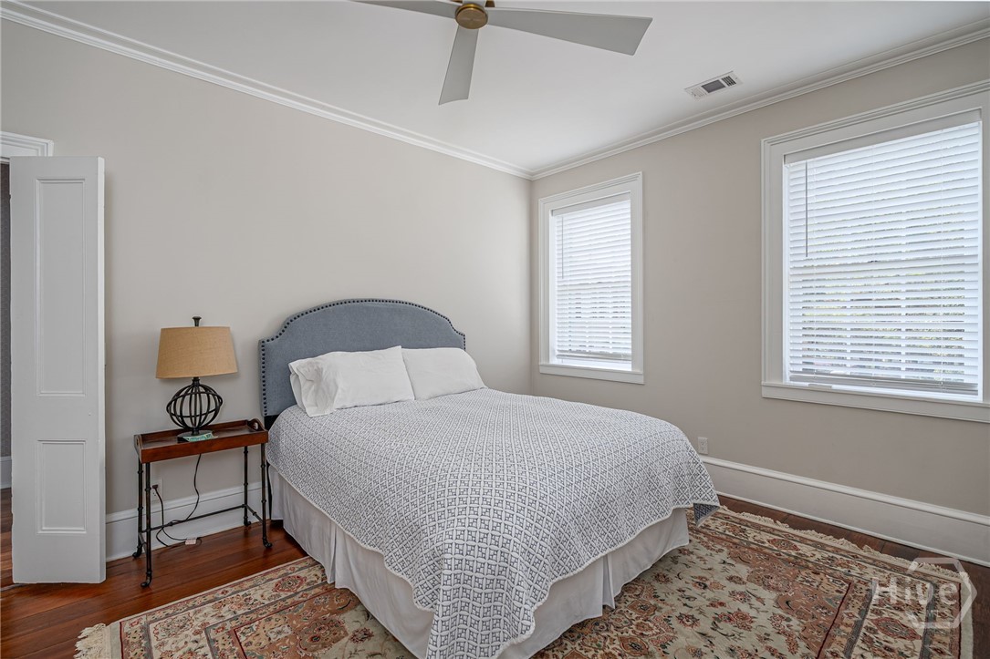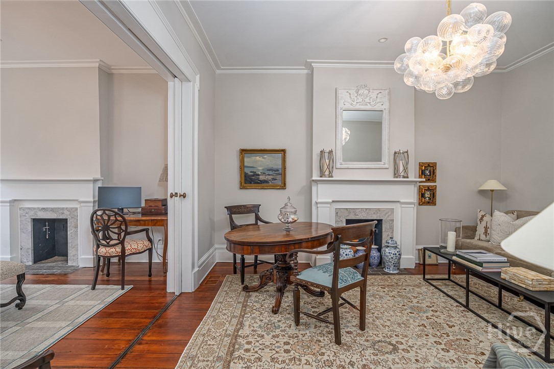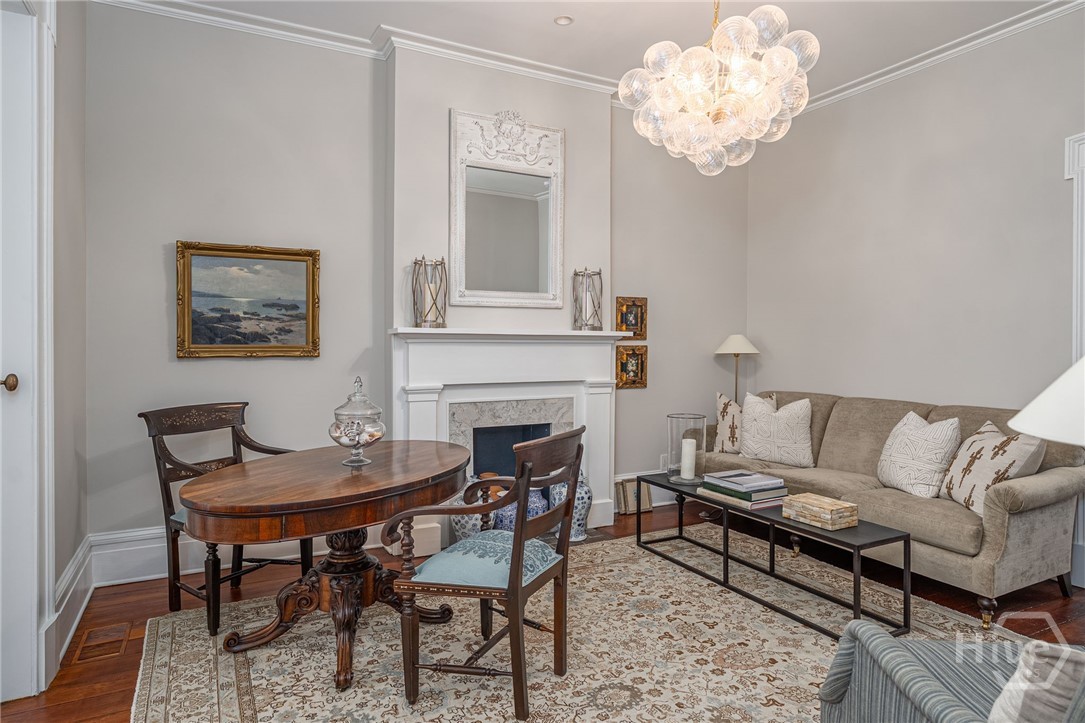 This beautifully renovated c.1852 brick townhome overlooking Chatham Square in Savannah’s Landmark District includes an exquisite 2 BR/2.5 BA main house & separate 1 BR/1 BA garden-level apartment with high-income potential. Enjoy classic Savannah interiors w/ tasteful updates, including a renovated chef’s kitchen with Lacanche double oven & 5-burner gas stovetop, stainless appliances & metal LaBastille countertops. The William Quantock House offers elegant period details & a private Savannah Gray Brick walled courtyard. With a southern exposure & floor-to-ceiling windows, this home offers amazing natural light, exposed brick, original fireplaces, pocket doors, high ceilings & heart pine floors. The second floor includes a spacious primary ensuite bedroom with walk-in closet plus a 2nd bedroom and hall bath. Off-street parking, new roof, new HVAC & room to build a carriage house, if desired. Walk to Forsyth Park, Bull Street, shops, restaurants & the best of downtown Savannah!