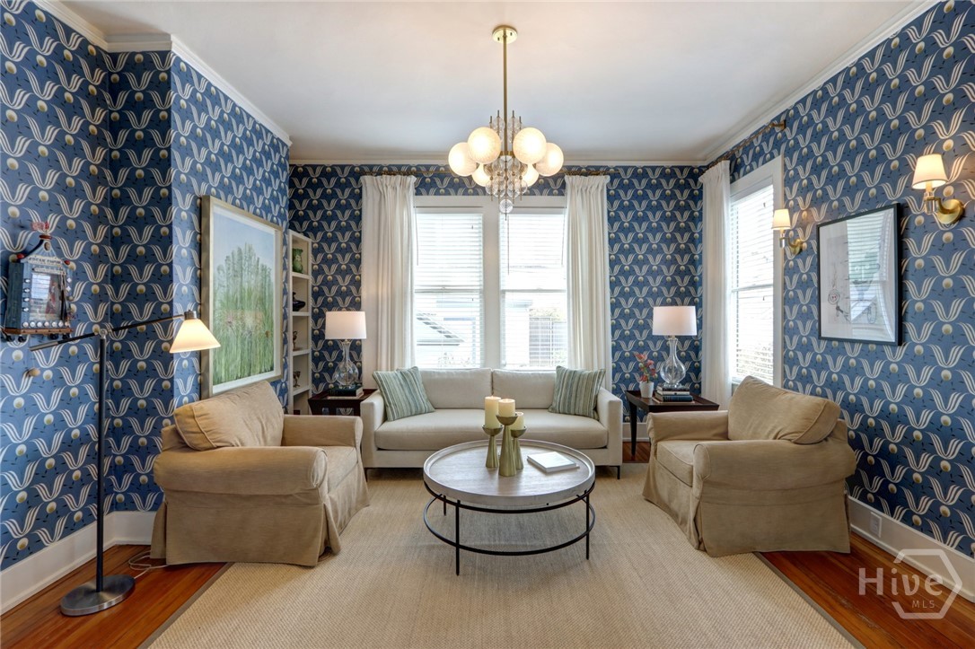 Elegantly updated & meticulously maintained home in the heart of Ardsley Park / Chatham Crescent Historic District. This thoughtfully restored (circa 1918) property is flooded with light and has excellent flow throughout the main floor and grounds. The Main House has +/- 2760 sq.ft. (3 bed/2.5 bath) with an additional Carriage House of +/-576 sq.ft. (1 bed/ 1 bath). The formal Living, Dining & Family Rooms are perfectly proportioned and flow effortlessly into a superbly designed new Kitchen w/ charming Banquette Area. Updated lighting, fixtures, wallpaper offset myriad original details throughout w/ upgrades too numerous to mention… Upstairs features 3 nicely sized bedrooms as well as 2 separate full baths (allowing ultimate flexibility of use). Please Note: stunning Primary bedroom closet & oversized Laundry! Carriage House has been finished within the last 6 months, 2 Car Off Street Parking pad, grounds fully fenced & landscaped. Come to preview this classic Ardsley Park home - Stay to Live the Good Life!