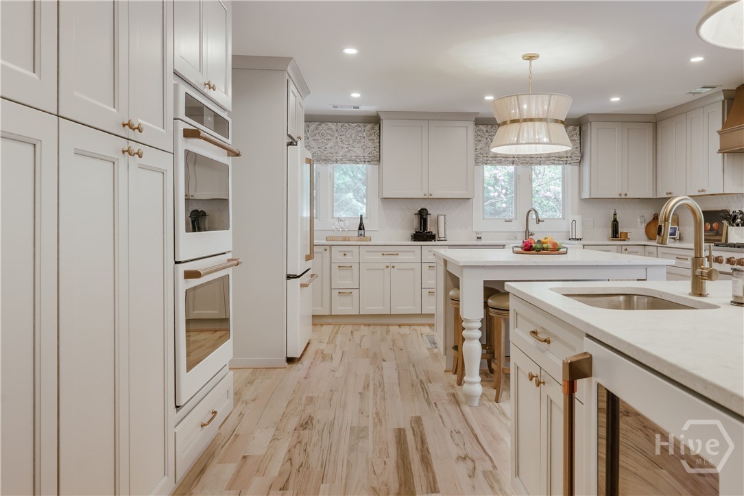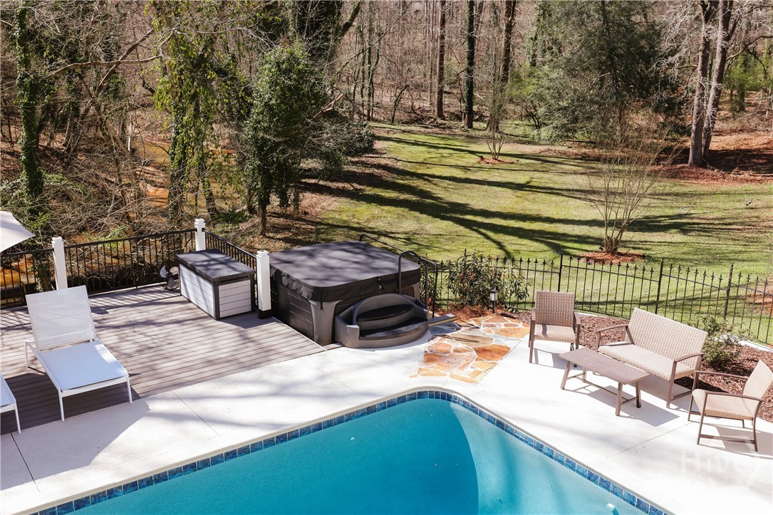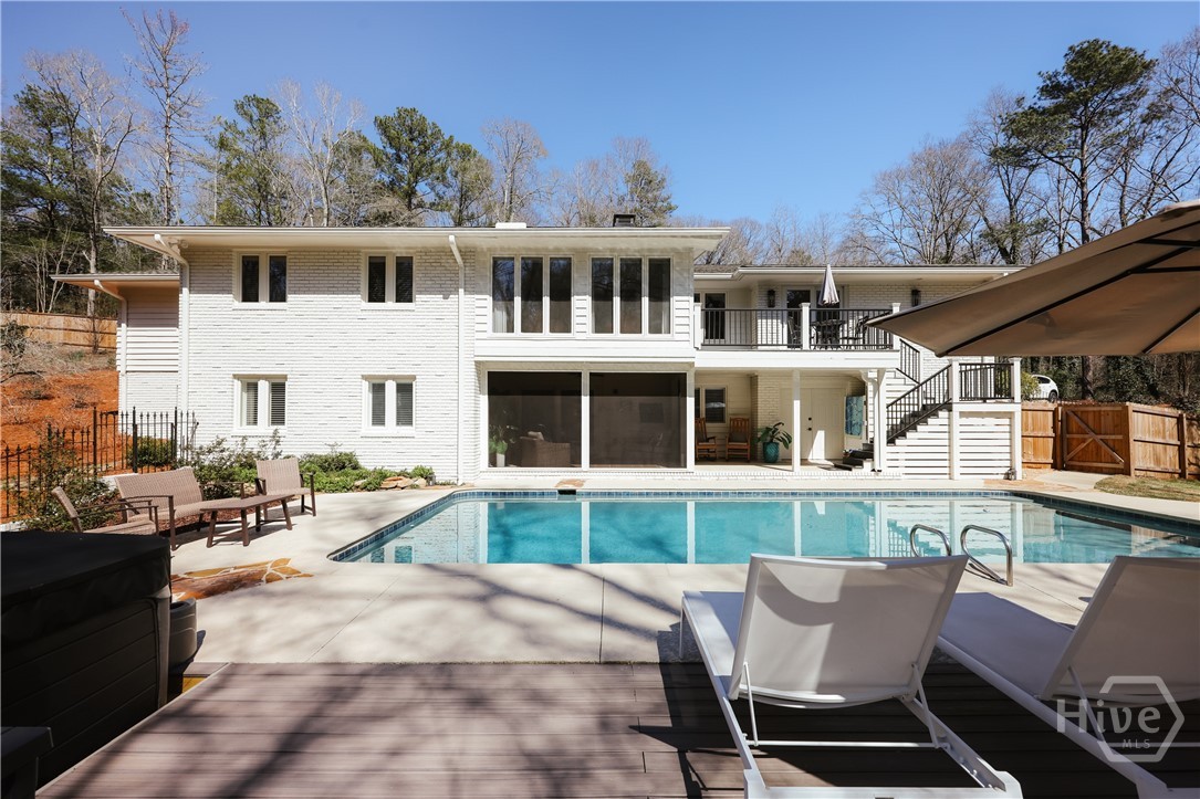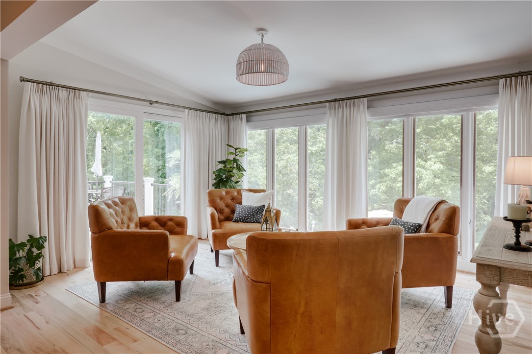 Completely remodeled throughout, this stunning 5 bedroom, 4.5 bath home with Guest Cottage & serene salt water pool on nearly 3 acres is full of one custom feature after another. Nestled perfectly in the back of Tanglewood & surrounded by other custom homes on large lots, this estate boasts lush landscaping and private vistas with McNutt Creek rambling behind. Every inch of this home was thoughtfully redesigned with both function and serenity equally considered. Walk through the custom iron & glass entry to a sunken Dining Room with original parquet floor. Flow through the Breakfast Room into the custom Cook’s Kitchen with dual islands, honed quartz counters, all Café appliances. Move into the roomy Living Room with gas fireplace & airy Sunroom. A private luxurious Primary Suite sits nestled on the rear corner & features a spa-like bath suite with custom features. The main floor is completed by a private guest suite, laundry room & powder room. A full Walkout Terrace Level provides a flexible den with gas fireplace, a screened porch, 3 full bedrooms and 2 baths, & is stubbed for a bar. The inviting salt water pool & pool deck contribute to the sleek aesthetic of this property. A new Trex deck across the back o?ers additional recliner & hot tub space. Plus, the new privacy fence provides some yard space inside the pool deck. Rinse o? in the outdoor shower before heading straight into the convenient full bath just o? of the patio or up to the deck overlooking the property’s foliage & surrounding nature. A full guest cottage completes the property. Flow through the zero entry foyer into a flexible Great Room. Complete with custom Murphy Bed for extra sleeping, the large space provides multiple optimal flexibility. An ample sized bedroom with custom closet & full bath round out the main floor. Below is an oversized rear entry garage. Bring your additional cars, set up your full workshop, or fine tune your swing by adding a golf simulator. The possibilities are endless!