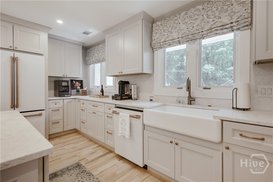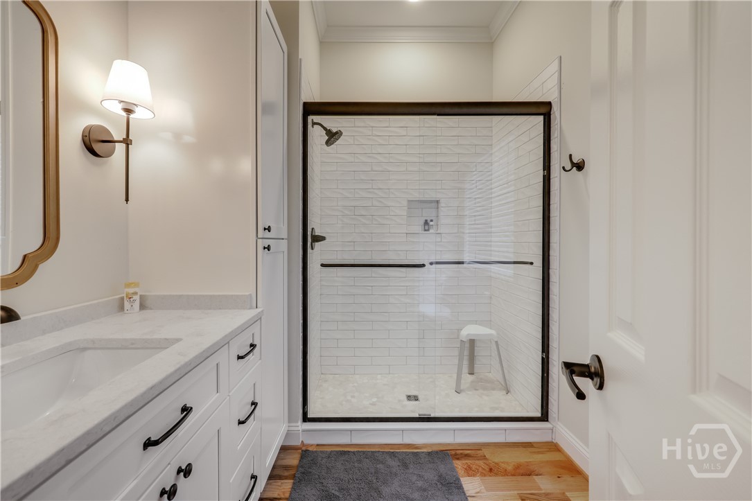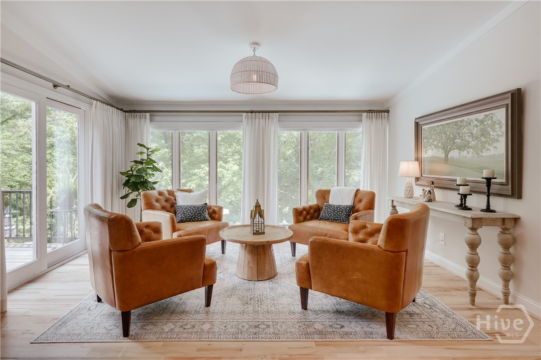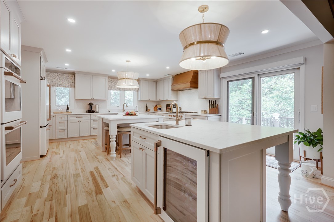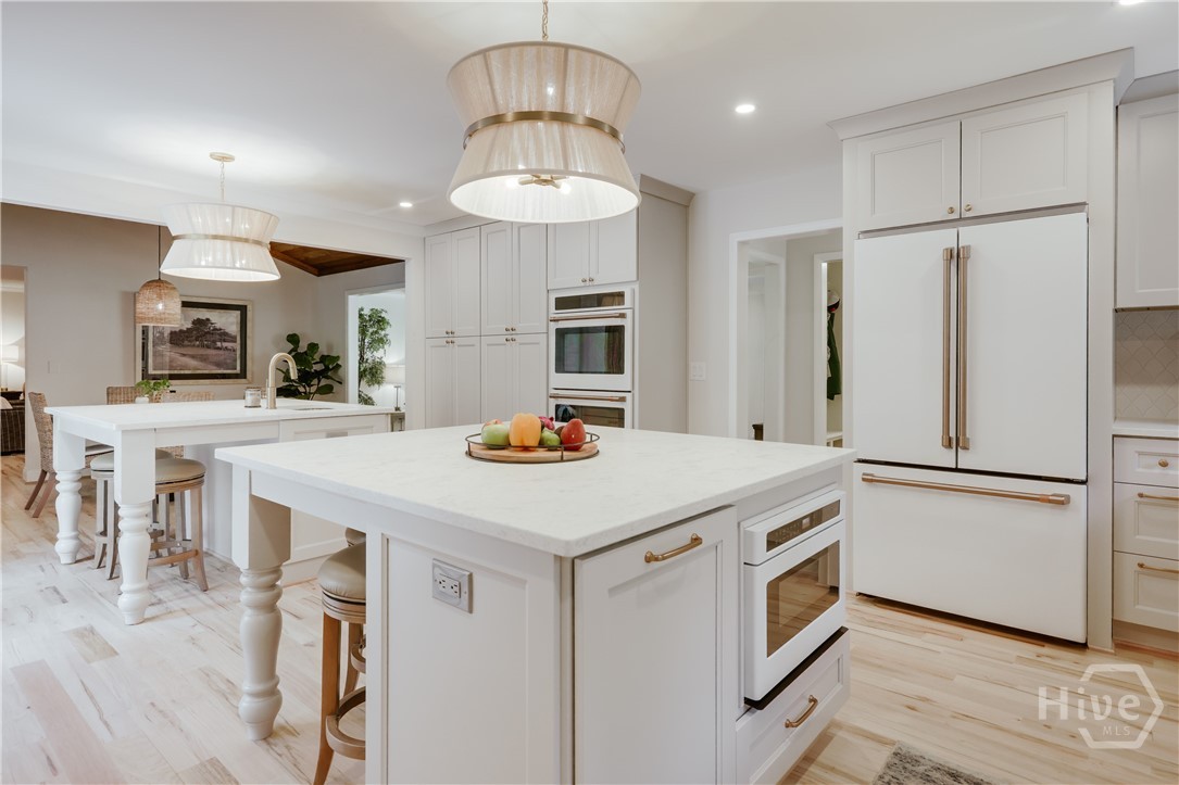 Completely remodeled throughout, this stunning 5 bedroom, 4.5 bath home with Guest Cottage & serene salt water pool on nearly 3 acres is full of one custom feature after another. Nestled perfectly in the back of Tanglewood & surrounded by other custom homes on large lots, this estate boasts lush landscaping and private vistas with McNutt Creek rambling behind. Every inch of this home was thoughtfully redesigned with both function and serenity equally considered. Walk through the custom iron & glass entry to a sunken Dining Room with original parquet floor. Flow through the Breakfast Room into the custom Cook’s Kitchen with dual islands, honed quartz counters, all Café appliances. Move into the roomy Living Room with gas fireplace & airy Sunroom. A private luxurious Primary Suite sits nestled on the rear corner & features a spa-like bath suite with custom features. The main floor is completed by a private guest suite, laundry room & powder room. A full Walkout Terrace Level provides a flexible den with gas fireplace, a screened porch, 3 full bedrooms and 2 baths, & is stubbed for a bar. The inviting salt water pool & pool deck contribute to the sleek aesthetic of this property. A new Trex deck across the back o?ers additional recliner & hot tub space. Plus, the new privacy fence provides some yard space inside the pool deck. Rinse o? in the outdoor shower before heading straight into the convenient full bath just o? of the patio or up to the deck overlooking the property’s foliage & surrounding nature. A full guest cottage completes the property. Flow through the zero entry foyer into a flexible Great Room. Complete with custom Murphy Bed for extra sleeping, the large space provides multiple optimal flexibility. An ample sized bedroom with custom closet & full bath round out the main floor. Below is an oversized rear entry garage. Bring your additional cars, set up your full workshop, or fine tune your swing by adding a golf simulator. The possibilities are endless!