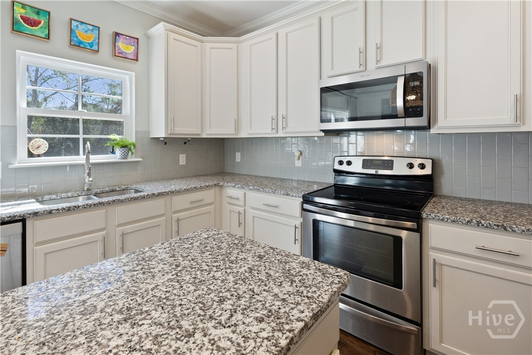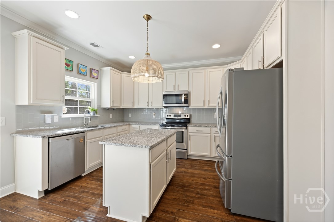 Back on the market at no fault to the seller! Home has been fully inspected and report available onsite and upon request. Beautiful thoughtfully designed home features stone exterior accents with 4 bedrooms, and 2.5 baths inside. The main living areas seamlessly blends classic charm, wood flooring, crown molding and custom trim with significant peace of mind upgrades including a new roof (2023) and High Efficiency Carrier AC system with upgraded custom duct work. The open layout is ideal for both everyday living and entertaining. Family room is open to a luxurious kitchen anchored by a center island with granite countertops.stainless steel appliances, upgraded custom cabinetry and stylish subway tile backsplash. Fully remodeled main floor bathroom, refreshed dining room and separate living room/office compete the main floor. High end finishes continue throughout with plantation blinds and designer lighting adding timeless style and function throughout the home. The spacious primary suite features dual walk-in closets, providing excellent storage and functionality. Primary ensuite is compete with double vanities and a separate tub and shower. Secondary bedrooms are large and have spacious closets. Additional highlights include attached ceiling storage in garage for added space and convenience. Enjoy your own private oasis as the living space is extended outdoors to the fully fenced private backyard complete with an impressive 600 sq ft custom stamped concrete patio and pergola compete with shades—surrounded by fresh sod and professional landscaping. Perfect for outdoor gatherings, coffee in the mornings and relaxing evenings. Rare opportunity to own a fully realized, move in ready sanctuary where every major update had already been expertly handled. Walk to neighborhood pool and golf course. In the heart of Richmond Hill, it's close to shopping, parks and schools. This one won't last long.