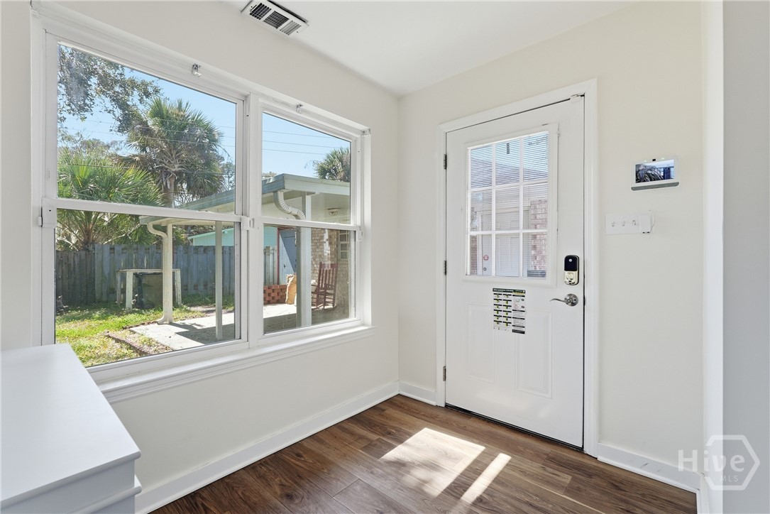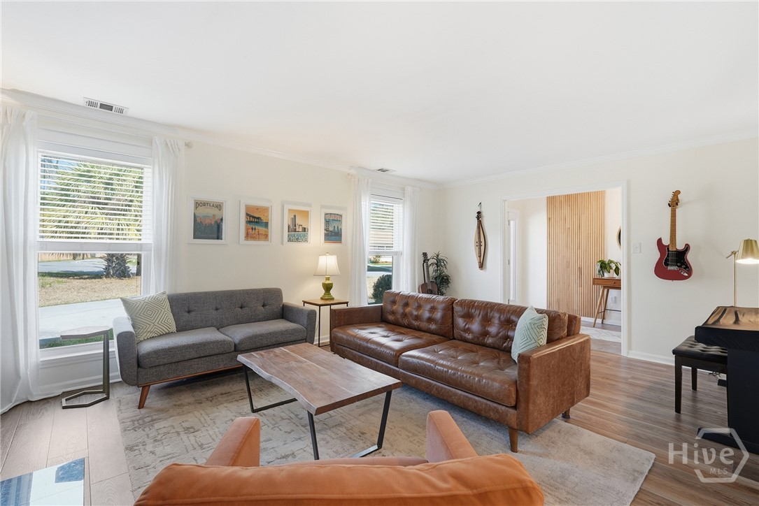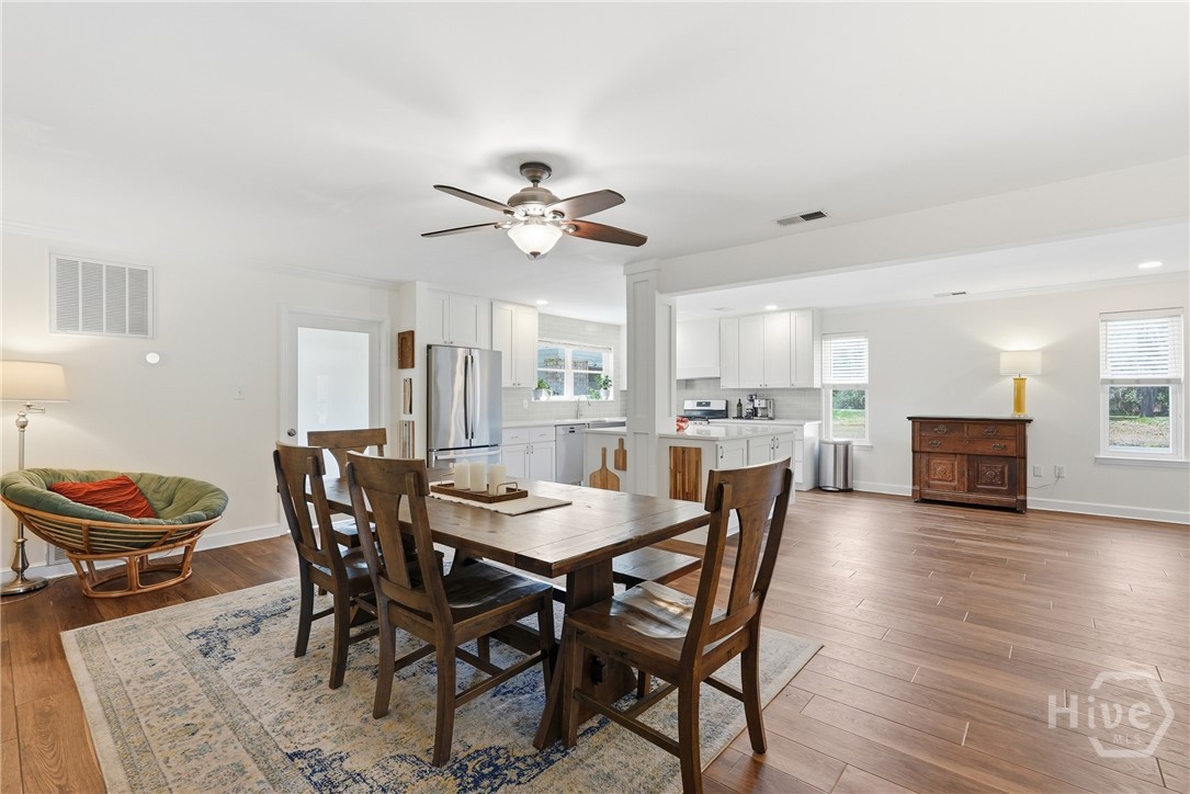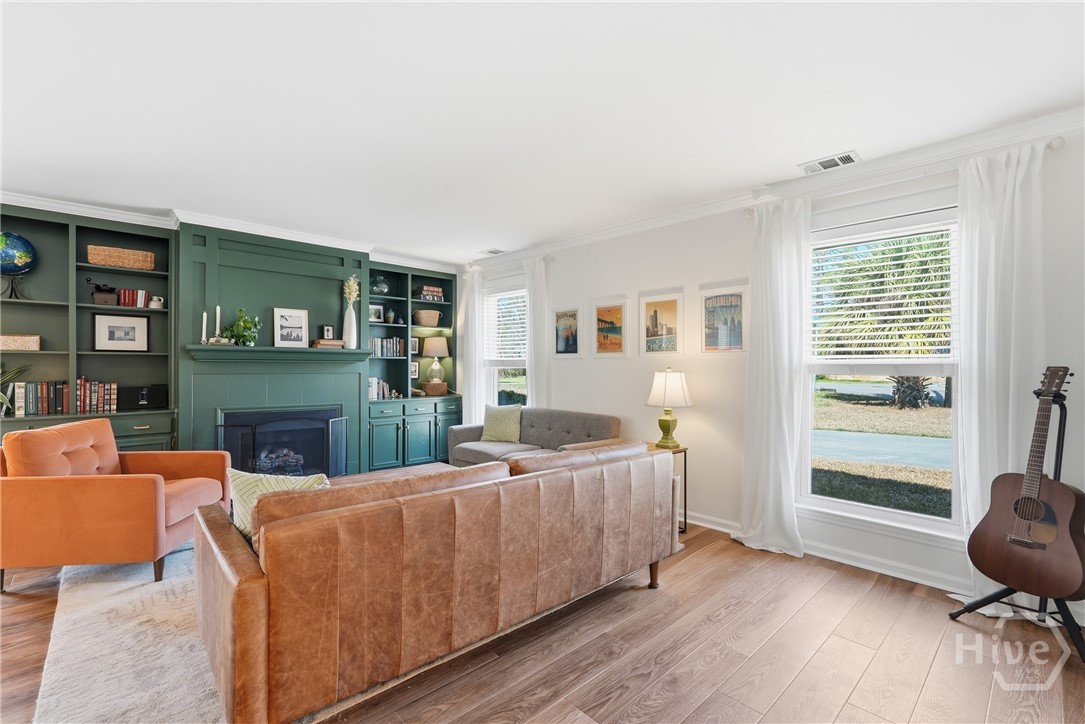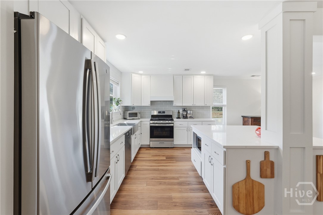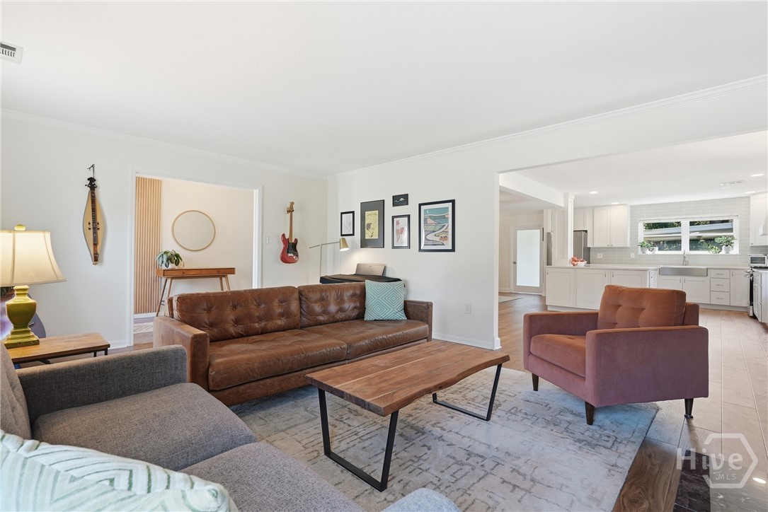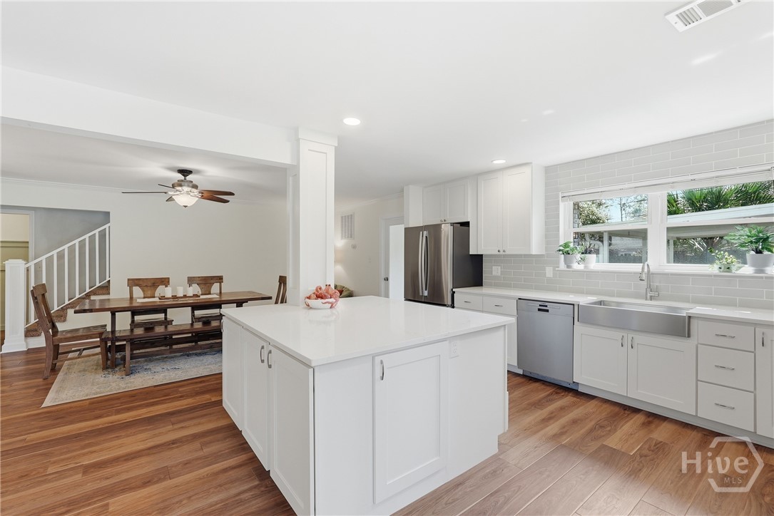 So much love went into every detail of this beautifully renovated 4 Bed 2 Bath ranch-style home, nestled in the sought-after Groveland/Kensington Park neighborhood. From the updated kitchen featuring stainless steel appliances and crisp white cabinetry to the built-in shelves around the fireplace, the upgrades are evident at every turn. The common areas feature a beautiful, warm tone LVP flooring. Enjoy the ease of quick access to Downtown Savannah's vibrant dining and shopping scene, all while coming home to a private, fully fenced backyard complete with mature trees draped in Spanish moss and a charming brick fire pit — perfect for entertaining or unwinding. The detached garage and shed offer excellent storage and flexibility. You feel right at home from the moment you pull into the driveway. This is one you won't want to miss. No HOA and not located in a flood zone!!