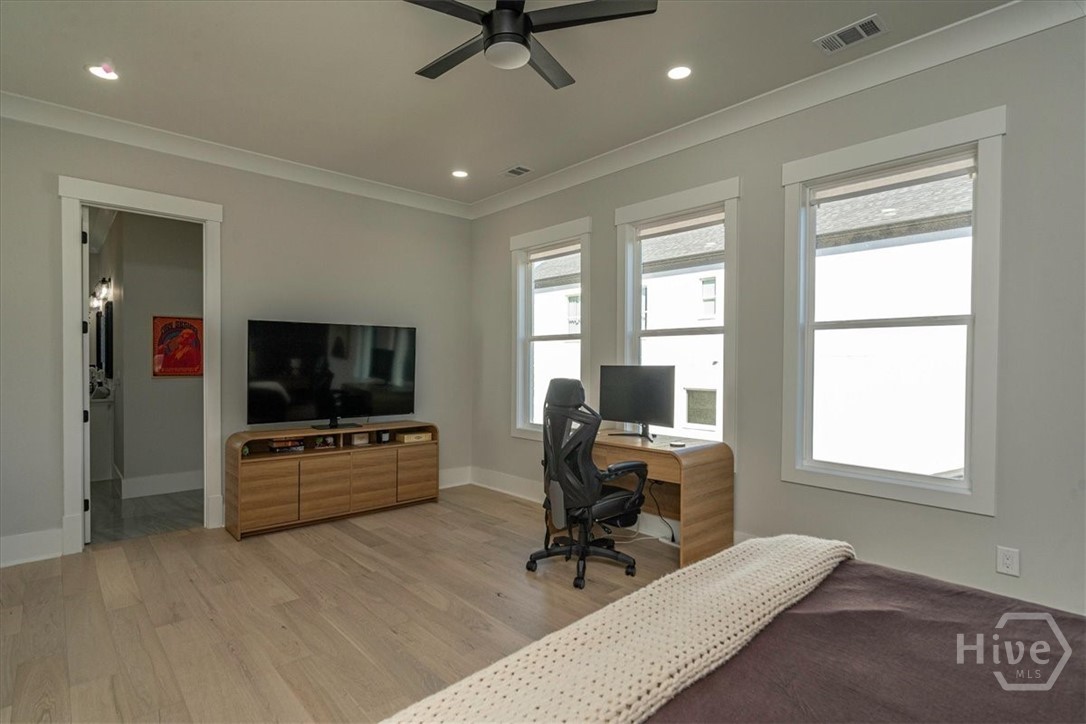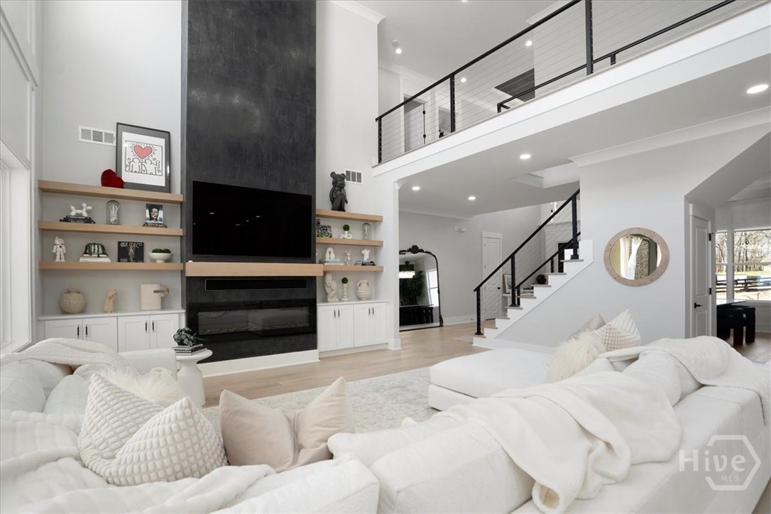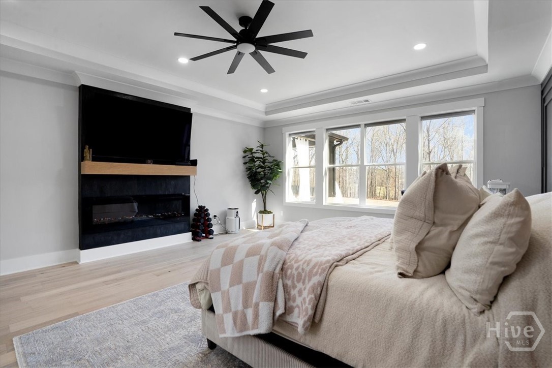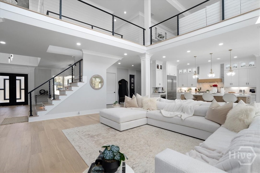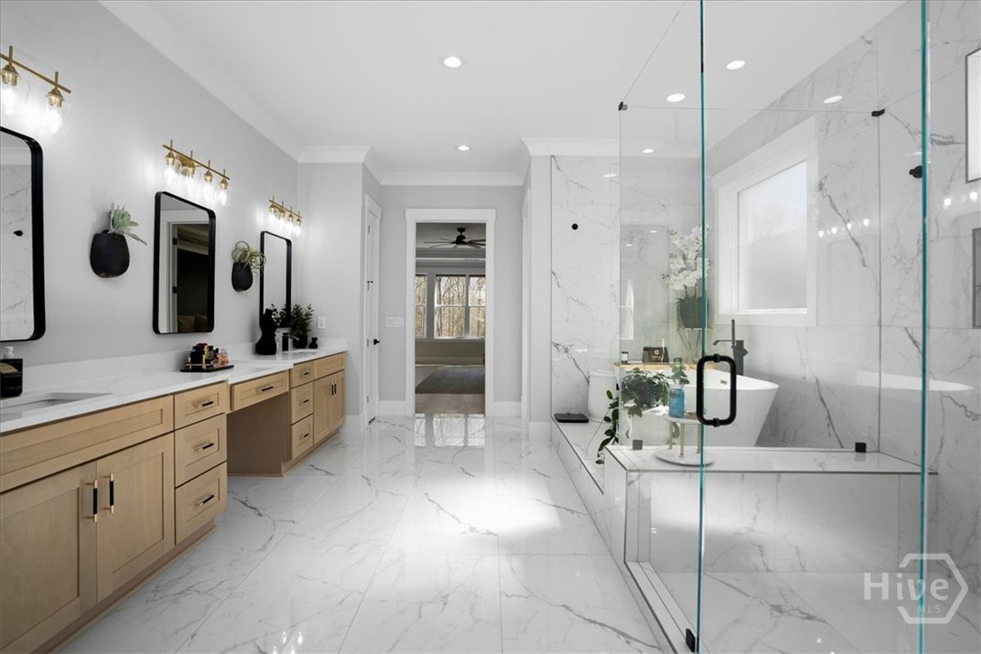 No build timeline, no delays, no unfinished selections. This 2024 custom home is complete, gated, and ready to close on a private one-acre lot with no HOA. The three-car garage includes dedicated parking for an RV or boat. Ten-foot ceilings and hardwood flooring run throughout. The kitchen is built around a large island, walk-in pantry, and a full Thermador 48-inch stainless suite, opening directly into the great room with a fireplace. The main-level owner’s suite has a fireplace, soaking tub, frameless glass shower, and a walk-in closet designed for two. A second main-level bedroom has its own private bath. Upstairs, a second owner’s suite delivers a full bath and walk-in closet finished to the same standard. Not a guest room. A suite. A second living area with a wet bar adds space for entertaining or relaxing. Two additional bedrooms and a dedicated office with custom built-in cabinetry provide flexibility for work, guests, or personal use. The one-acre lot is level, fenced, and gated. A covered porch and patio extend the living space for year-round use. Additional features include spray foam insulation, a tankless water heater, Energy Star certification, home automation, a security system, and frameless glass showers throughout. One acre. No HOA. No wait.