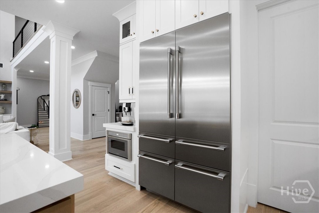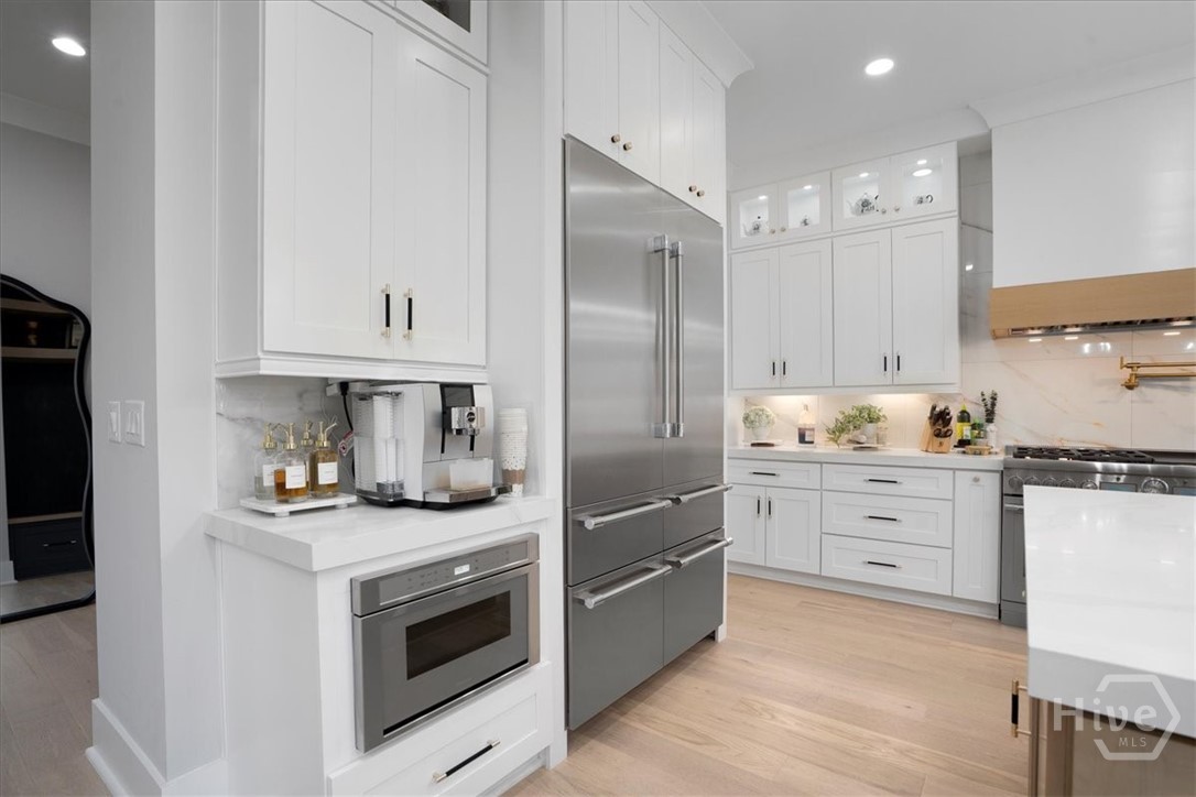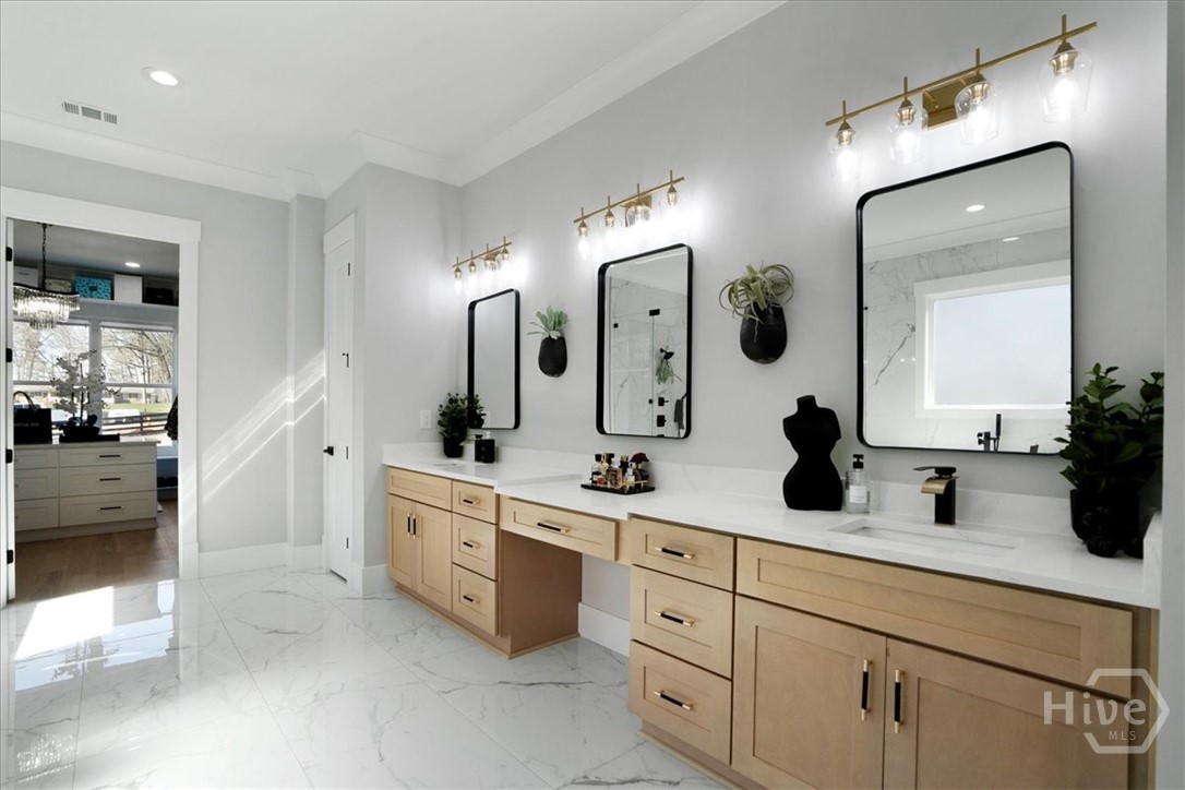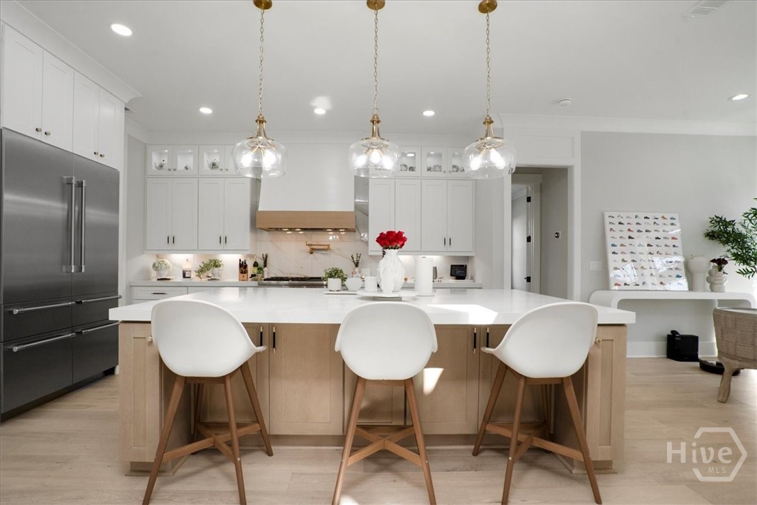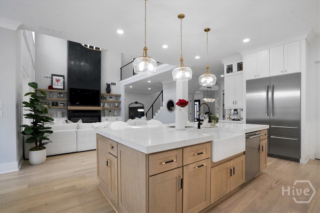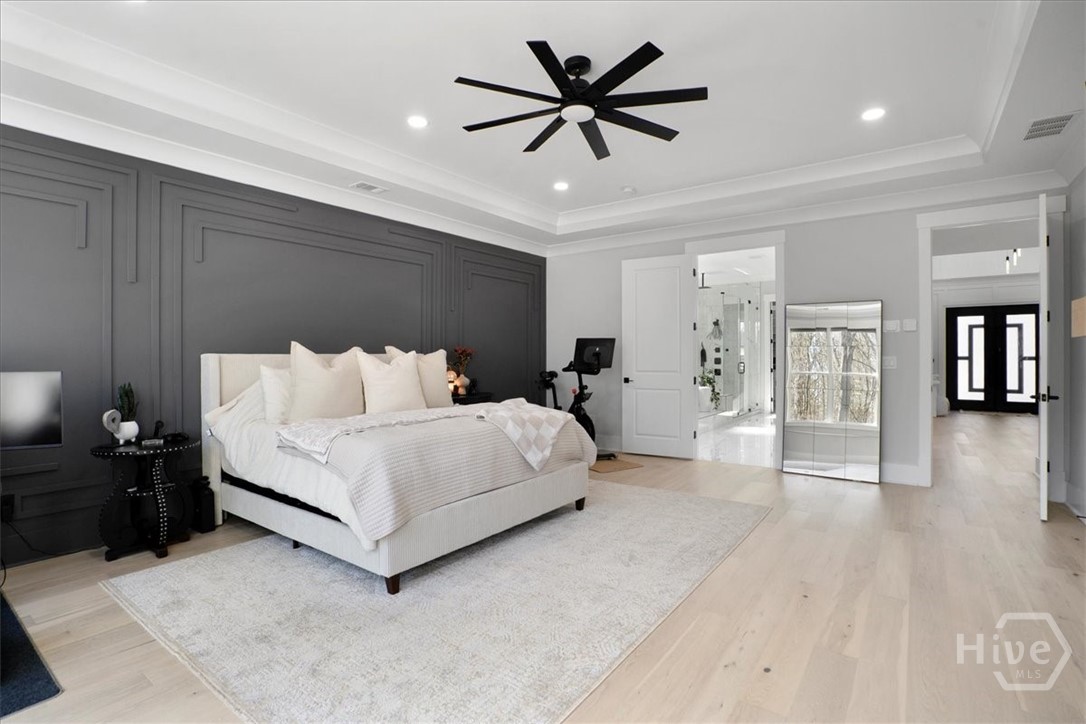 No build timeline, no delays, no unfinished selections. This 2024 custom home is complete, gated, and ready to close on a private one-acre lot with no HOA. The three-car garage includes dedicated parking for an RV or boat. Ten-foot ceilings and hardwood flooring run throughout. The kitchen is built around a large island, walk-in pantry, and a full Thermador 48-inch stainless suite, opening directly into the great room with a fireplace. The main-level owner’s suite has a fireplace, soaking tub, frameless glass shower, and a walk-in closet designed for two. A second main-level bedroom has its own private bath. Upstairs, a second owner’s suite delivers a full bath and walk-in closet finished to the same standard. Not a guest room. A suite. A second living area with a wet bar adds space for entertaining or relaxing. Two additional bedrooms and a dedicated office with custom built-in cabinetry provide flexibility for work, guests, or personal use. The one-acre lot is level, fenced, and gated. A covered porch and patio extend the living space for year-round use. Additional features include spray foam insulation, a tankless water heater, Energy Star certification, home automation, a security system, and frameless glass showers throughout. One acre. No HOA. No wait.
