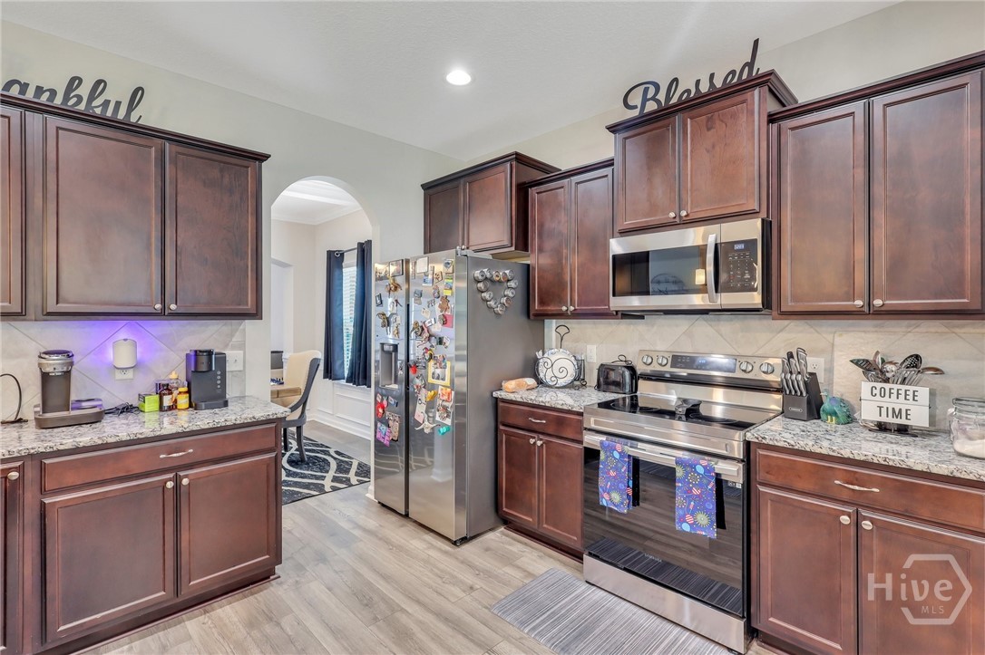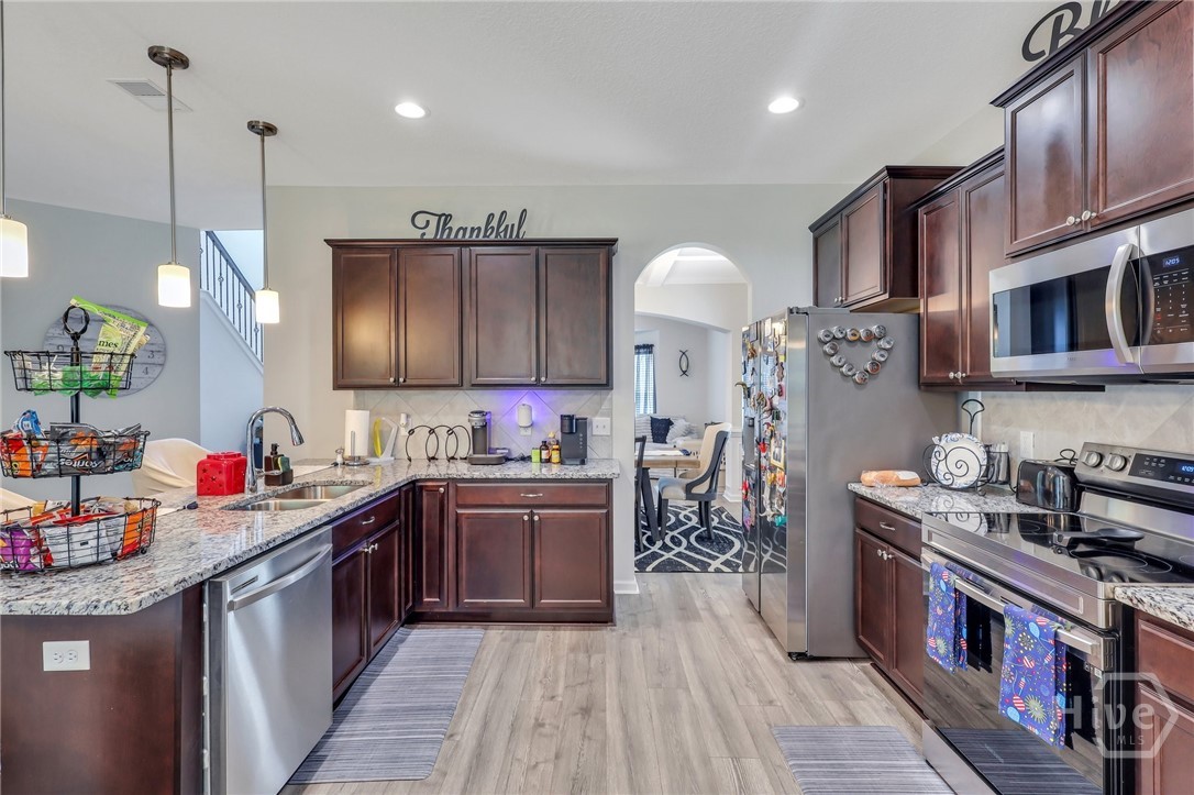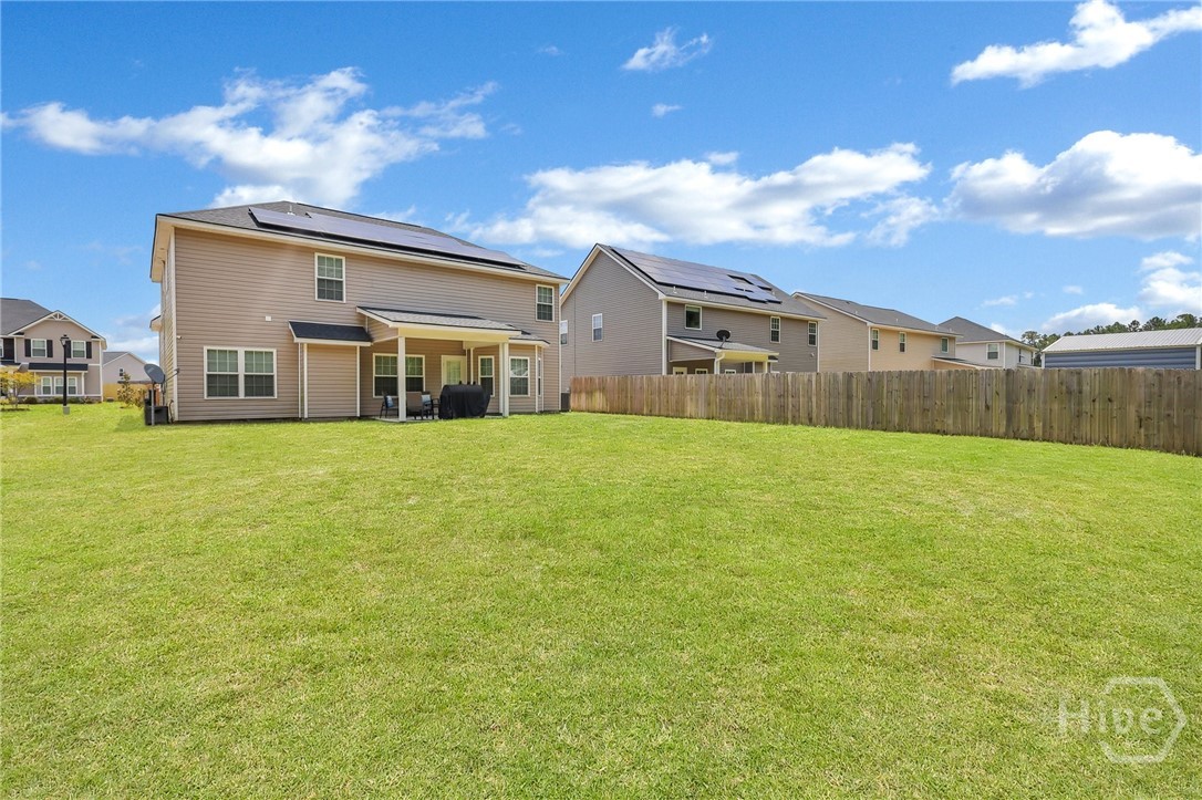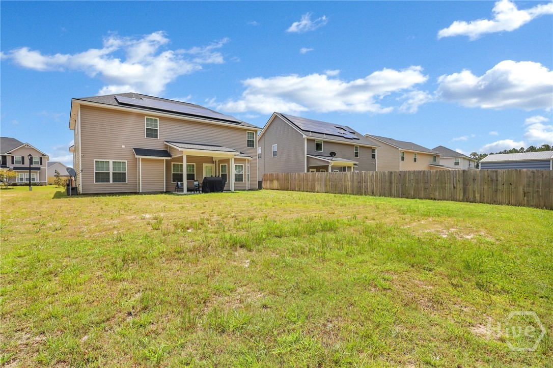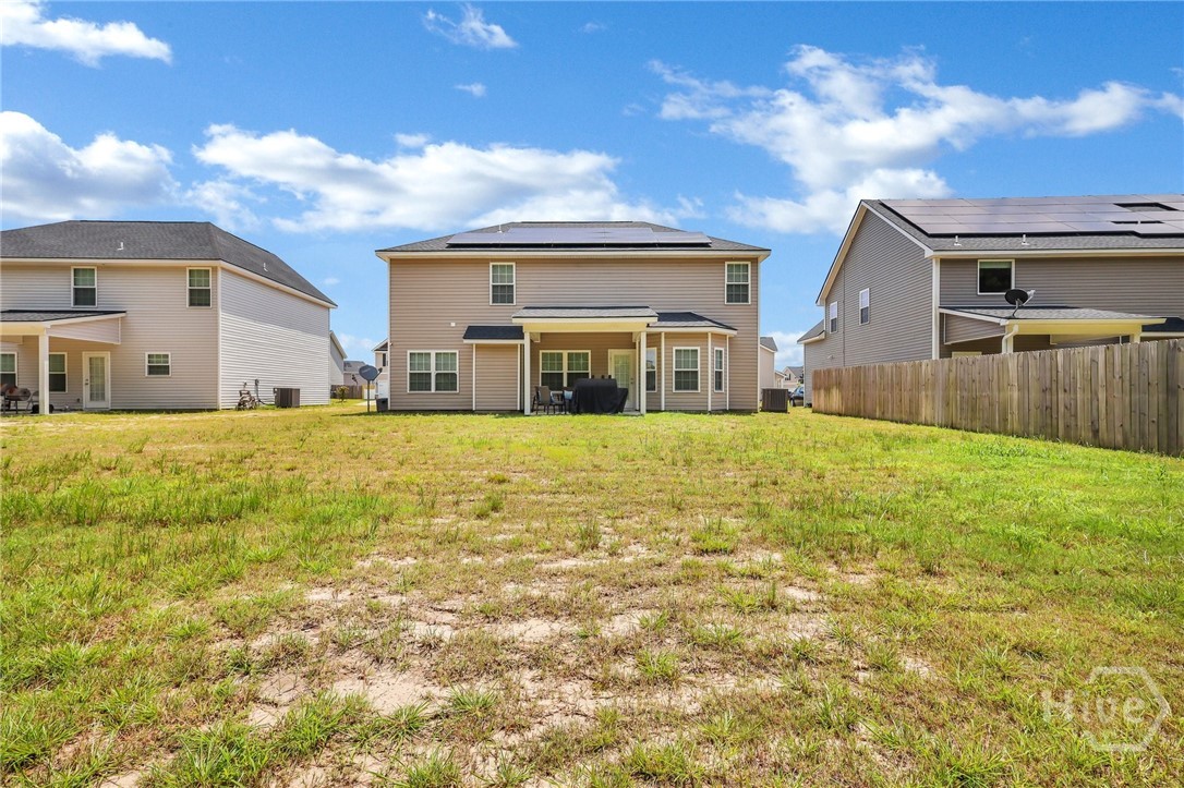 Less than 5 minutes to Ft Sewart and easy access to Savannah. Welcome to your dream home! This stunning 4-bedroom, 2.5-bathroom residence offers the perfect blend of modern living and energy efficiency, featuring 1-year-old solar panels that significantly reduce your utility costs. As you enter, you're greeted by a spacious open-concept living area filled with natural light, making it the ideal space for family gatherings and entertaining friends. The well-appointed kitchen boasts stainless steel appliances, and an island that flows seamlessly into the dining and living areas. Retreat to the spacious master suite, complete with an ensuite bathroom featuring dual vanities, a soaking tub, and a separate shower. Three additional bedrooms provide ample space for family, guests, or a home office. Enjoy the convenience of a dedicated laundry room and a two-car garage, plus a beautifully landscaped backyard. SOLAR PANELS INCLUDED