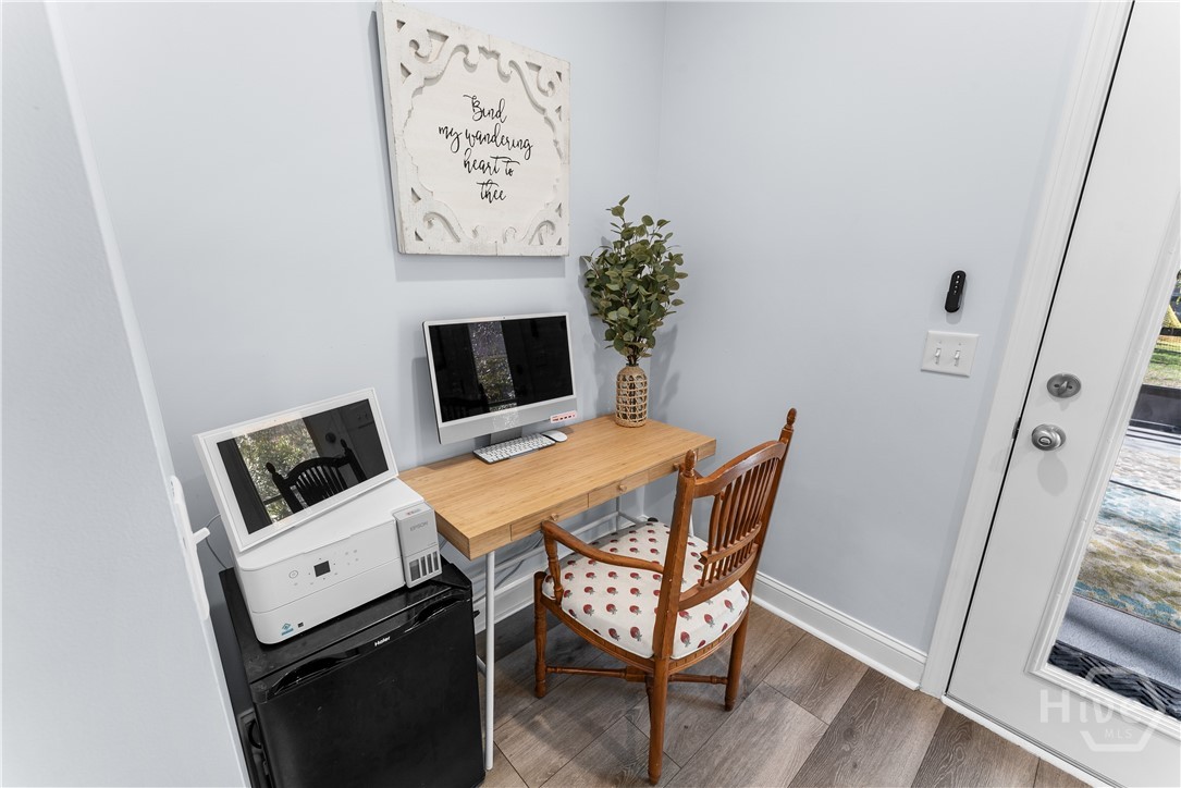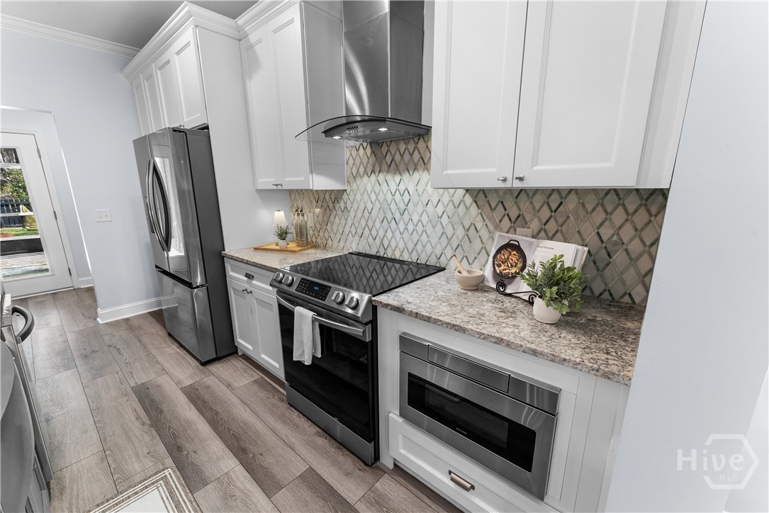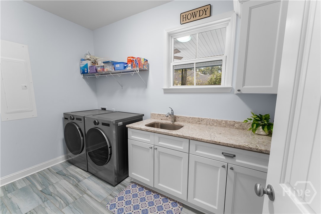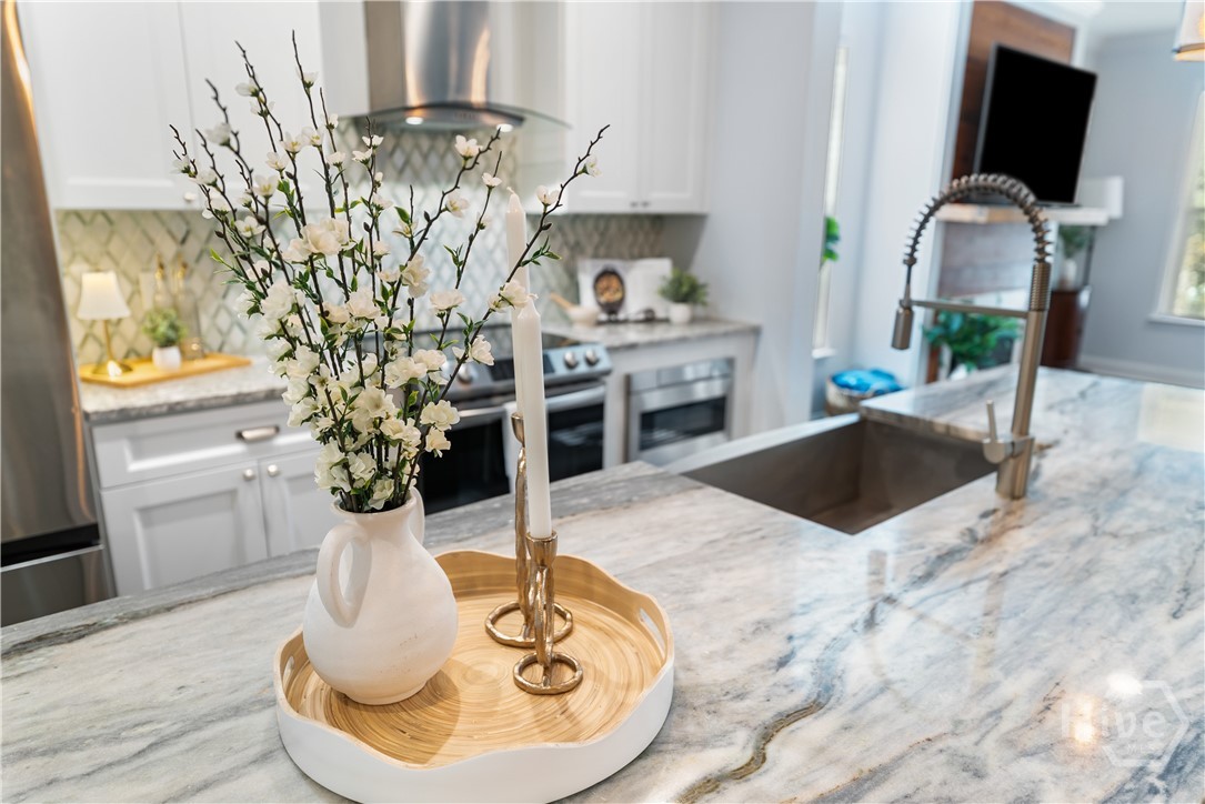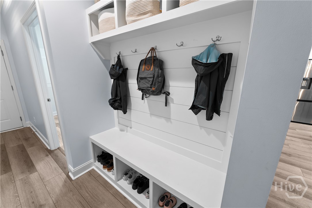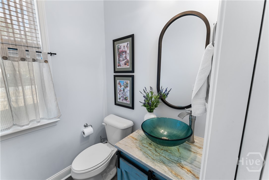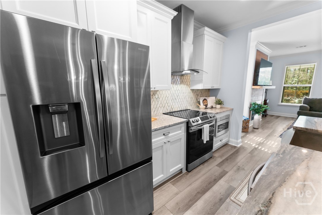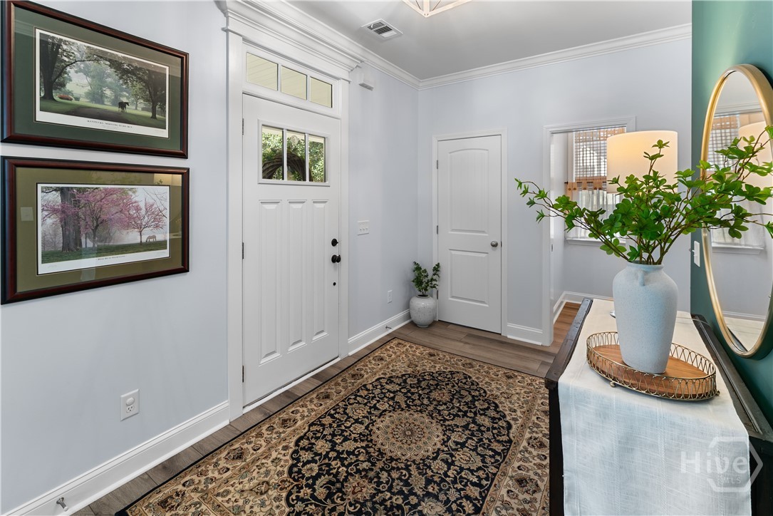 Located in the desirable Waterways Township, this stunning home showcases high-end finishes, thoughtful design, elegant coastal style throughout. Step inside to a welcoming foyer that opens to a bright and inviting open-concept floor plan, perfect for both everyday living and entertaining. The heart of the home features a beautifully designed kitchen with a sophisticated backsplash, designer lighting, and chic paint colors that create a warm and inviting atmosphere. The spacious living area is anchored by a heart pine accent electric fireplace, adding character and Lowcountry charm. Owner’s suite on main level offers comfort & privacy, creating a relaxing retreat within the home. Upstairs, you’ll find four additional bedrooms and two full baths, including a private guest suite with its own bath and walk-in closet—perfect for visitors or extended family. One of the most enchanting features of the home is the fairytale-style second-level porch, offering a peaceful space to relax and enjoy the surrounding beauty. A welcoming foyer introduces the home’s bright and airy open floor plan, where thoughtful design and elegant details create a warm, sophisticated atmosphere. Additional features include, butler pantry/coffee bar and desk area that opens onto a private screened porch that flows into a fenced backyard area, also the side entry double car garage that has a private entrance with builtin bench and cubbies plus a huge laundry with cabnetry and sink area. Fresh paint, floors, window coverings and well cared for home that makes this home ready for you. A perfect blend of modern style with timeless Southern character, Residents of Waterways enjoy incredible amenities and a lifestyle surrounded by nature, all just a short drive to Savannah, airport, historical Coastal Georgia Coastline to enjoy and beyond!