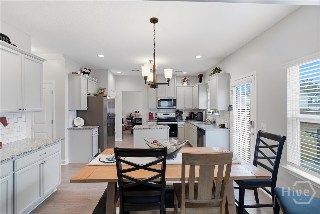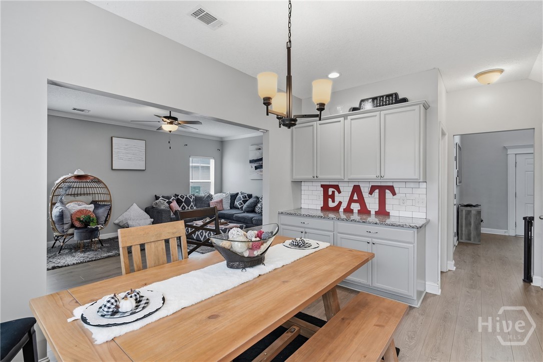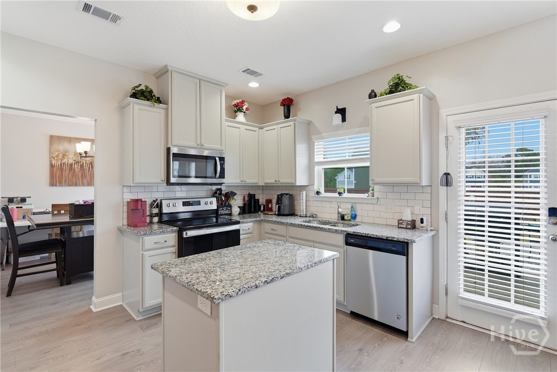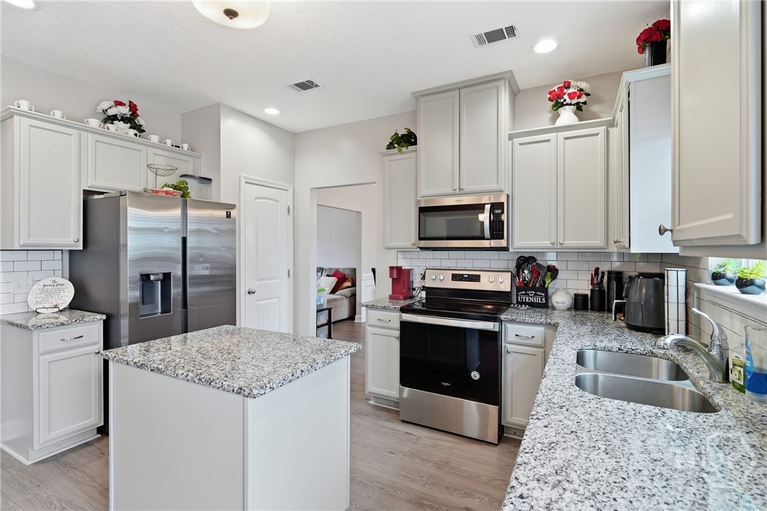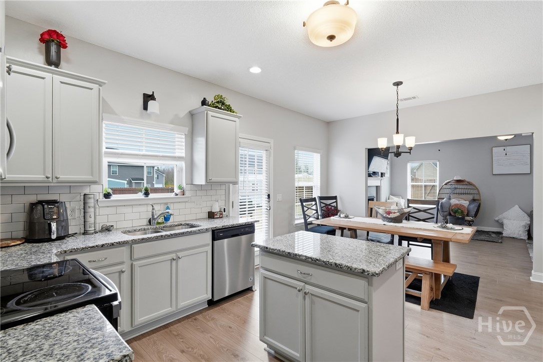 Welcome Home! This impressive home greets you with a grand two-story foyer leading to a formal living room, perfect for entertaining. The layout seamlessly flows from the living room into a spacious formal dining room, which provides direct access to the beautifully appointed kitchen. The kitchen boasts elegant granite countertops, a stylish tile backsplash, and a cozy breakfast area, all while maintaining a clear view of the inviting family room featuring a warm fireplace. Upstairs, you'll find three generously sized bedrooms, a full bath, and a convenient laundry area, along with the luxurious master suite. The master retreat showcases a vaulted ceiling, a private bath for added tranquility, and a spacious walk-in closet. This home offers a perfect blend of comfort and sophistication, ideal for modern living! Don't miss the opportunity to make it your own. Less than 10 minutes to Ft Sewart and easy access to Savannah.