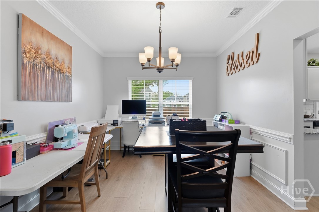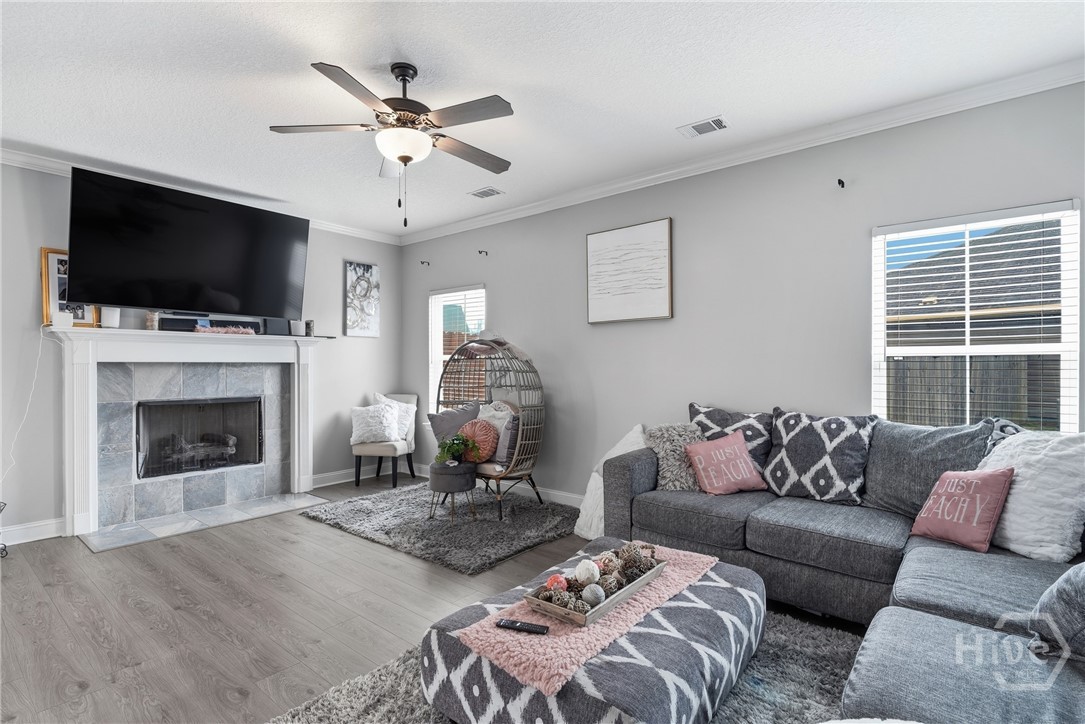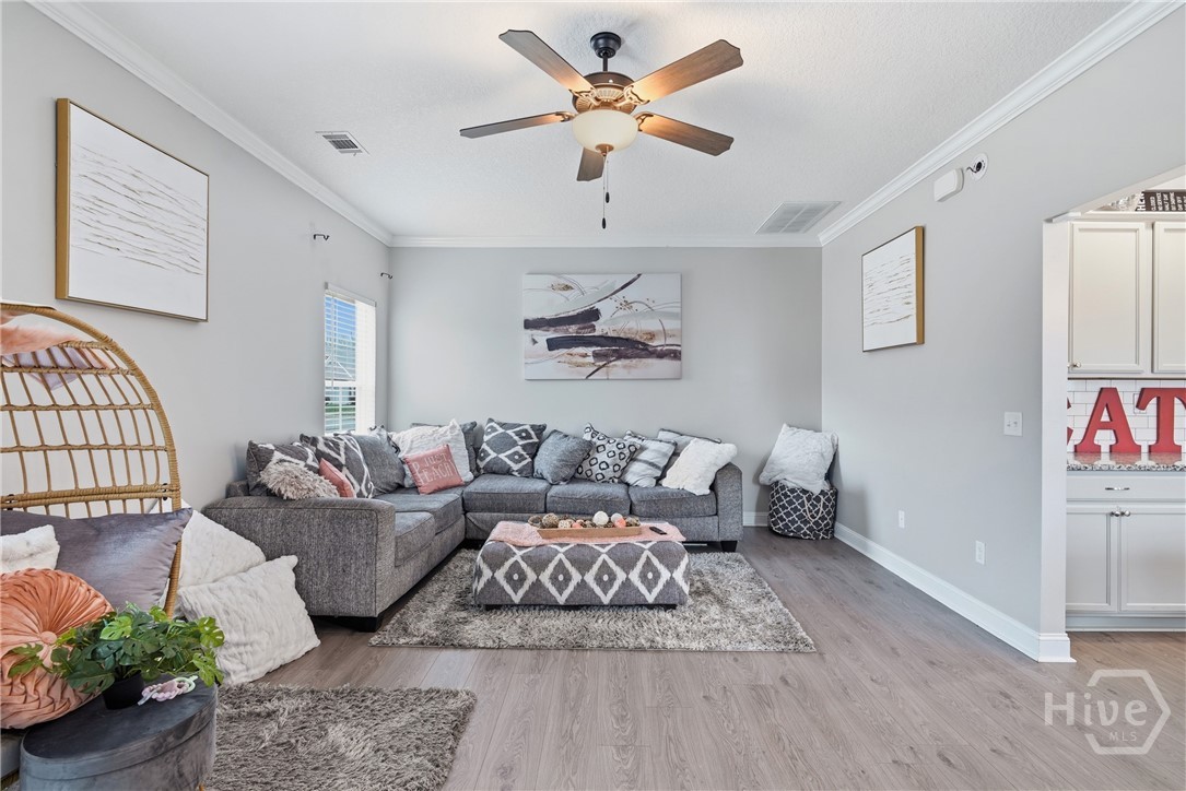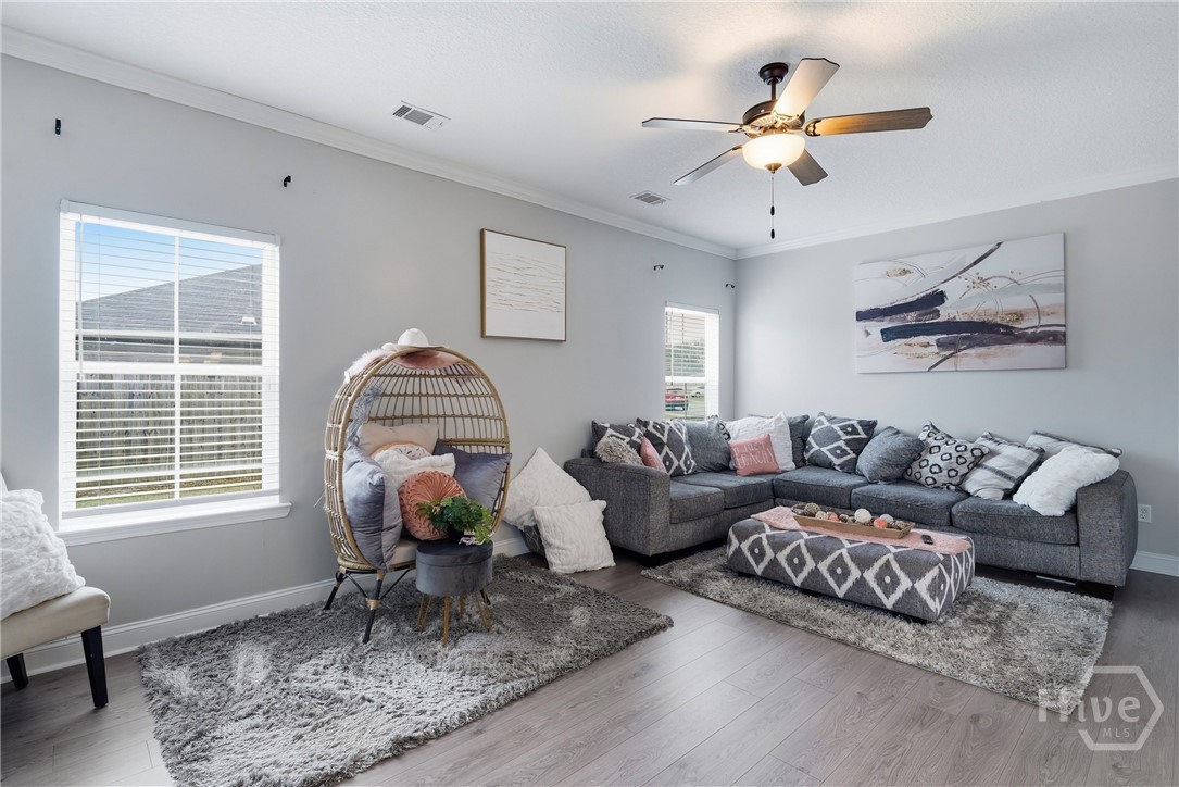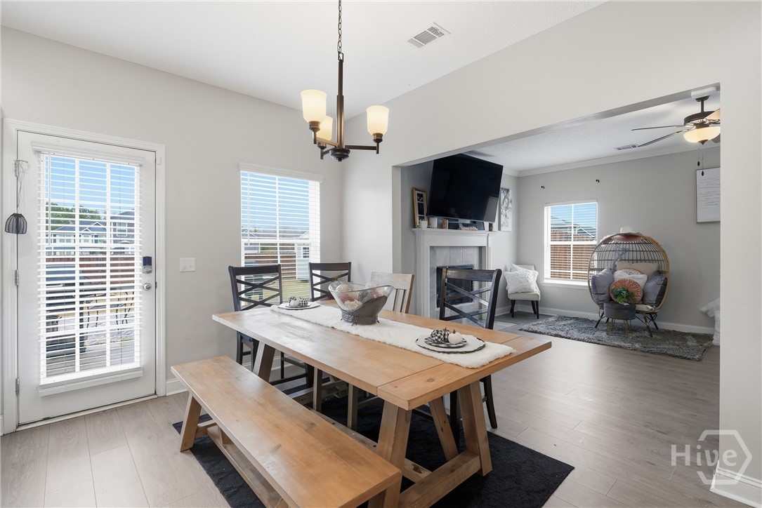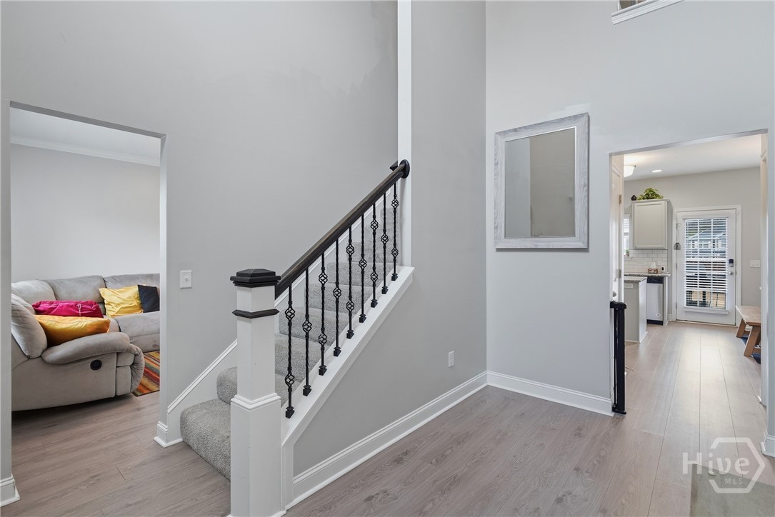 Welcome Home! This impressive home greets you with a grand two-story foyer leading to a formal living room, perfect for entertaining. The layout seamlessly flows from the living room into a spacious formal dining room, which provides direct access to the beautifully appointed kitchen. The kitchen boasts elegant granite countertops, a stylish tile backsplash, and a cozy breakfast area, all while maintaining a clear view of the inviting family room featuring a warm fireplace. Upstairs, you'll find three generously sized bedrooms, a full bath, and a convenient laundry area, along with the luxurious master suite. The master retreat showcases a vaulted ceiling, a private bath for added tranquility, and a spacious walk-in closet. This home offers a perfect blend of comfort and sophistication, ideal for modern living! Don't miss the opportunity to make it your own. Less than 10 minutes to Ft Sewart and easy access to Savannah.