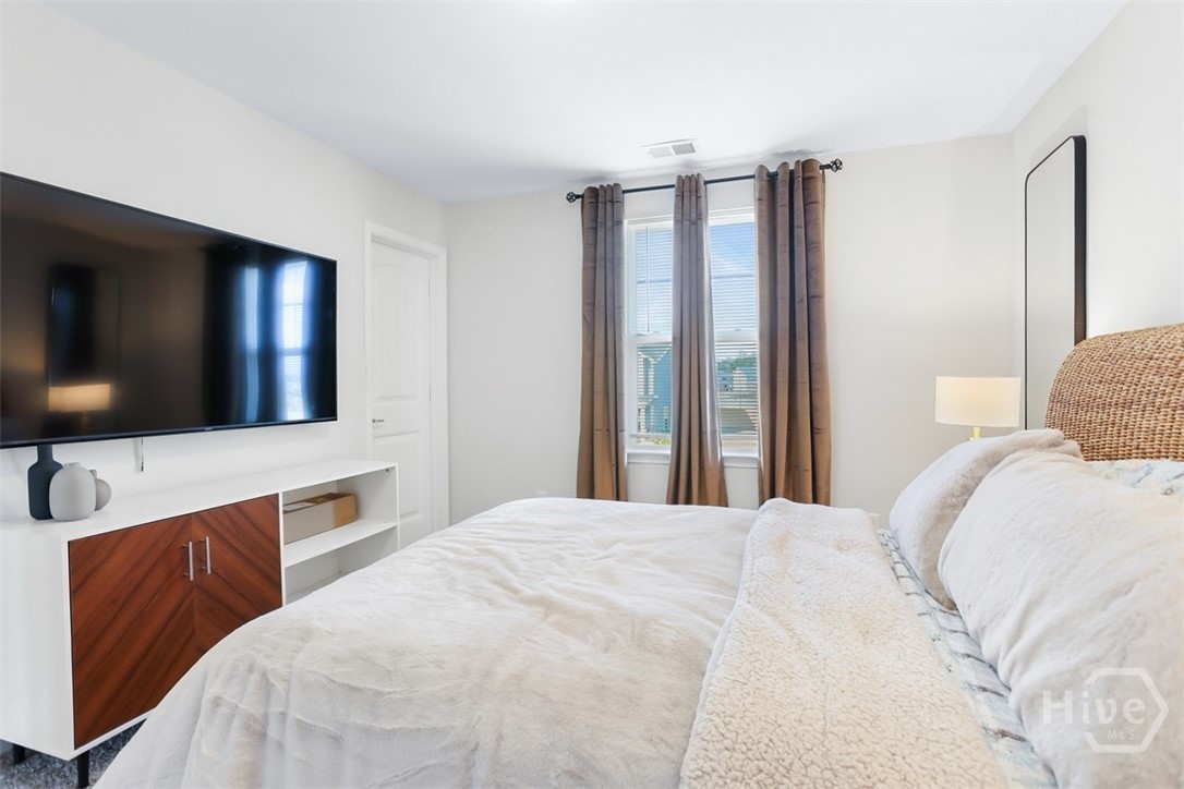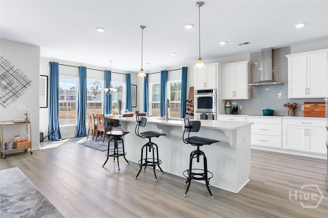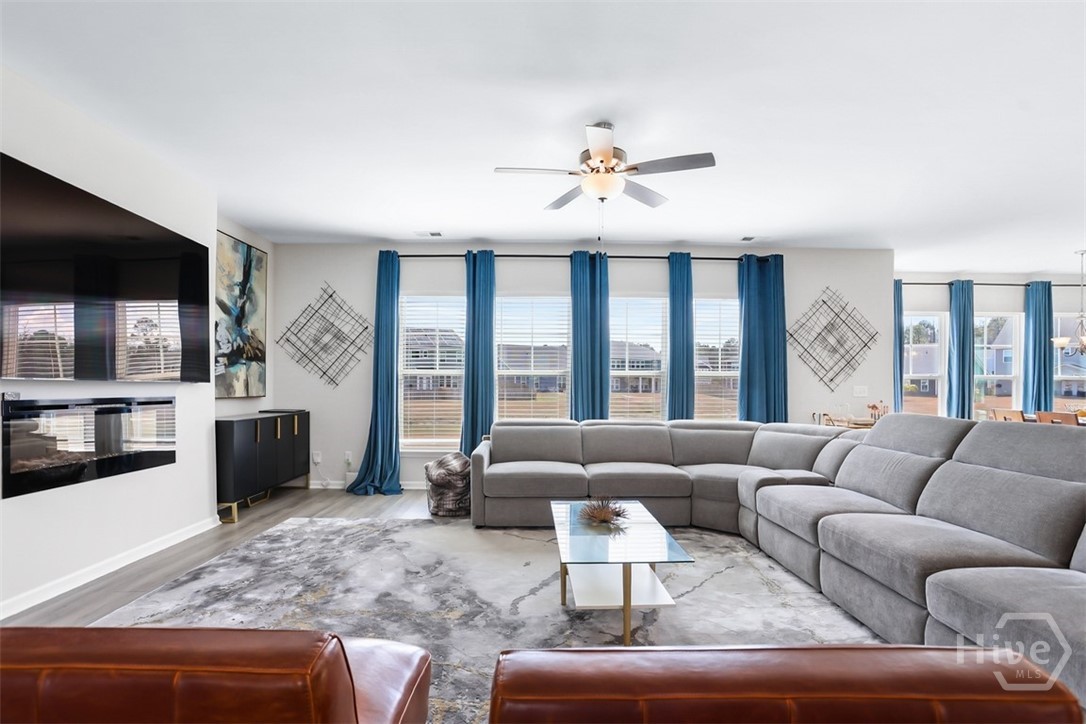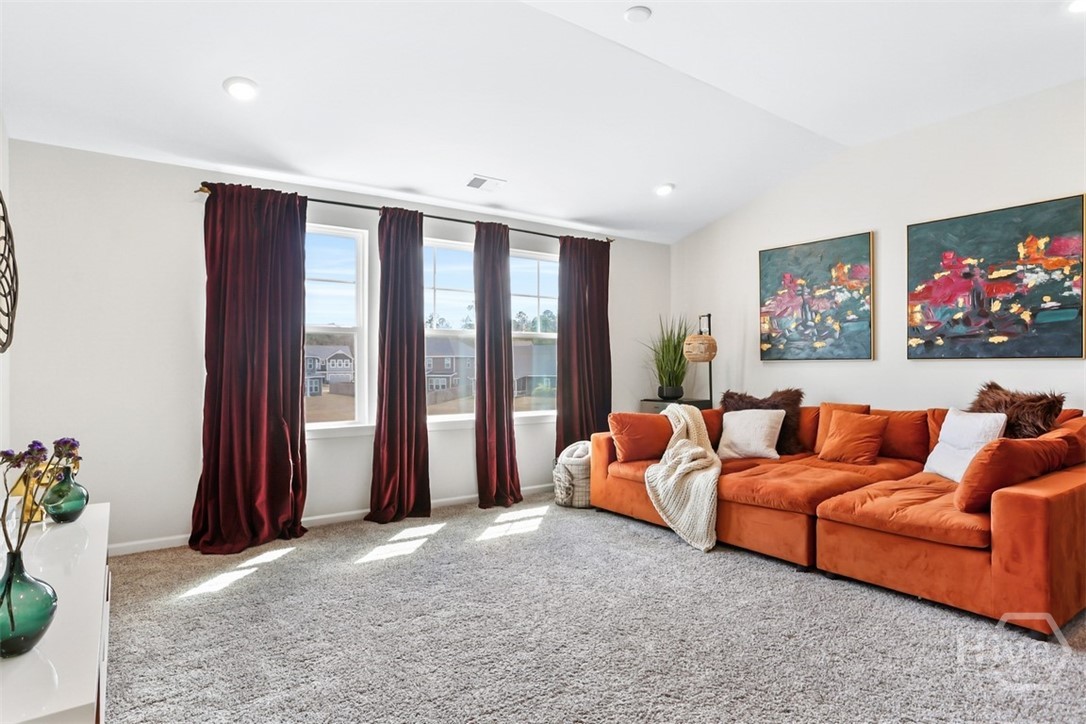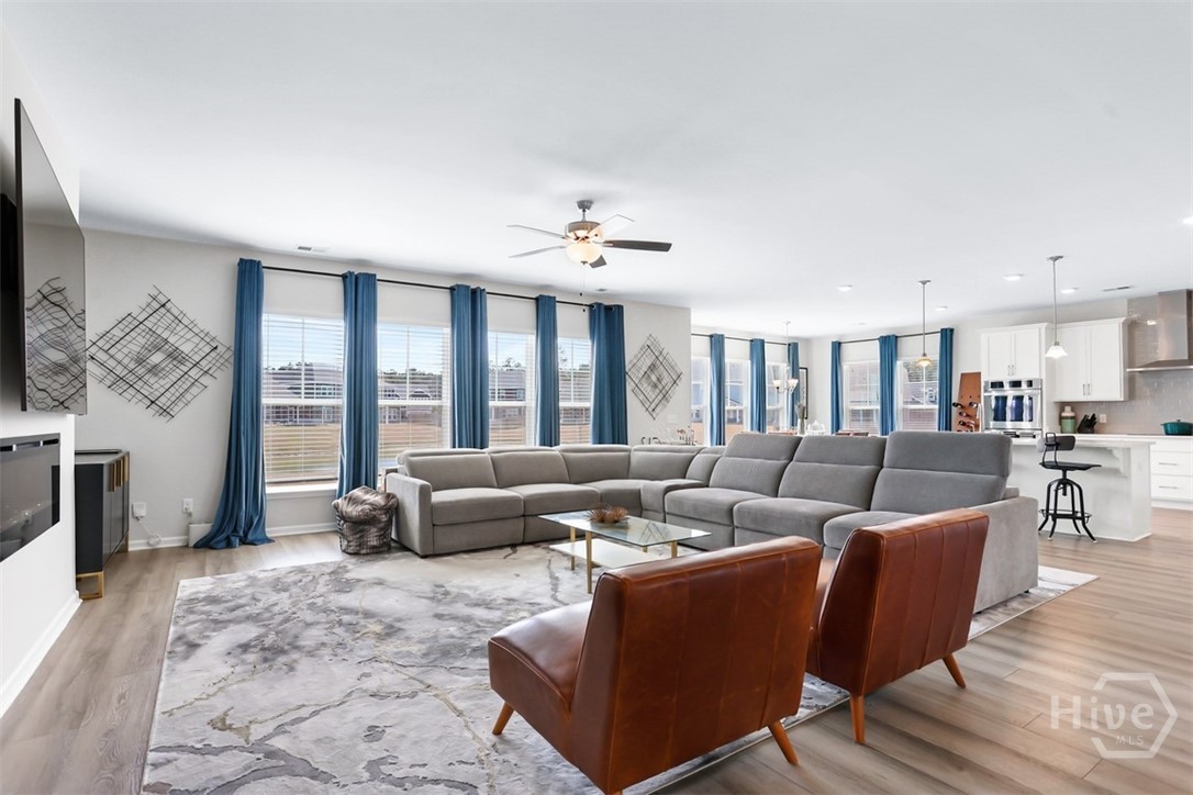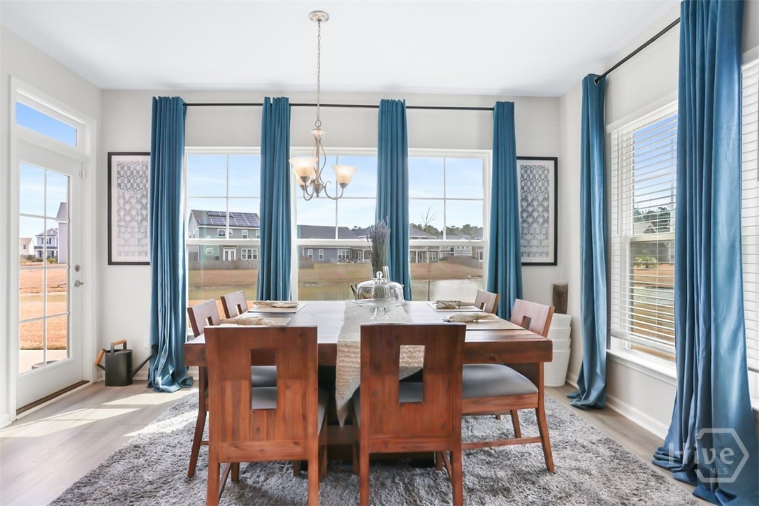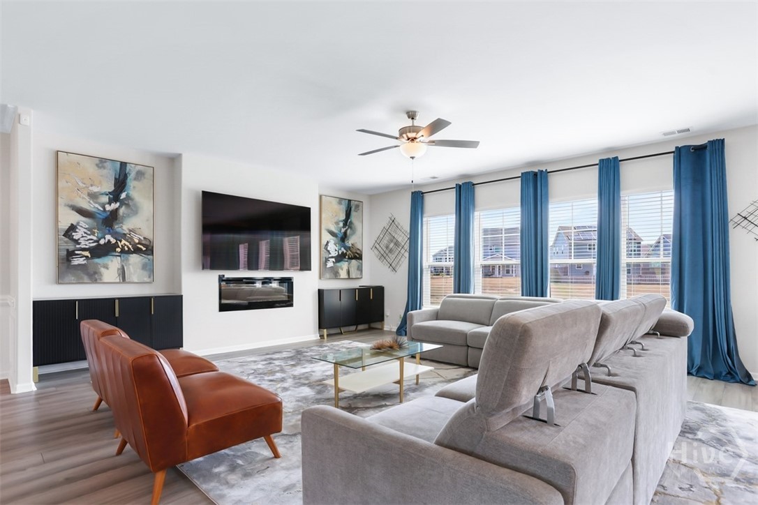 Welcome to 54 Brookhaven Dr. Beautifully maintained by its second owner, this spacious home offers over 4,100 sq ft with 5 bedrooms, 4.5 baths, a great room, media room, and a primary suite with a private sitting area. Located on a quiet street with a lagoon view, the home features a 2-car garage and inviting front porch. Inside, the foyer is flanked by a flex room/office and a large dining room (currently used as a game room). The main level includes a guest bedroom with full bath, a generous great room with fireplace, and a bright kitchen with a large breakfast area and butler’s pantry. The back wall of windows provides abundant natural light and serene views. The gourmet kitchen includes a breakfast bar, double ovens, cooktop with hood, built-in microwave, dishwasher, quartz countertops, and ample storage. The refrigerator currently in the kitchen will be replaced with the builder-upgraded French door refrigerator currently in the garage. Upstairs offers an open landing, media room, and four bedrooms with three full baths. The primary suite includes a sitting area, double vanity, soaking tub, separate shower, and two closets. One secondary bedroom has an ensuite bath; the other two share a full bath. The large backyard overlooks the lagoon and includes a full irrigation system. Community amenities include tennis courts, pool, fitness center, and clubhouse. Convenient to Pooler shopping, restaurants, the airport,Gulfstream and so much more! Come home to 54 Brookhaven Dr.