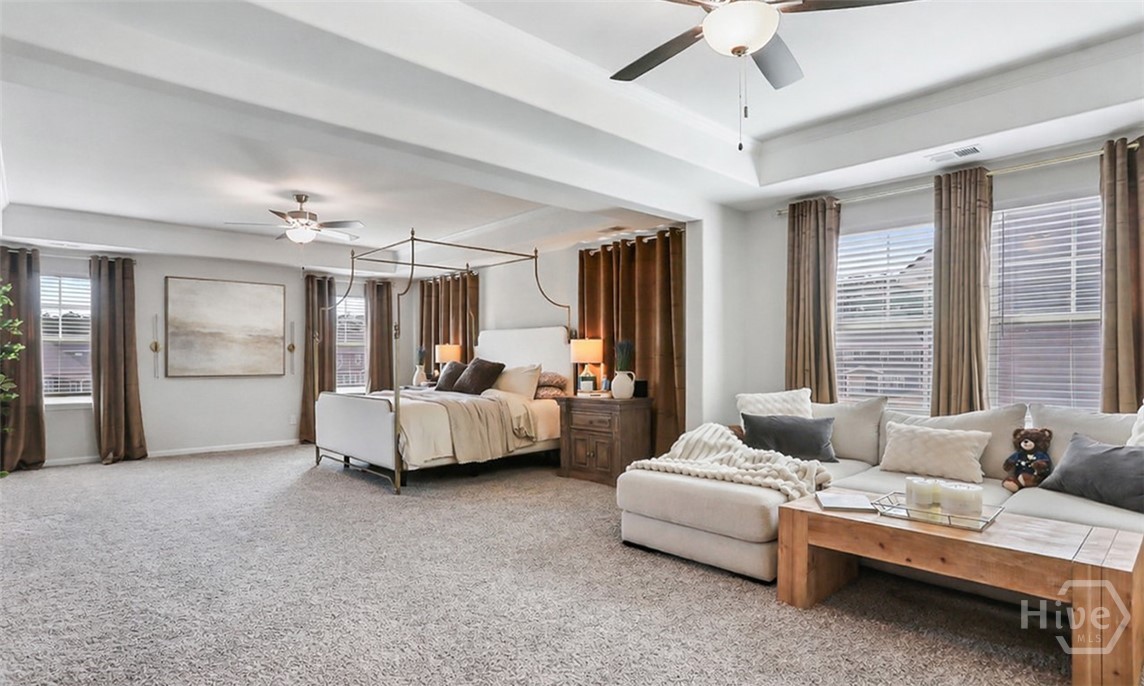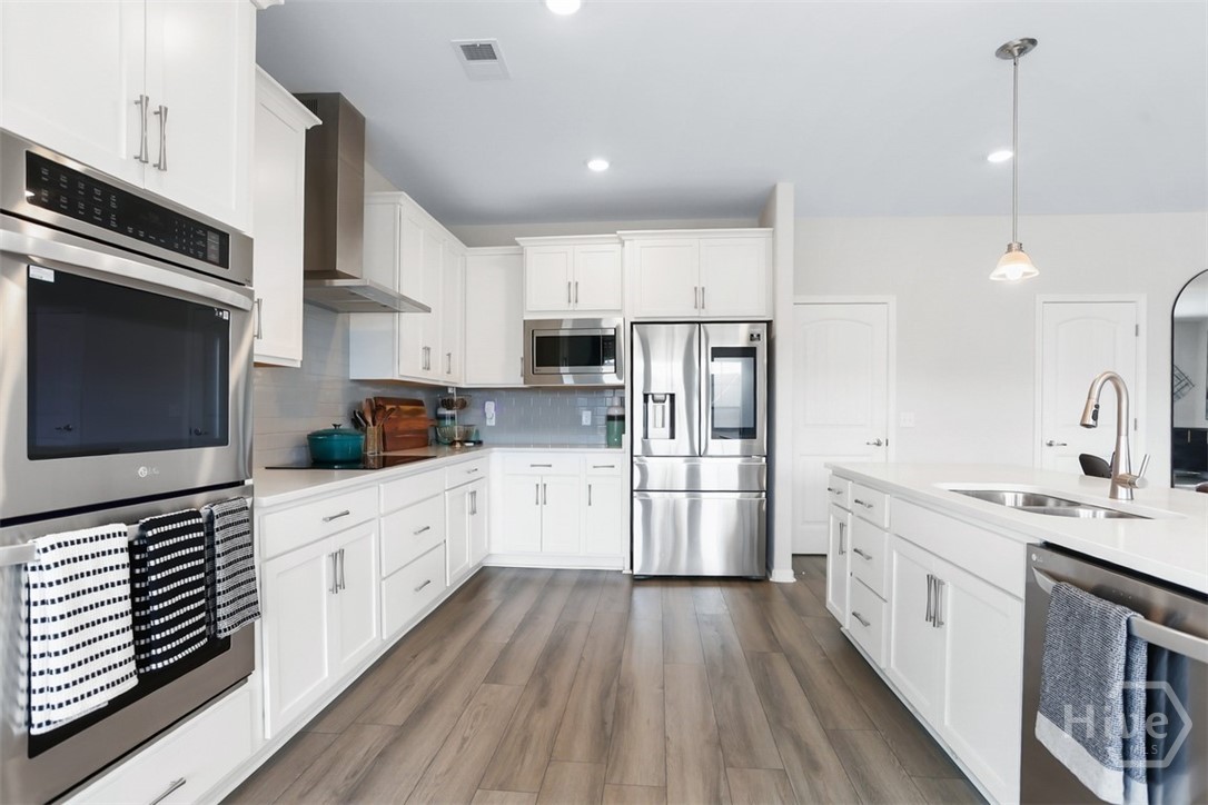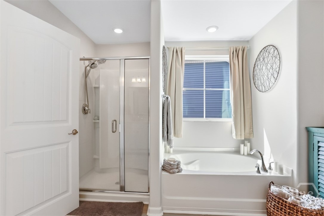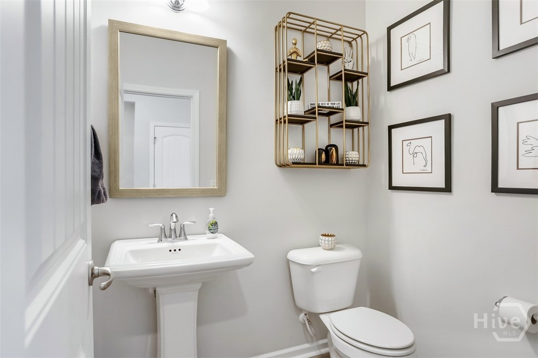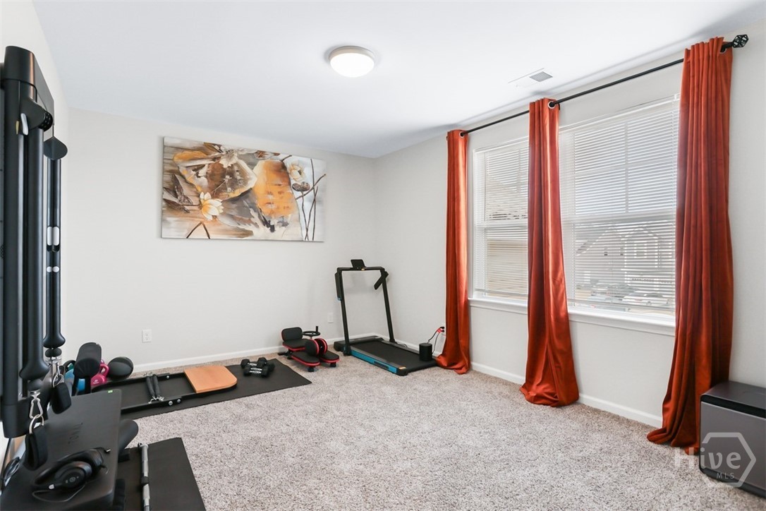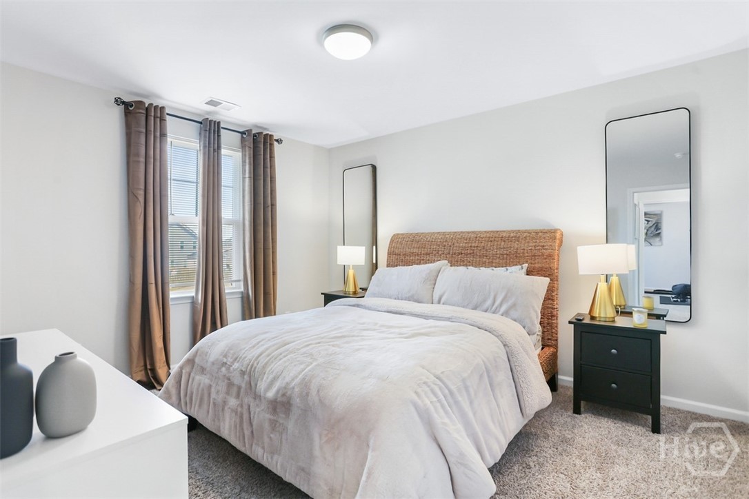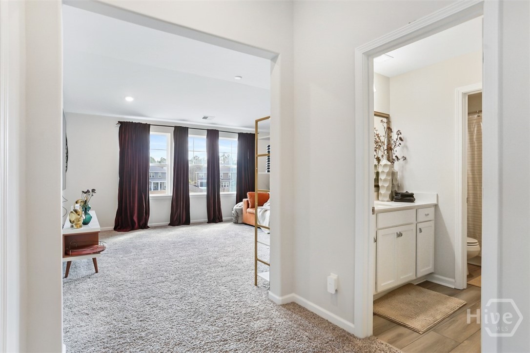 Welcome to 54 Brookhaven Dr. Beautifully maintained by its second owner, this spacious home offers over 4,100 sq ft with 5 bedrooms, 4.5 baths, a great room, media room, and a primary suite with a private sitting area. Located on a quiet street with a lagoon view, the home features a 2-car garage and inviting front porch. Inside, the foyer is flanked by a flex room/office and a large dining room (currently used as a game room). The main level includes a guest bedroom with full bath, a generous great room with fireplace, and a bright kitchen with a large breakfast area and butler’s pantry. The back wall of windows provides abundant natural light and serene views. The gourmet kitchen includes a breakfast bar, double ovens, cooktop with hood, built-in microwave, dishwasher, quartz countertops, and ample storage. The refrigerator currently in the kitchen will be replaced with the builder-upgraded French door refrigerator currently in the garage. Upstairs offers an open landing, media room, and four bedrooms with three full baths. The primary suite includes a sitting area, double vanity, soaking tub, separate shower, and two closets. One secondary bedroom has an ensuite bath; the other two share a full bath. The large backyard overlooks the lagoon and includes a full irrigation system. Community amenities include tennis courts, pool, fitness center, and clubhouse. Convenient to Pooler shopping, restaurants, the airport,Gulfstream and so much more! Come home to 54 Brookhaven Dr.