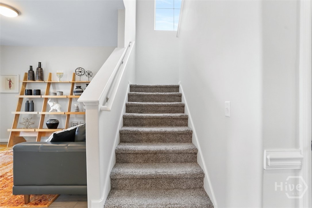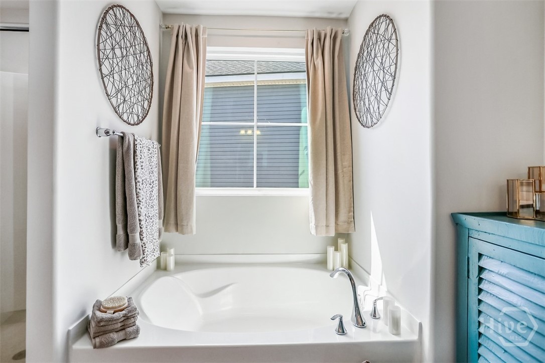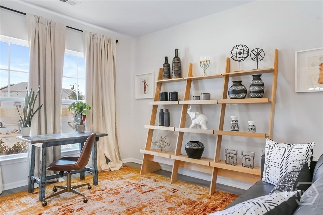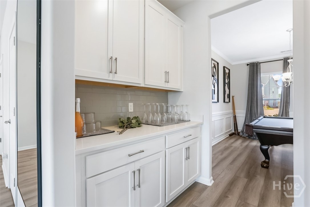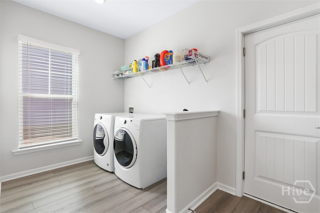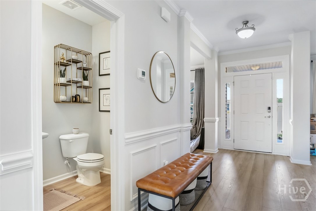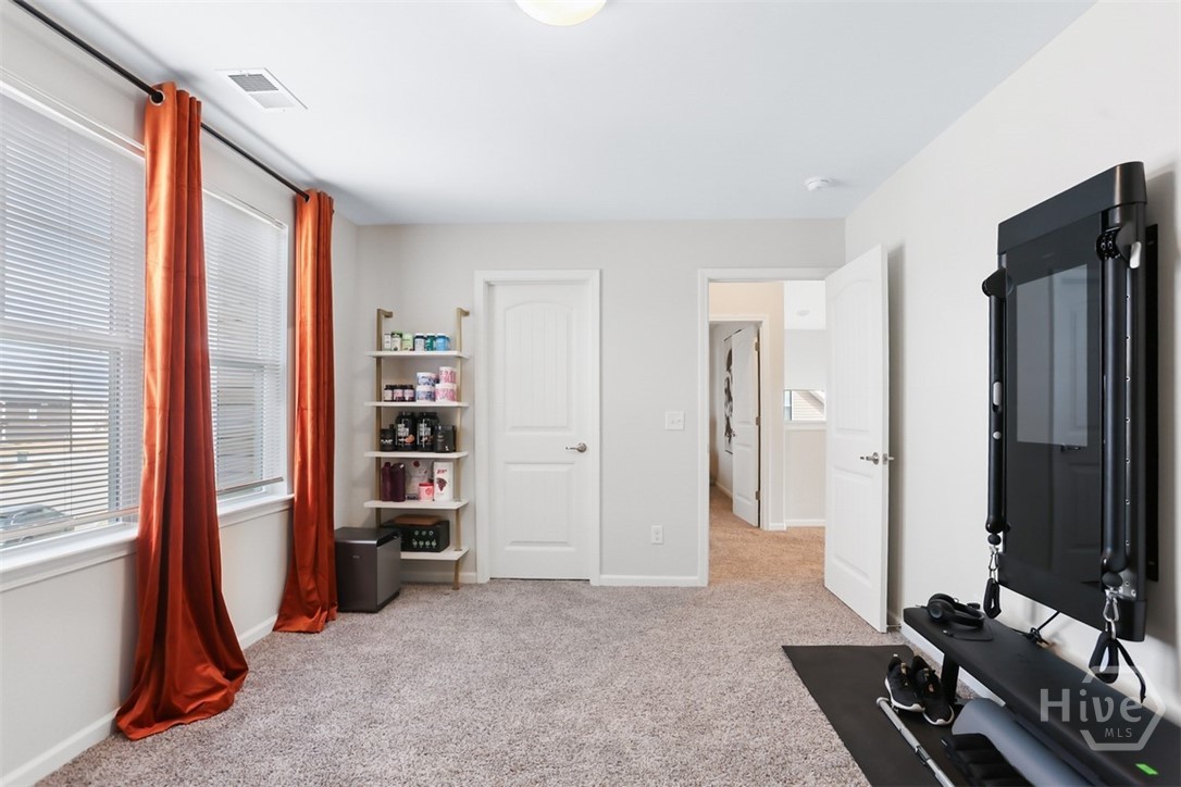 Welcome to 54 Brookhaven Dr. Beautifully maintained by its second owner, this spacious home offers over 4,100 sq ft with 5 bedrooms, 4.5 baths, a great room, media room, and a primary suite with a private sitting area. Located on a quiet street with a lagoon view, the home features a 2-car garage and inviting front porch. Inside, the foyer is flanked by a flex room/office and a large dining room (currently used as a game room). The main level includes a guest bedroom with full bath, a generous great room with fireplace, and a bright kitchen with a large breakfast area and butler’s pantry. The back wall of windows provides abundant natural light and serene views. The gourmet kitchen includes a breakfast bar, double ovens, cooktop with hood, built-in microwave, dishwasher, quartz countertops, and ample storage. The refrigerator currently in the kitchen will be replaced with the builder-upgraded French door refrigerator currently in the garage. Upstairs offers an open landing, media room, and four bedrooms with three full baths. The primary suite includes a sitting area, double vanity, soaking tub, separate shower, and two closets. One secondary bedroom has an ensuite bath; the other two share a full bath. The large backyard overlooks the lagoon and includes a full irrigation system. Community amenities include tennis courts, pool, fitness center, and clubhouse. Convenient to Pooler shopping, restaurants, the airport,Gulfstream and so much more! Come home to 54 Brookhaven Dr.