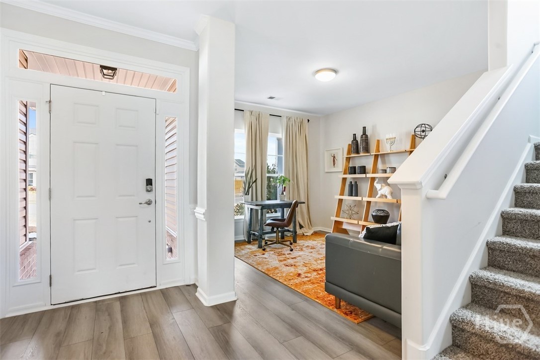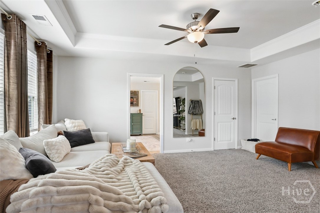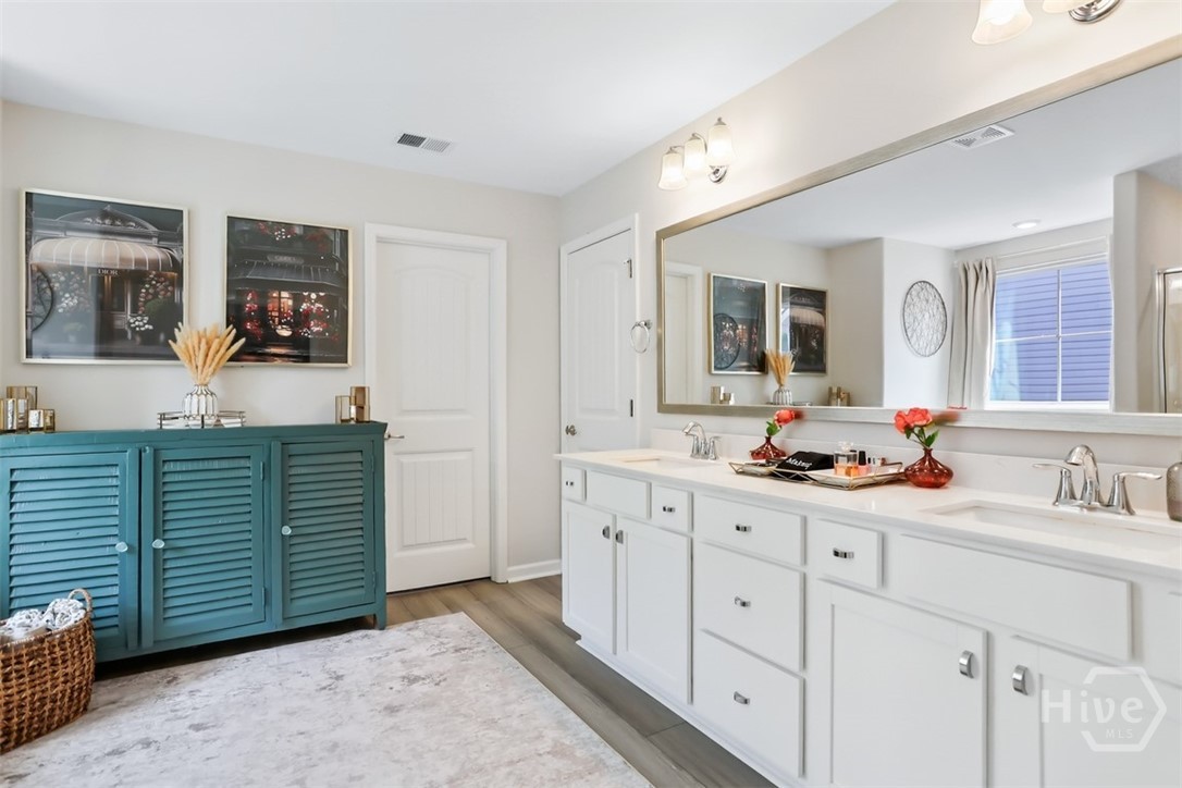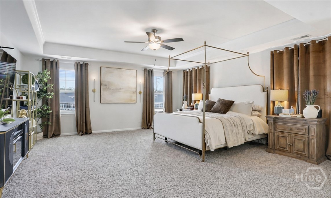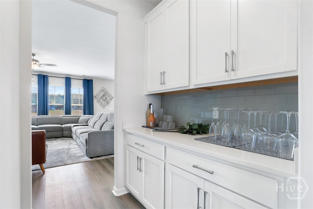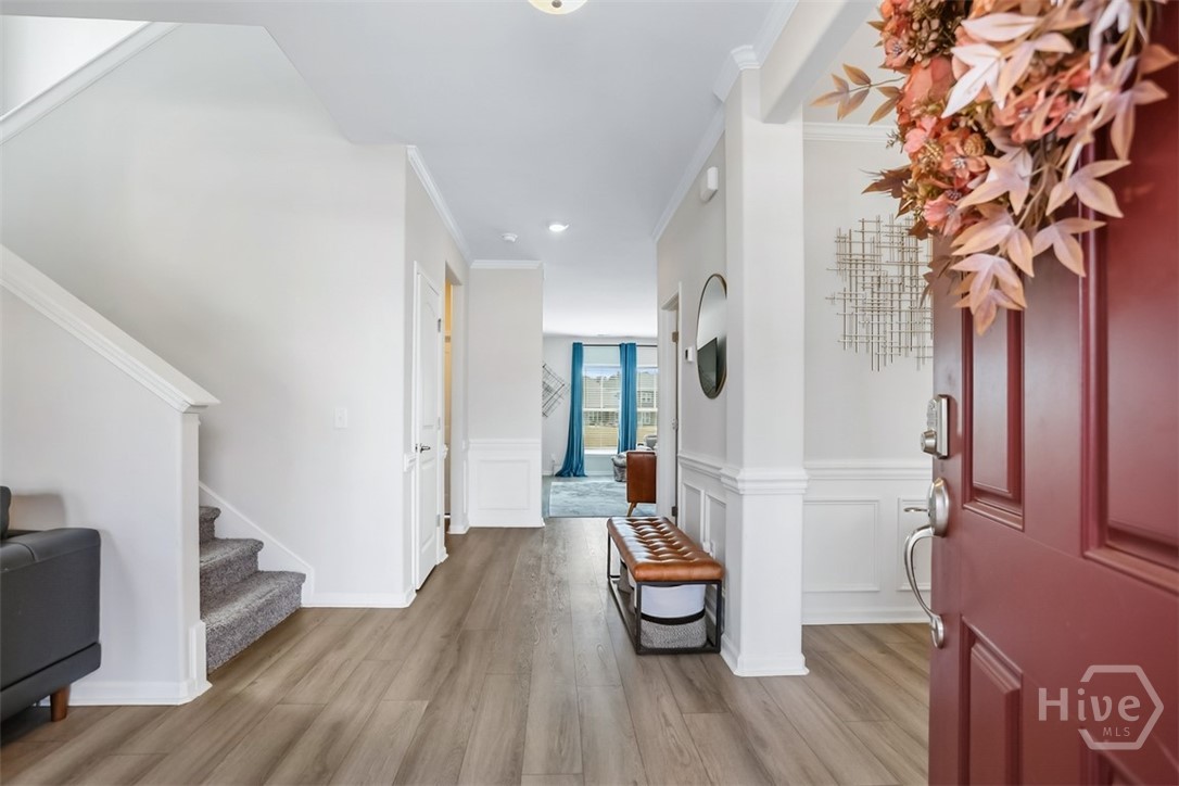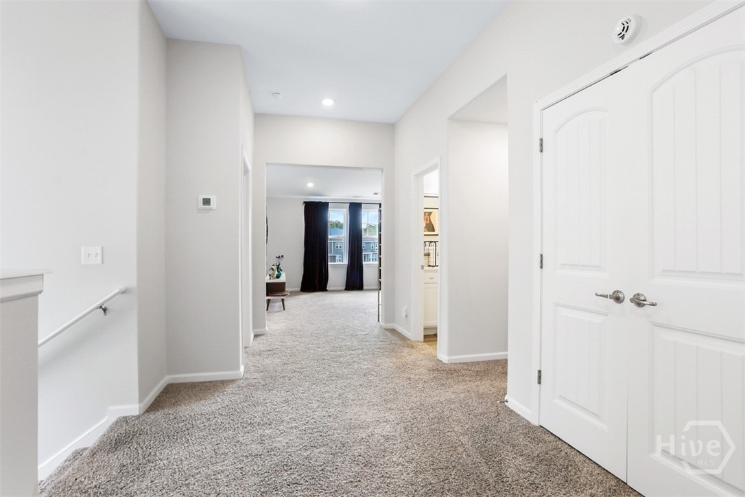 Welcome to 54 Brookhaven Dr. Beautifully maintained by its second owner, this spacious home offers over 4,100 sq ft with 5 bedrooms, 4.5 baths, a great room, media room, and a primary suite with a private sitting area. Located on a quiet street with a lagoon view, the home features a 2-car garage and inviting front porch. Inside, the foyer is flanked by a flex room/office and a large dining room (currently used as a game room). The main level includes a guest bedroom with full bath, a generous great room with fireplace, and a bright kitchen with a large breakfast area and butler’s pantry. The back wall of windows provides abundant natural light and serene views. The gourmet kitchen includes a breakfast bar, double ovens, cooktop with hood, built-in microwave, dishwasher, quartz countertops, and ample storage. The refrigerator currently in the kitchen will be replaced with the builder-upgraded French door refrigerator currently in the garage. Upstairs offers an open landing, media room, and four bedrooms with three full baths. The primary suite includes a sitting area, double vanity, soaking tub, separate shower, and two closets. One secondary bedroom has an ensuite bath; the other two share a full bath. The large backyard overlooks the lagoon and includes a full irrigation system. Community amenities include tennis courts, pool, fitness center, and clubhouse. Convenient to Pooler shopping, restaurants, the airport,Gulfstream and so much more! Come home to 54 Brookhaven Dr.