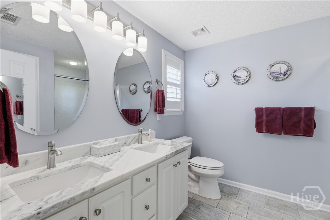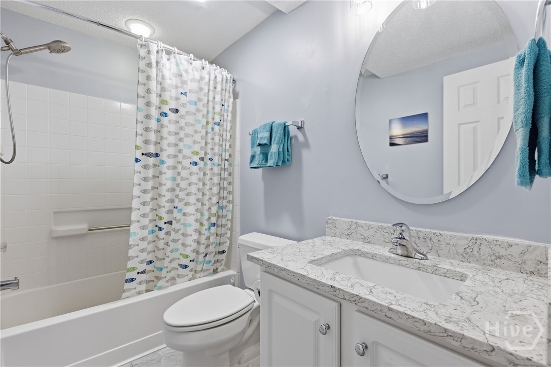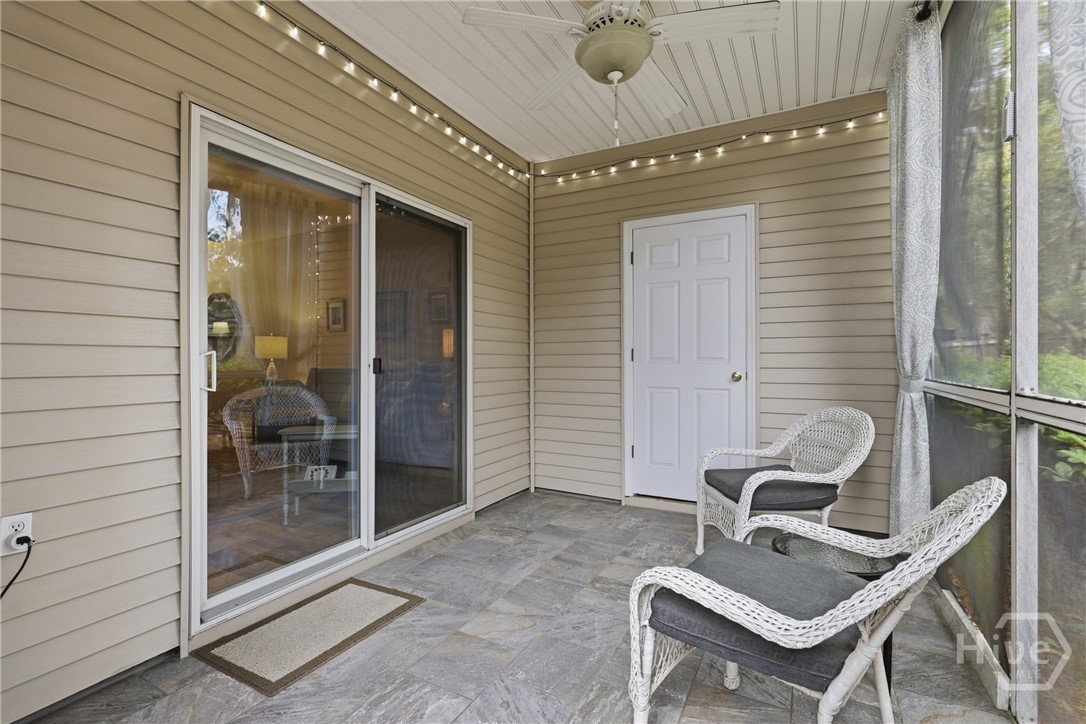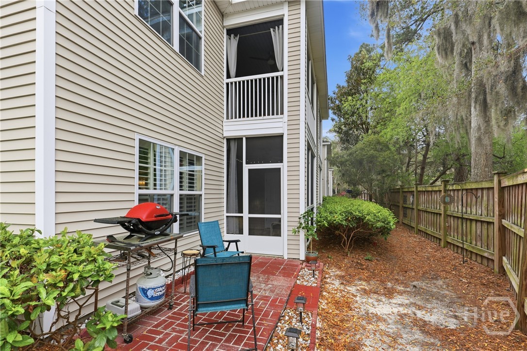 Want comfort, accessibility, and casual living on the island? This well-maintained, ground-level, 3-bedroom, 2-bath, corner unit condo, convenient to Tybee and downtown, fits the bill! Adjacent to the McCorkle biking/walking trail and within walking distance to local restaurants, bars, and the ice cream shop, makes it a prime location. Upgraded kitchen (all stainless appliances with new stove and refrigerator) and baths with ceramic tile floors, quartz countertops, and new fixtures offer a modern look. Stay cool with heat pump a/c and plantation shutters throughout. Six ceiling fans provide added comfort. Split bedroom design and open floor plan. Chilly? Cozy up to the electric log console heater while enjoying a 65” big screen TV in the beautiful, hardwood-floored living area. Patio door opens to a fully tiled, screened porch with a summer breeze ceiling fan. An exterior screened door exits to the lighted, landscaped, grilling patio. Enjoy island living without the hassle of exterior maintenance or lawn care. Owner occupied only, no tenants. HOA dues $250/month.