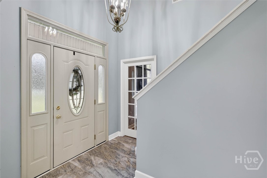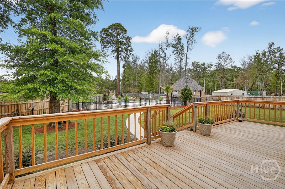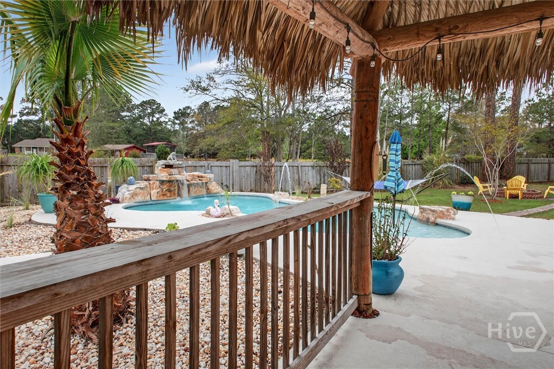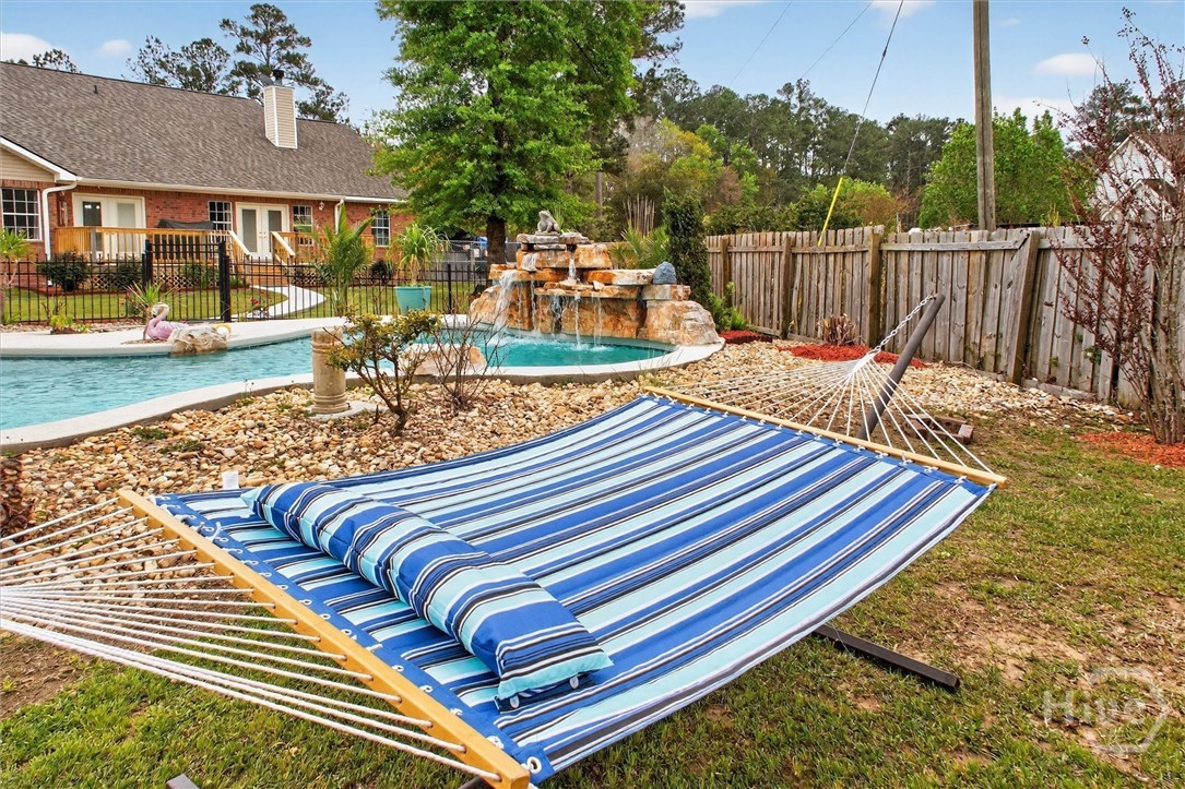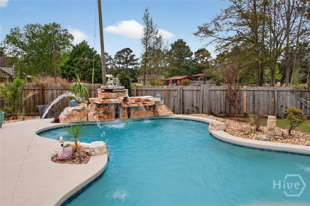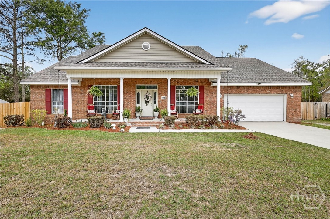 Welcome to this beautifully designed brick 1.5-story home offering the perfect blend of comfort, functionality, and outdoor enjoyment. A wide, welcoming front porch sets the tone as you enter into a thoughtfully designed interior featuring a formal dining room accented with classic wainscoting and crown molding. The spacious living room offers a cozy fireplace and French doors that lead to the back deck, creating a seamless flow for everyday living and entertaining. The kitchen opens to a bright breakfast area, also featuring French doors to the back porch, making it easy to enjoy indoor-outdoor living. The primary bedroom is a relaxing retreat with a tray ceiling, generous walk-in closet, and a private bath complete with dual sinks, a walk-in shower, and a luxurious jetted tub. With five bedrooms and three full baths, this home provides plenty of space for family, guests, or flexible living arrangements. A large bonus room adds even more versatility for a media room, playroom, or home office. Step outside to your own private resort-style backyard featuring a fenced-in pool area designed for fun and relaxation. Enjoy the inground pool with a waterfall, a tiki hut, splash area, and beautifully landscaped surroundings perfect for entertaining or unwinding at the end of the day. A dedicated firepit area creates the ideal gathering spot for evenings outdoors, and dog kennels provide added convenience for pet owners. This property offers the space, features, and lifestyle buyers are looking for—all in one exceptional home.