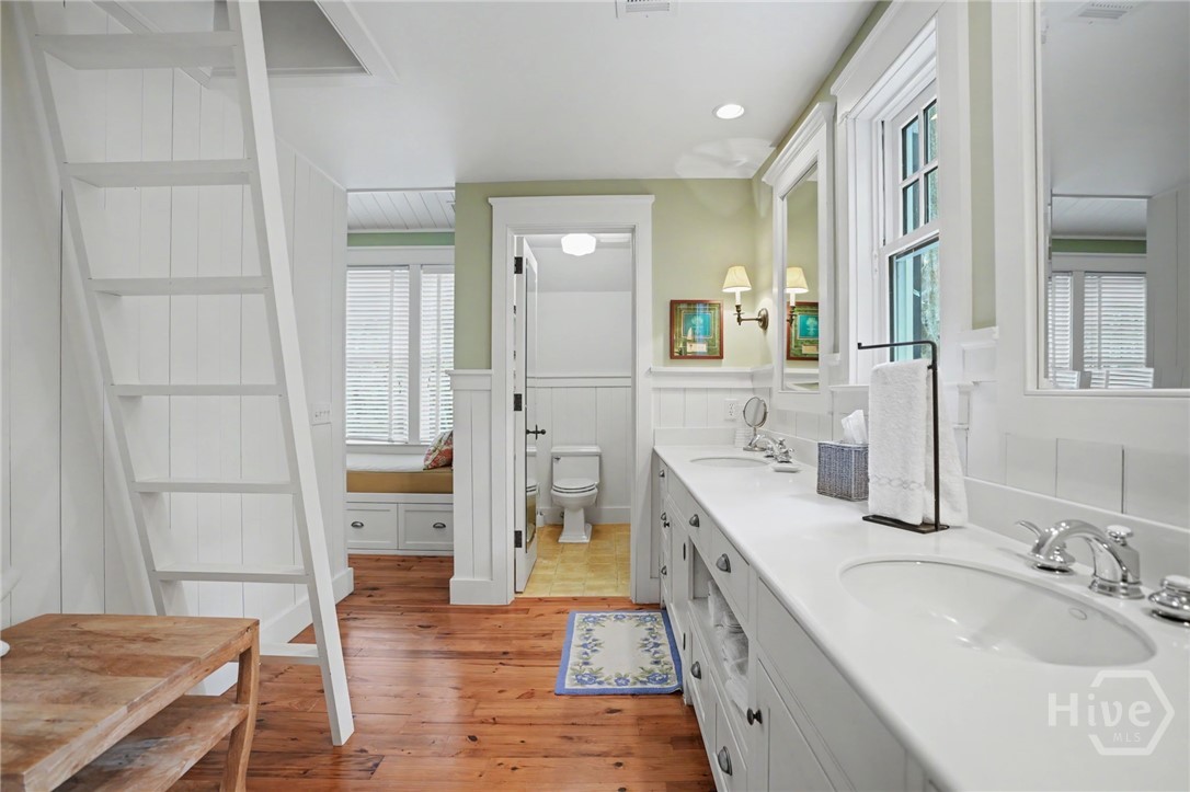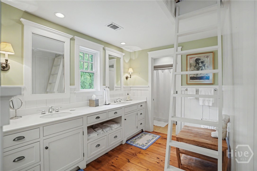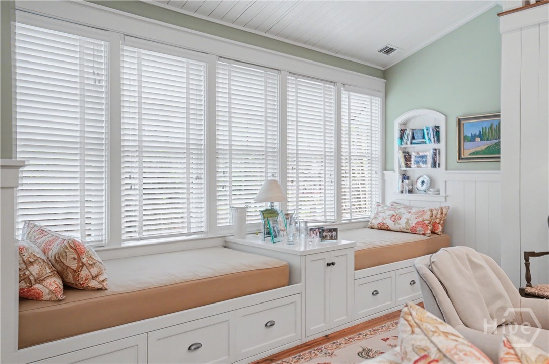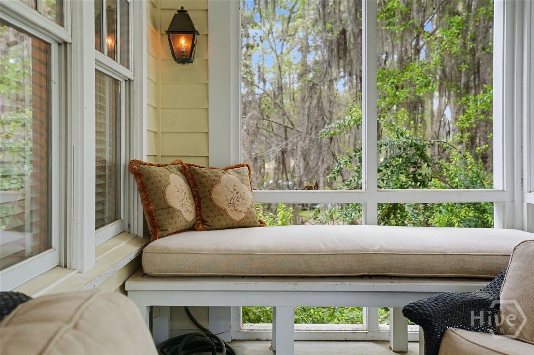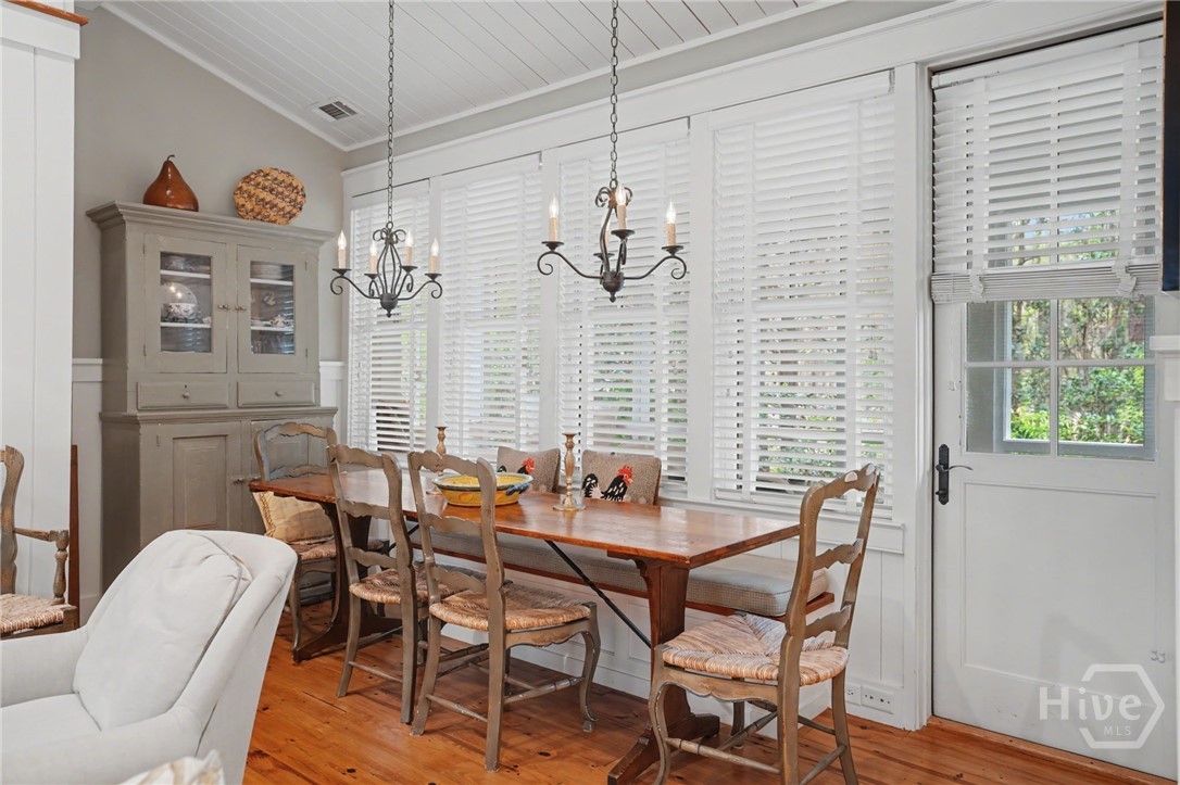 Located within the prestigious Ford Field and River Club, this 2-bedroom, 2-bath cottage sits on over an acre, offering privacy and space with a flexible, open layout. The main living area features a bright living room with a cozy reading nook under the window, flowing seamlessly into the open dining area. The kitchen is fully equipped and provides easy access to the main living spaces. Upstairs, the bedroom opens to a screened porch, creating a peaceful spot to relax. An additional loft-style bedroom space, accessible through the downstairs bathroom, adds versatility for guests, an office, or extra sleeping quarters. Outside, enjoy a back patio along with additional side porch/storage space, ideal for hobbies or extra storage. A 2-car garage completes the property, making this home a great blend of comfort, functionality, and room to spread out. As part of Ford Field & River Club, residents enjoy access to a premier private community known for its natural beauty, golf, and upscale amenities.