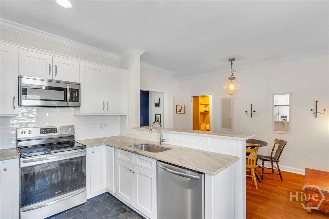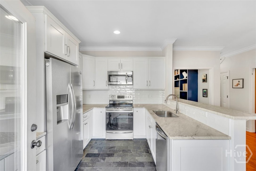 Charming 3-bedroom, 2.5-bath residence located in the highly sought-after Thomas Square Historic Streetcar District. This thoughtfully designed home features hardwood flooring throughout the main level, complemented by custom built-ins, a cozy fireplace, a dedicated laundry room, and a stylish powder room. The kitchen is beautifully appointed with stainless steel appliances, Carrera marble countertops, a breakfast bar, slate flooring, and a sunny eat-in area—perfect for both everyday living and entertaining. Upstairs, the spacious primary suite offers a private porch overlooking picturesque, tree-lined 33rd Street, along with a walk-in closet and a well-appointed bath featuring a frameless glass shower door, ceramic tile, and marble vanity. Two additional bedrooms each enjoy access to their own porch overlooking the private fenced backyard. A shared second bath includes a Carrera marble double vanity. New carpeting has been installed throughout the second floor, enhancing comfort and style. Ideally situated within walking distance to local shops, restaurants, and galleries, this home offers the perfect blend of historic charm and modern convenience.