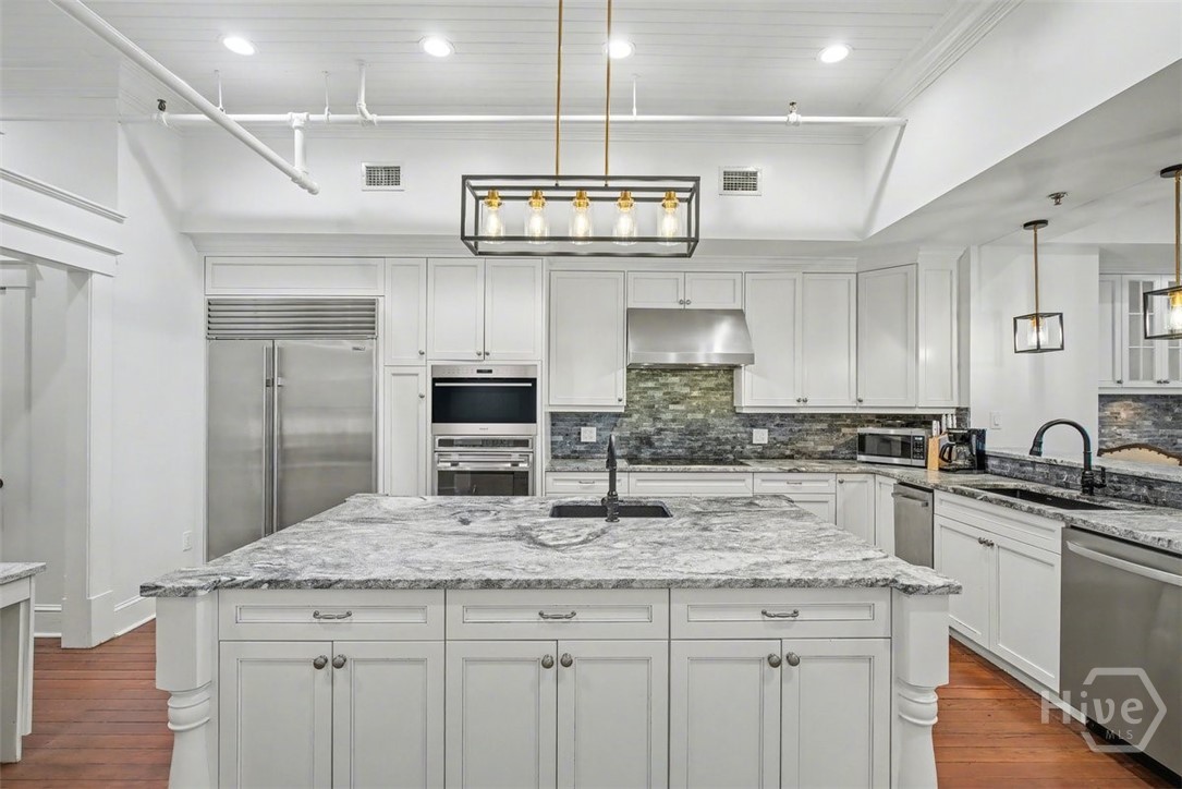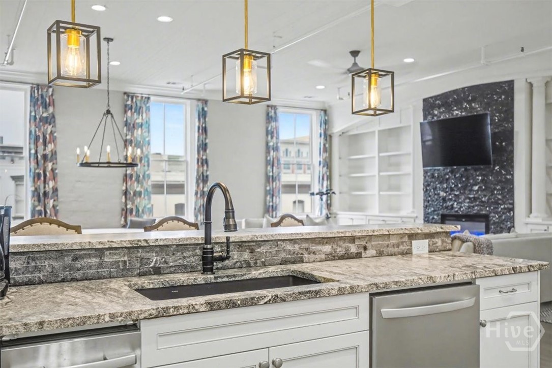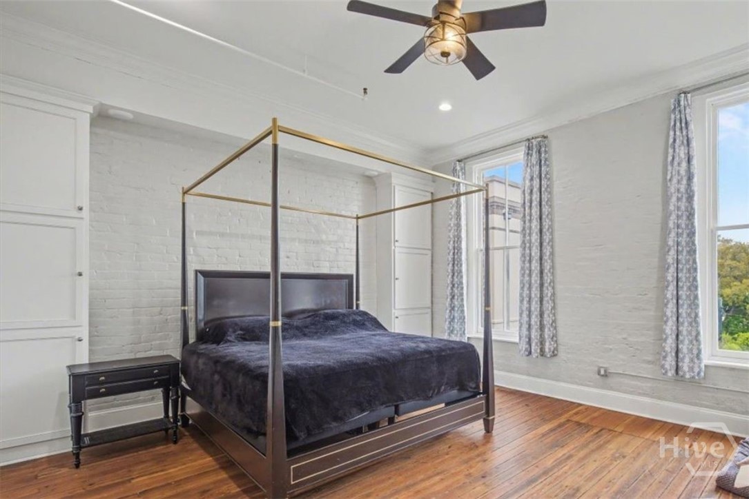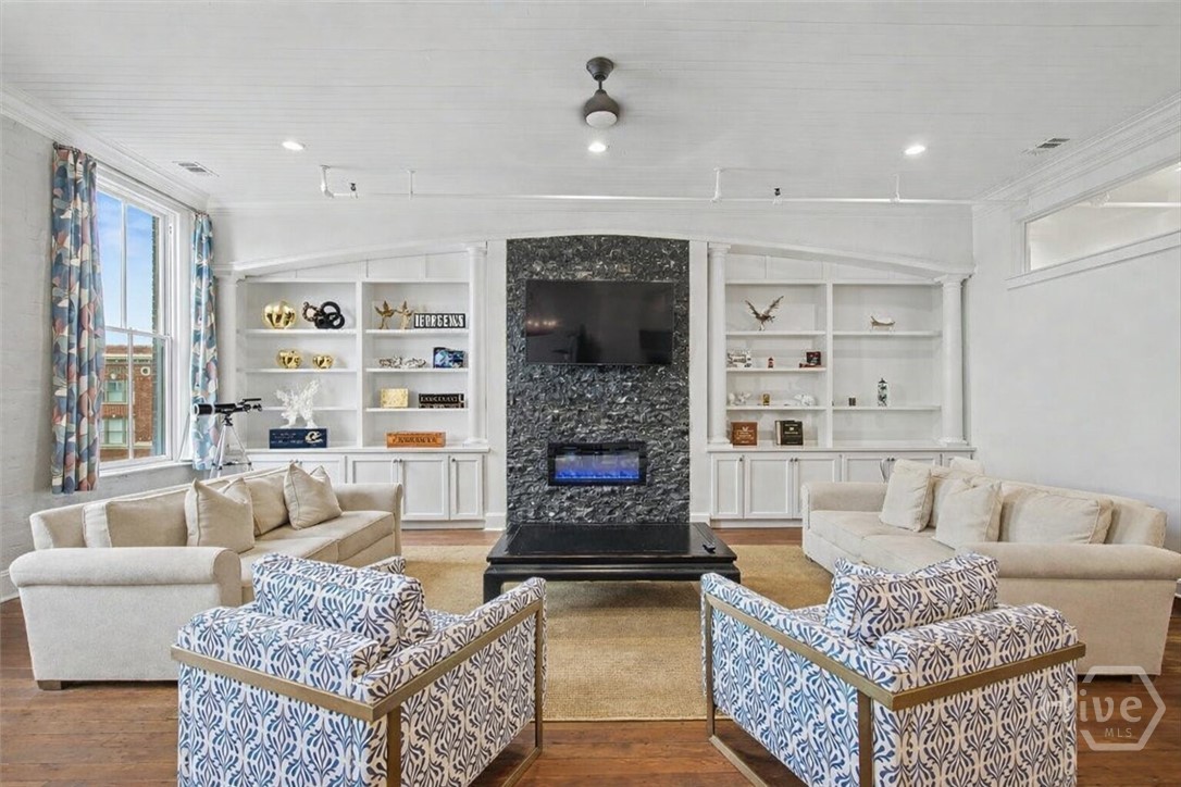 Unique penthouse in the heart of Savannah's Landmark Historic District. Only steps from favorite eateries, shops, live music, city market and plant riverside... is the heartbeat of the city, its people and its culture. From the moment you enter, its high ceilings, light filled rooms, original hardwood floors, exposed brick and open floor plan set the stage for an urban oasis. New gourmet kitchen is a gathering place for family and friends with floor to ceiling cabinetry, top of the line appliances, large island, bar seating, pantry and butler's pantry. Open to its cozy living room with fireplace & custom cabinetry, you have a birds eye view of Broughton Street with the anonymity of the entire third floor. The primary suite boasts city views facing south, room for a sitting area/ office & new primary bath with large walk-in shower, freestanding clawfoot tub and double vanities. A second bed with renovated bath is perfect for guests. Adding to its character and charm is exclusive access to freight elevator, original to the "Weed" building. Another unique feature is its penthouse/ solarium lounge with hot tub and rooftop deck for countless hours of fun and entertainment below the stars. Nearby parking garages offer off-street options for anyone needing dedicated parking.