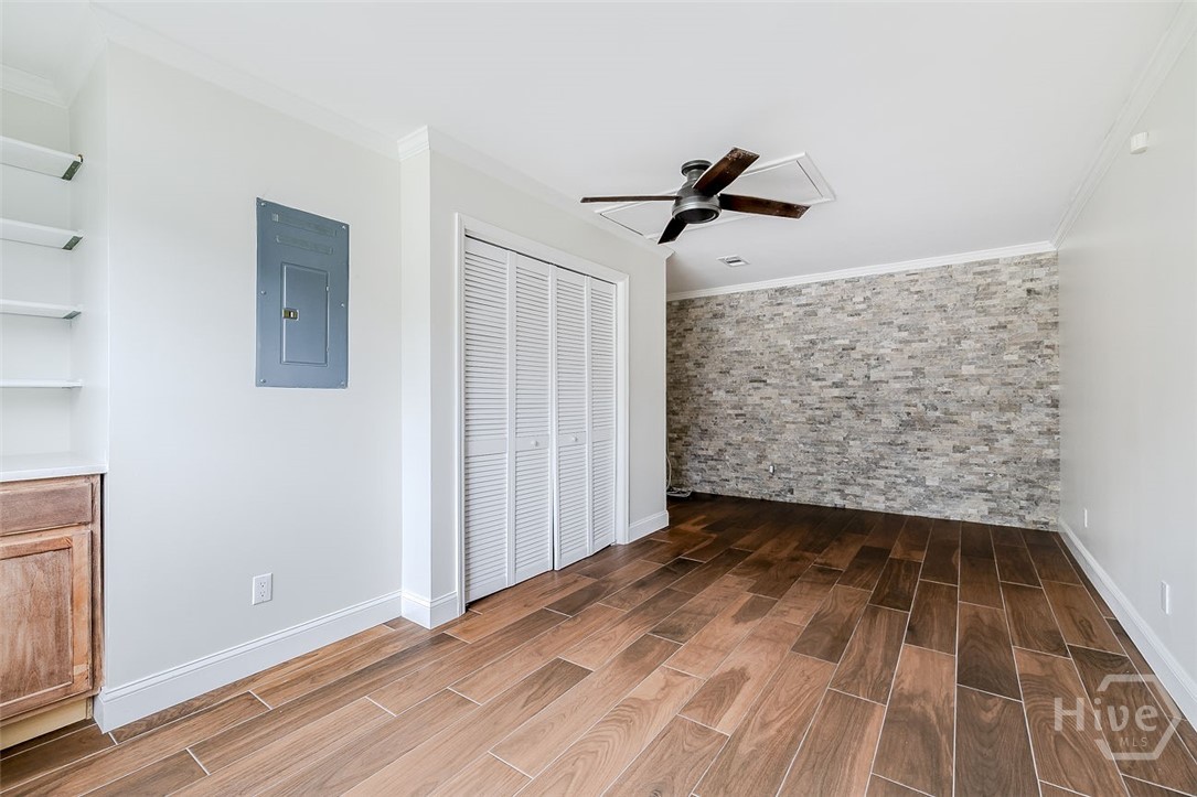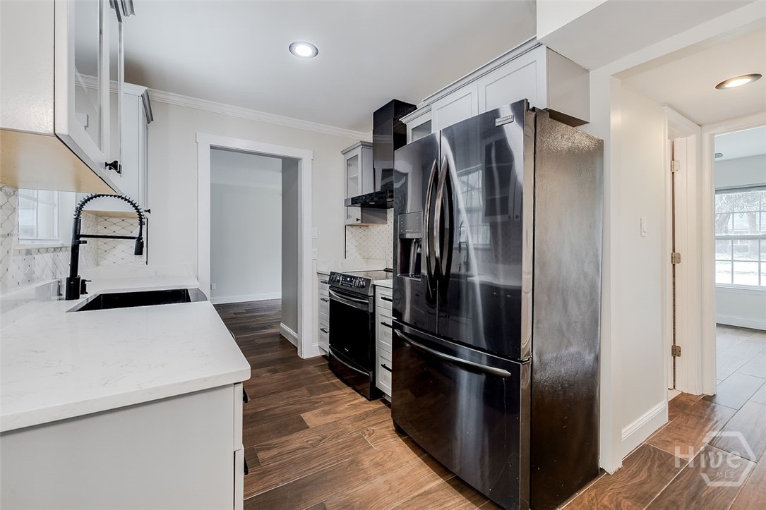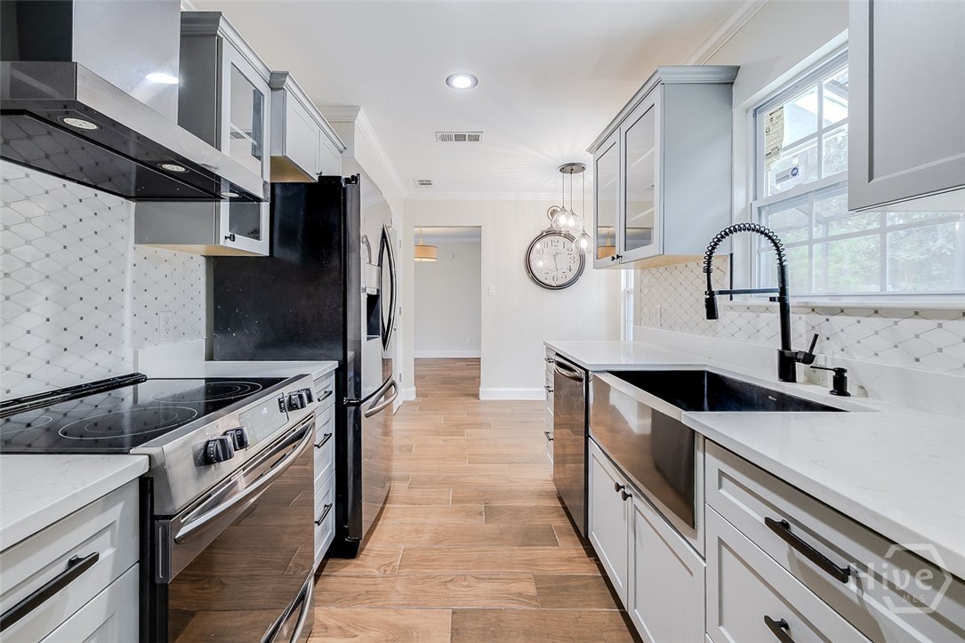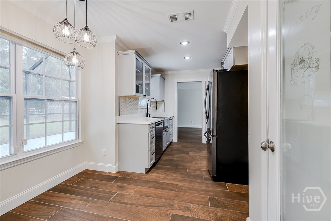 Charming Freshly Painted and Move In Ready! This 3-bedroom, 2-bath home features a desirable layout with the primary bedroom conveniently located on the main level. The home offers a spacious family and dining room combination, perfect for both everyday living and entertaining. The updated kitchen is equipped with sleek black appliances, an eat-in area, and ample cabinet space. The inviting family room showcases a beautiful brick accent wall, adding warmth and character to the space. Step outside to enjoy the screened patio—ideal for relaxing or hosting gatherings year-round. Conveniently located near Savannah State University and just minutes from Historic Downtown Savannah as well as the beaches of Tybee Island, this home offers both comfort and accessibility. Don’t miss this opportunity to own a home in a prime location!