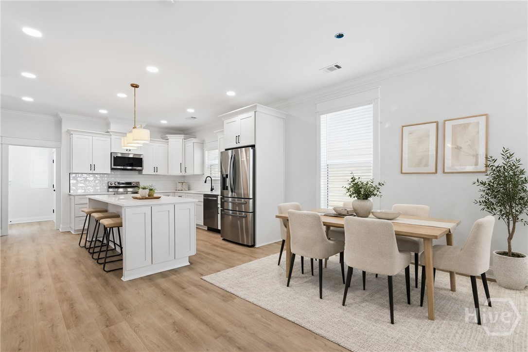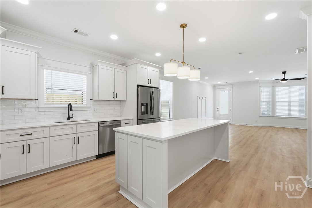 New construction 2-story Lowcountry style home in the heart of Savannah! This 3BR/2.5BA, 2000 SF home features covered porches on both floors, a covered back patio, privacy-fenced yard & professional landscaping. Inside, enjoy an open floor plan with quartz counters, wood cabinets, spray foam insulation, & stylish finishes throughout. The spacious kitchen opens to the living & dining area, perfect for entertaining. Upstairs offers a beautiful primary suite with access to the upper porch, plus two additional bedrooms & a full laundry room downstairs. The home combines classic Southern charm with modern efficiency. Conveniently located near Downtown, Midtown, the Islands & Southside—offering quick access to shopping, dining & everything Savannah has to offer. Move-in ready & built for comfort, efficiency & style. 1209 E 34th St delivers quality new construction in a prime central location.