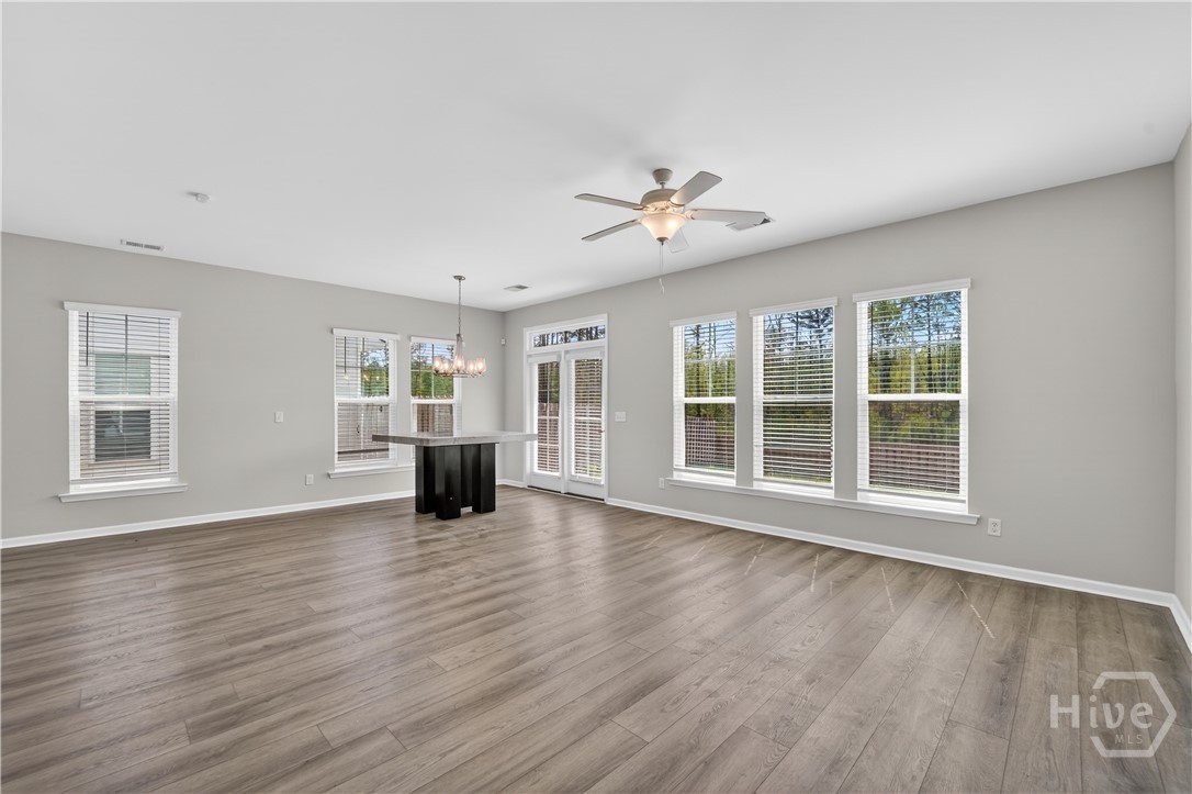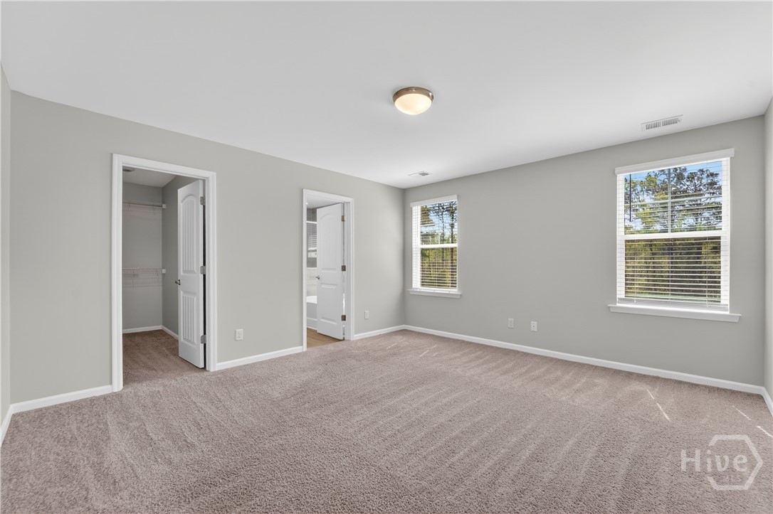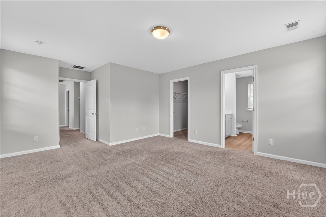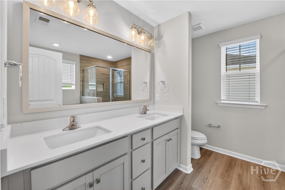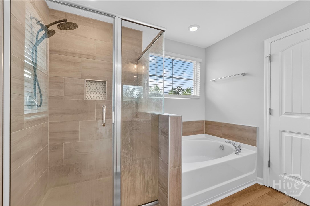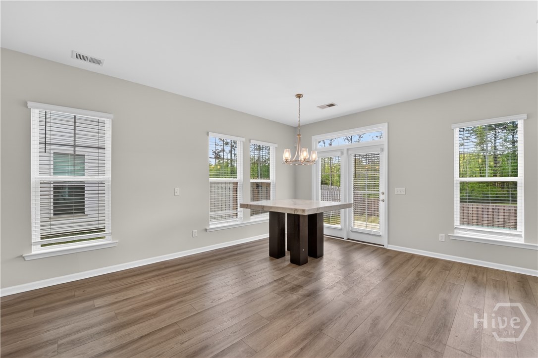 This beautifully designed 4-bedroom, 2.5-bath home offers a bright, open layout filled with natural light and thoughtful upgrades throughout. Freshly painted throughout, the main level features durable vinyl flooring, creating a seamless and inviting space for both everyday living and entertaining. The kitchen is a standout with stylish gray cabinetry, quartz countertops, a single-bowl sink, tiled backsplash, and stainless steel appliances. Upstairs, all four bedrooms provide comfort and privacy, along with two full bathrooms and generous closet space. The spacious primary suite includes a well-appointed bath with a separate tiled shower and soaking tub, plus a dual-sink quartz vanity. Enjoy outdoor living in the fully sodded yard with an irrigation system already in place. Conveniently located near Ft. Stewart and Hunter Army Airfield, this home offers easy access to work, shopping, and dining while maintaining a comfortable residential setting.