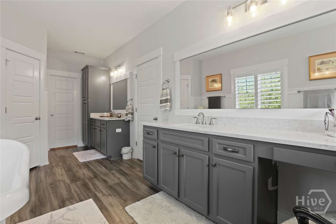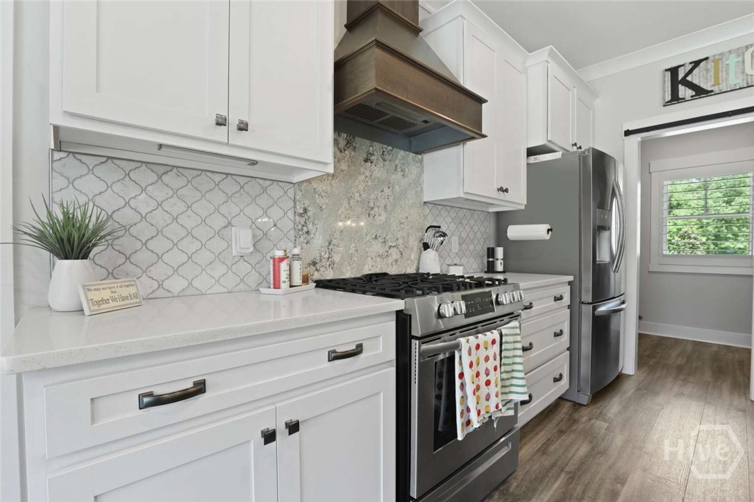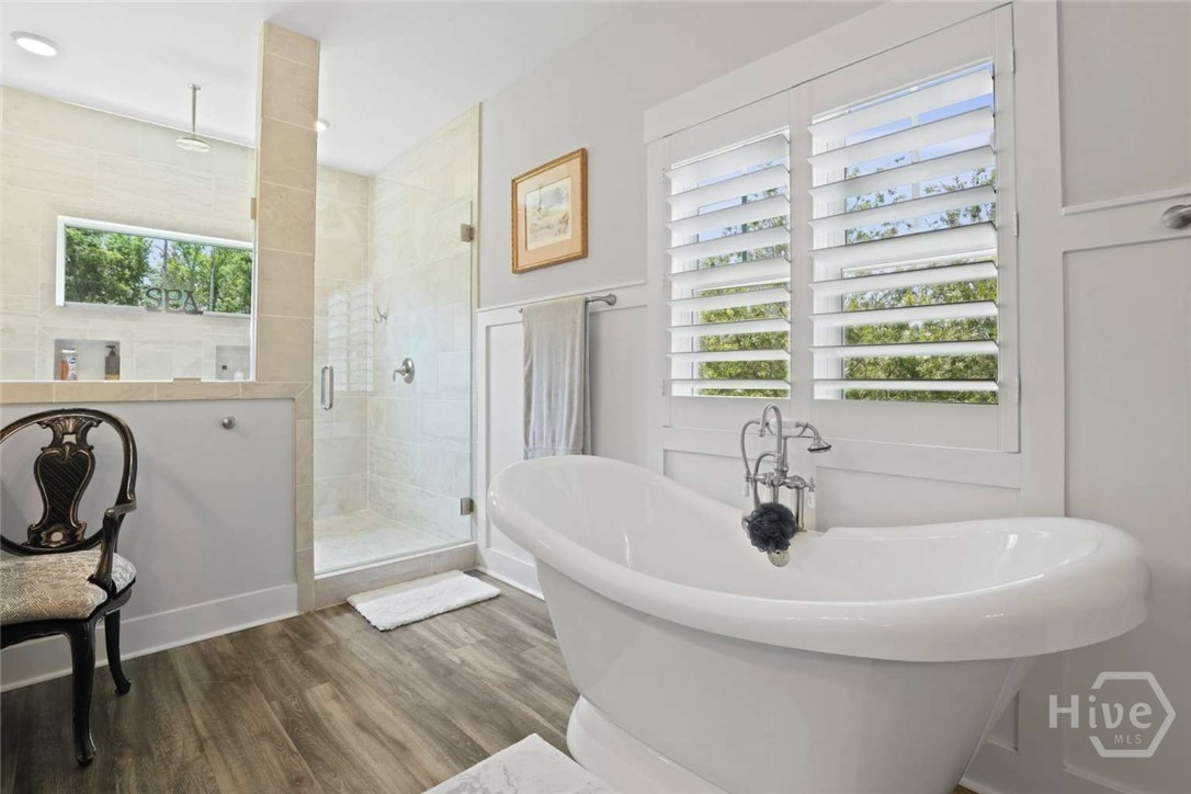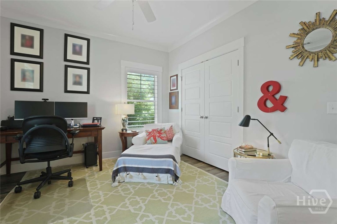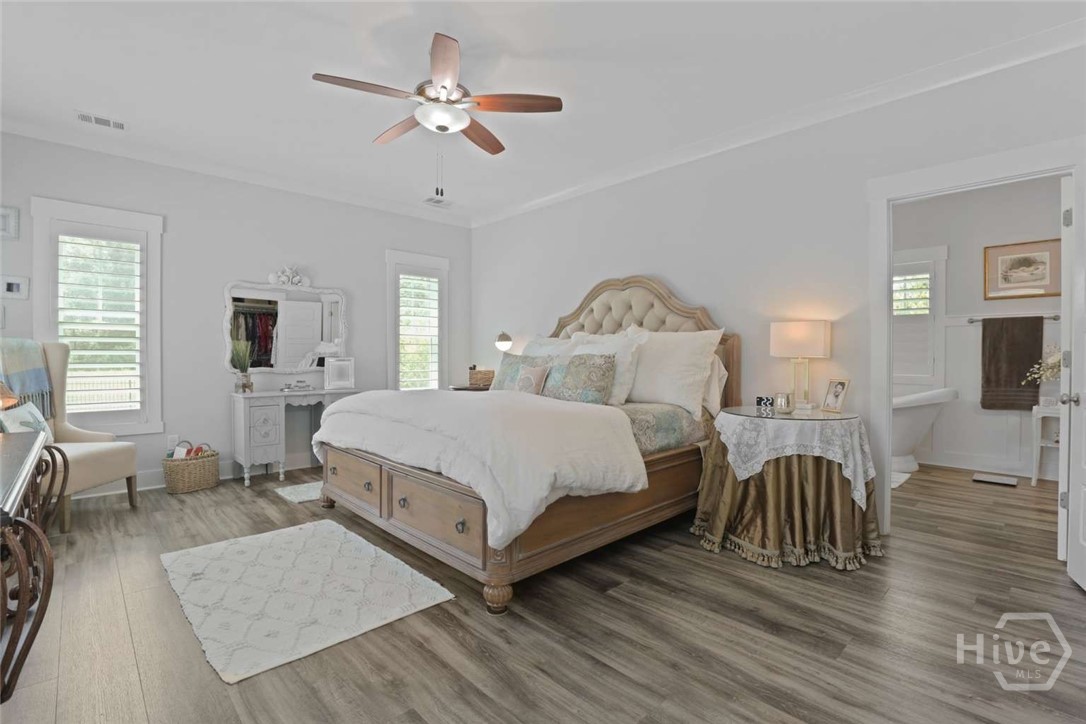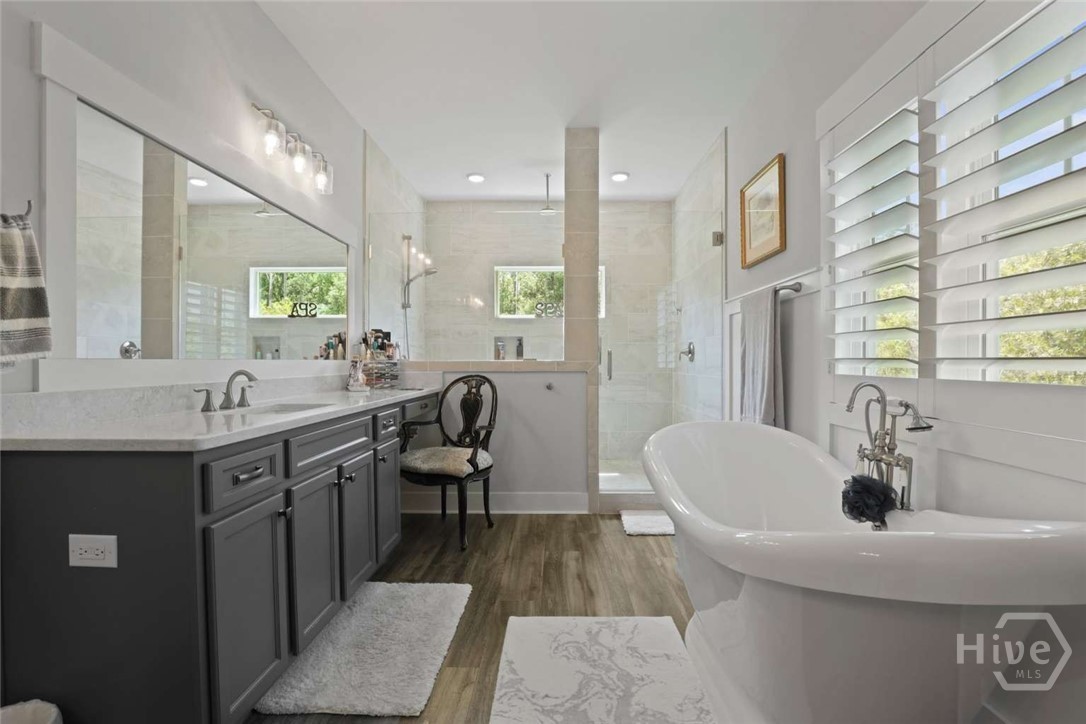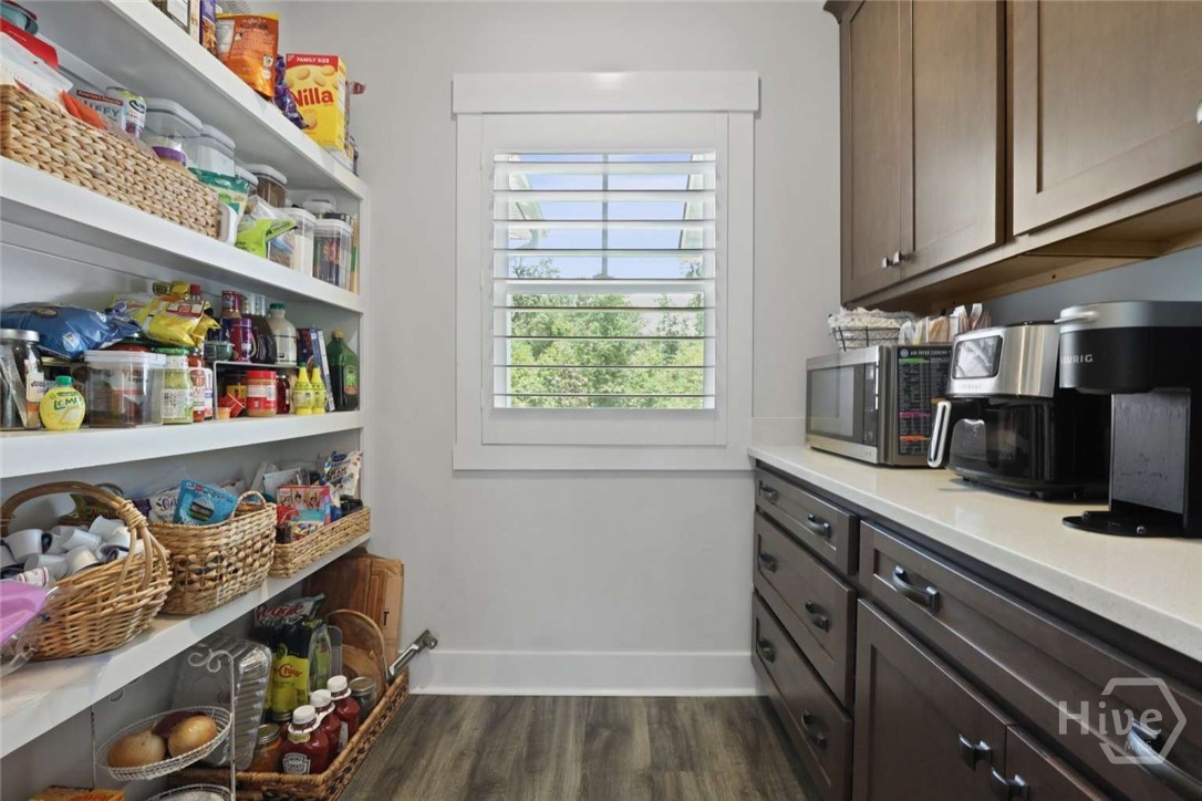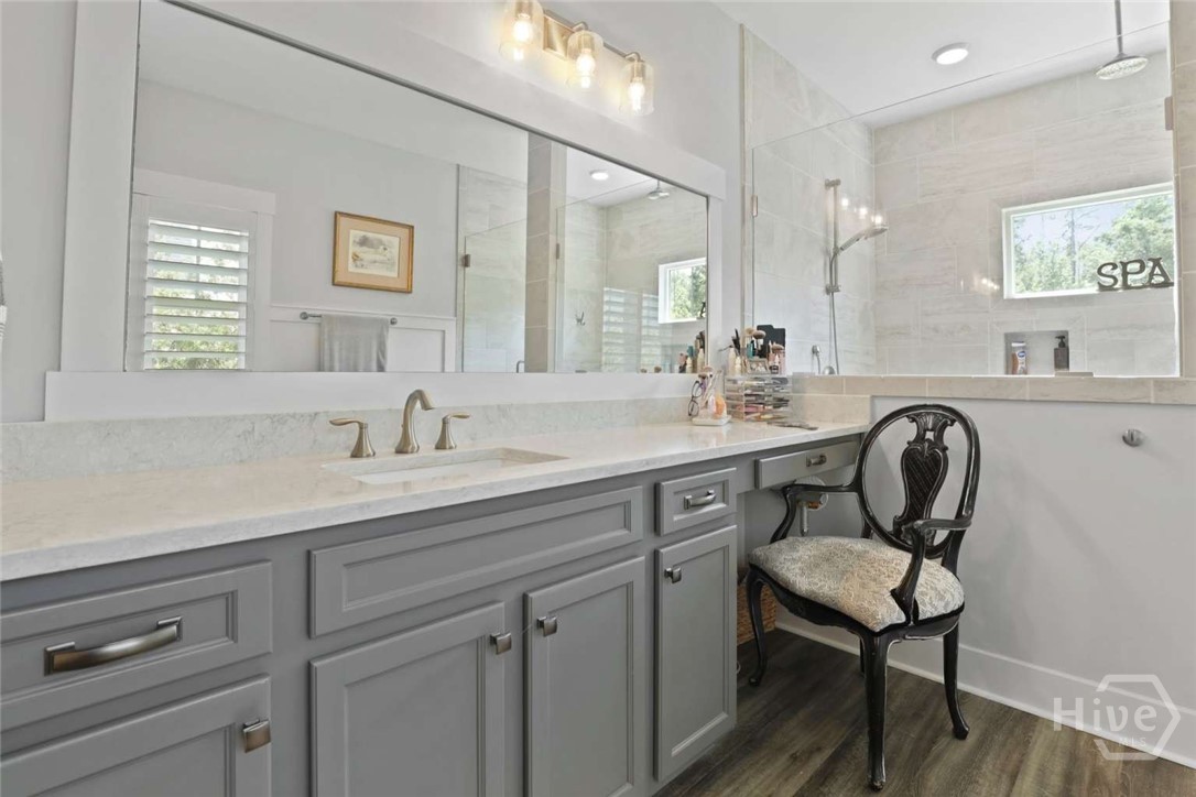 Welcome to this stunning 3-bedroom, 2.5-bath custom-built coastal cottage home located in a highly desirable gated community in the heart of Richmond Hill, GA, minutes from I-95, US-17 and a short drive to Savannah. Built in 2019, this luxury custom home blends timeless coastal design with high-end finishes and thoughtful craftsmanship throughout. Step into an open-concept living space designed for both comfort and entertaining, featuring an abundance of natural light, extensive custom woodwork, and a show-stopping coffered ceiling in the main living area. The home is elevated by custom moldings, wainscoting, and built-in cabinetry, creating a refined yet relaxed coastal aesthetic. The gourmet kitchen flows seamlessly into the Living and dining areas and is complemented by a custom walk-in pantry/butler’s pantry. Split floor plan, large primary bedroom, walk in shower and stand alone tub, Tankless Water Heater, Huge screened Lanai, Lg paver patio, Custom 4.5 " shutters throughout.