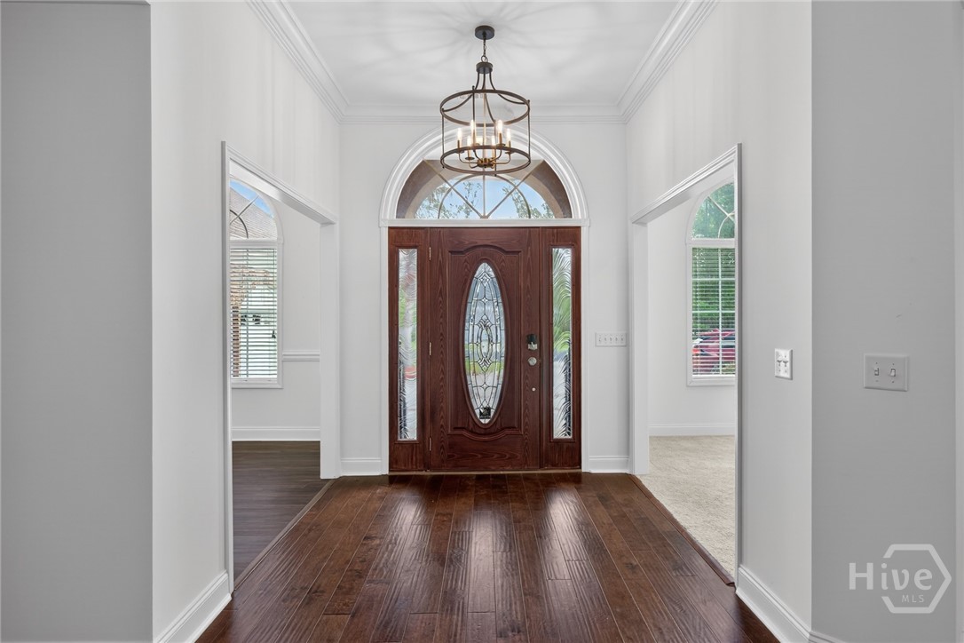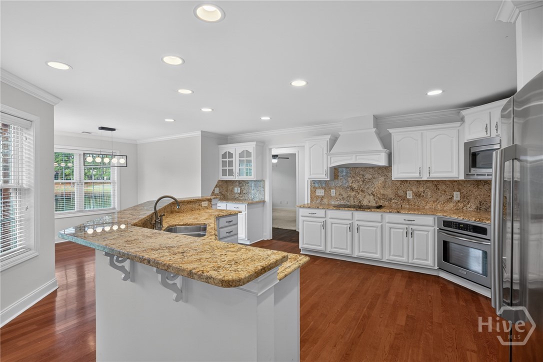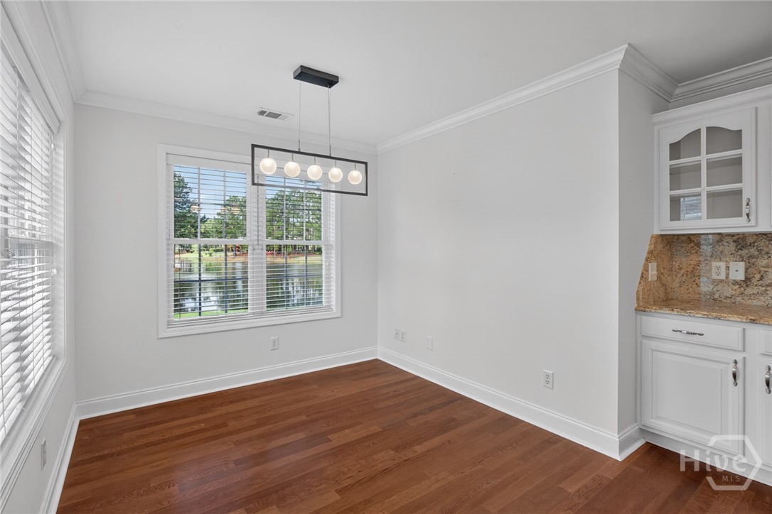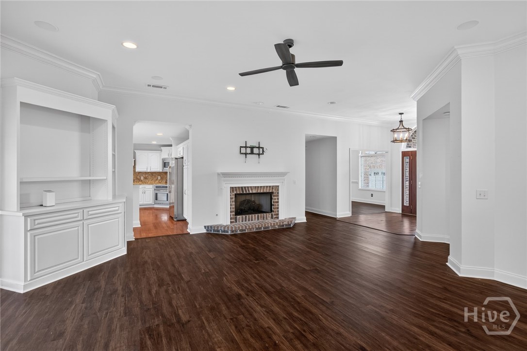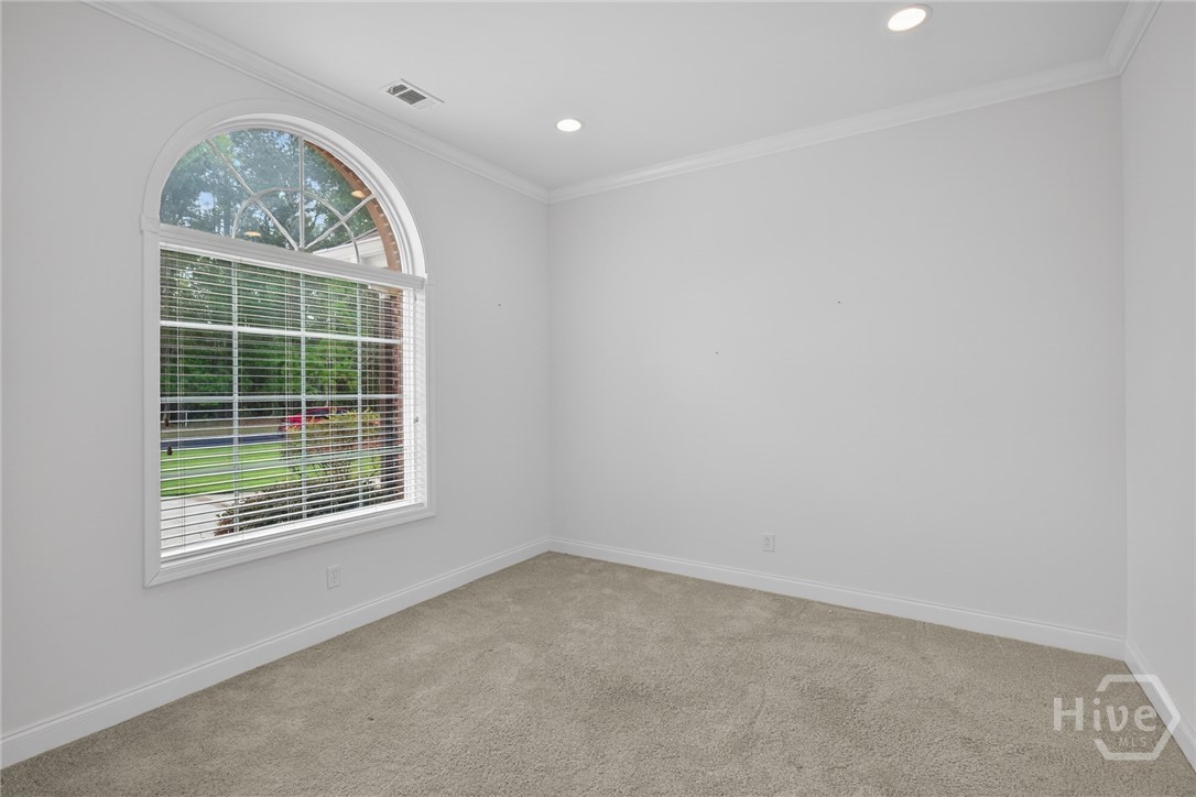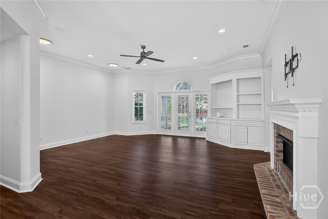 Located in the gated Enclave at Berwick Plantation, this beautifully designed 5-bedroom, 4.5-bath home offers over 4,500 square feet of comfortable, well-planned living space with peaceful lagoon views. The layout features a split-bedroom floor plan that gives everyone their own space, while still bringing people together in the heart of the home. The kitchen is built for both everyday living and entertaining, complete with granite countertops, stainless appliances, a breakfast bar, and a walk-in pantry. It opens seamlessly into the main living area, where custom built-ins and a gas fireplace create a warm, inviting feel. Natural light pours into the all-glass sunroom, offering a front-row seat to the lagoon and a perfect spot to unwind. You’ll also find a formal dining room and a dedicated office or flex space, giving you options depending on how you live. The primary suite is tucked away for privacy and feels like its own retreat, featuring double vanities, a whirlpool tub, separate shower, and an oversized walk-in closet. Upstairs, an additional bedroom and full bath provide flexibility for guests or a private getaway. Set on a generously sized, professionally landscaped lot, the home also includes a 3-car garage and sprinkler system. Residents of The Enclave enjoy access to community amenities like a pool, fitness center, tennis courts, and clubhouse, all just minutes from shopping, dining, and downtown Savannah. This one checks the boxes and then some.