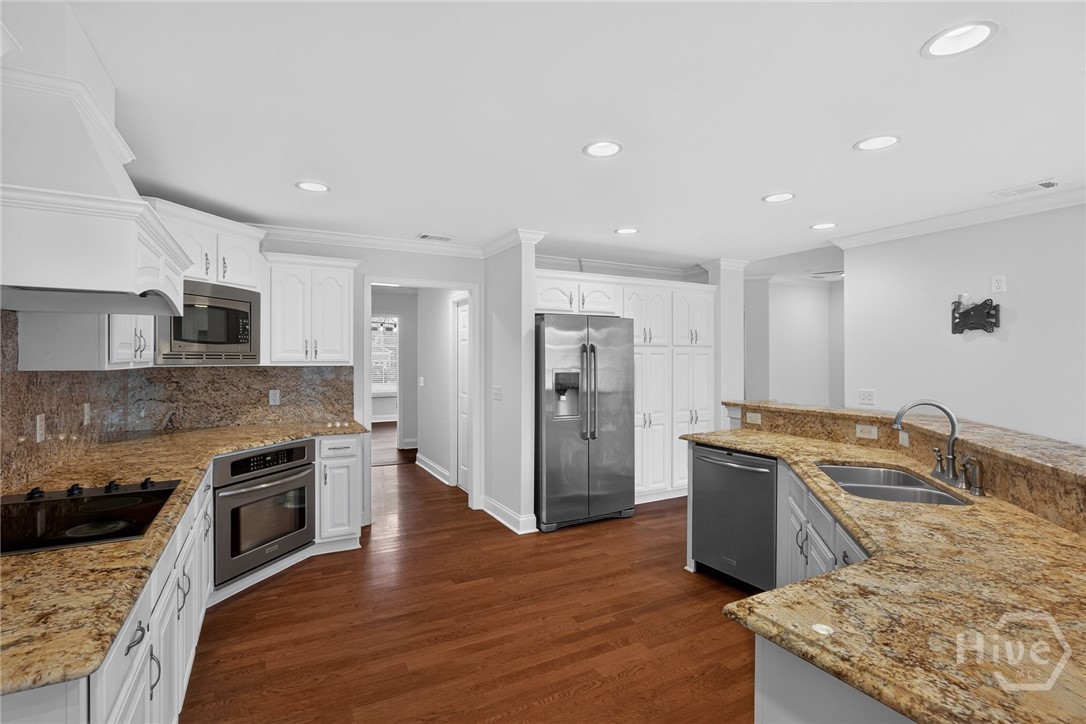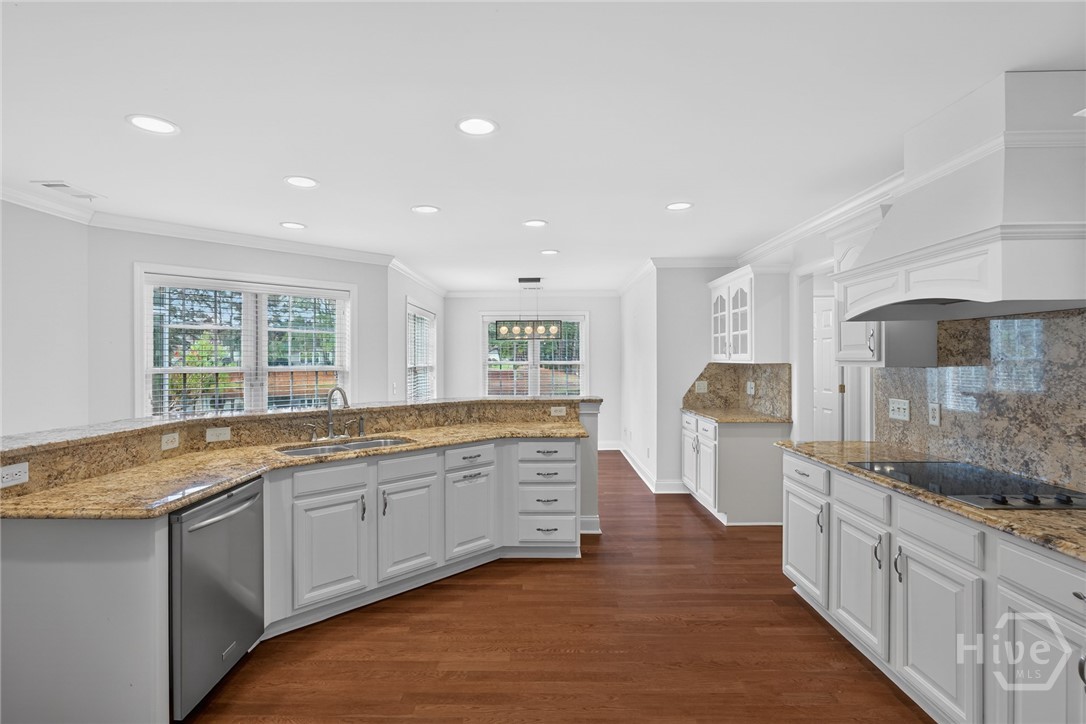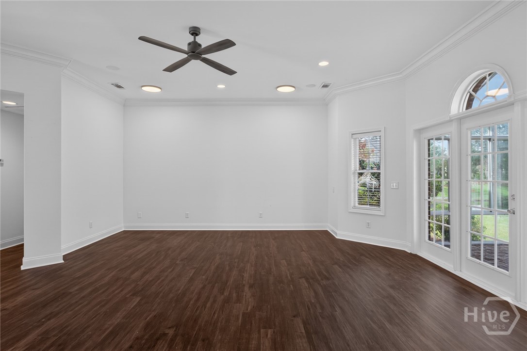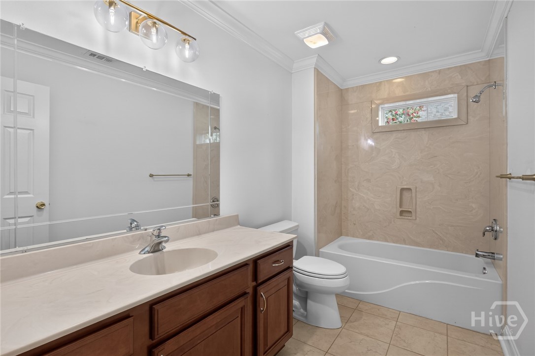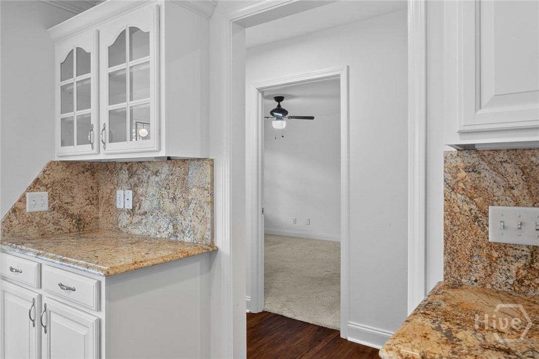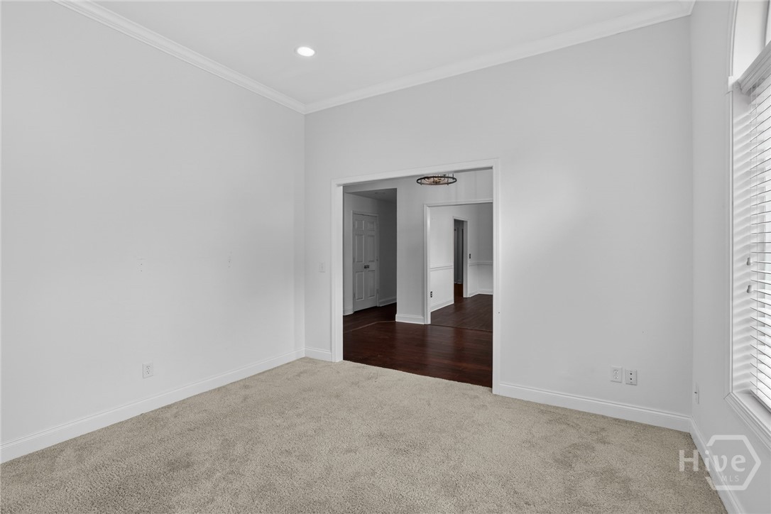 Located in the gated Enclave at Berwick Plantation, this beautifully designed 5-bedroom, 4.5-bath home offers over 4,500 square feet of comfortable, well-planned living space with peaceful lagoon views. The layout features a split-bedroom floor plan that gives everyone their own space, while still bringing people together in the heart of the home. The kitchen is built for both everyday living and entertaining, complete with granite countertops, stainless appliances, a breakfast bar, and a walk-in pantry. It opens seamlessly into the main living area, where custom built-ins and a gas fireplace create a warm, inviting feel. Natural light pours into the all-glass sunroom, offering a front-row seat to the lagoon and a perfect spot to unwind. You’ll also find a formal dining room and a dedicated office or flex space, giving you options depending on how you live. The primary suite is tucked away for privacy and feels like its own retreat, featuring double vanities, a whirlpool tub, separate shower, and an oversized walk-in closet. Upstairs, an additional bedroom and full bath provide flexibility for guests or a private getaway. Set on a generously sized, professionally landscaped lot, the home also includes a 3-car garage and sprinkler system. Residents of The Enclave enjoy access to community amenities like a pool, fitness center, tennis courts, and clubhouse, all just minutes from shopping, dining, and downtown Savannah. This one checks the boxes and then some.