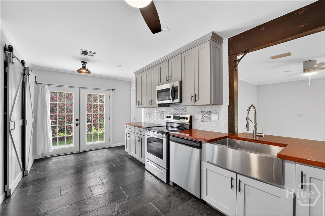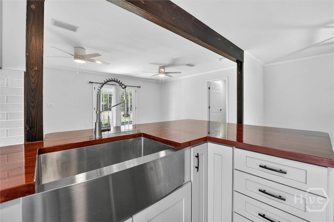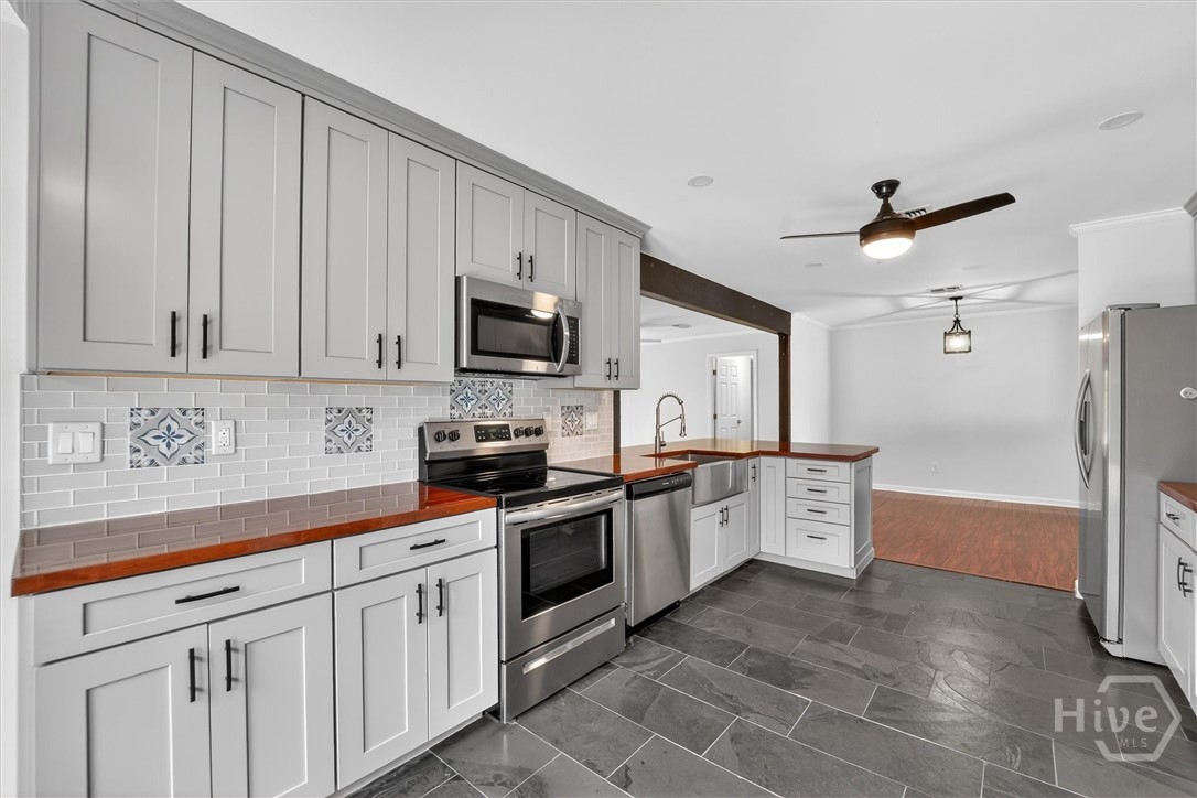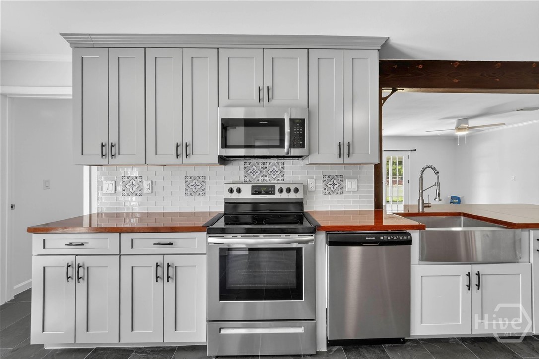 Better than new in an established neighborhood! The seller didn’t miss a detail when renovating this home—originally planning it to be their forever home, every improvement reflects quality craftsmanship and thoughtful design. You’ll find upgrades not typically seen at this price point, including a tankless hot water system, new ductwork, water purification system, durable wood laminate flooring, and even consistent keying throughout—just to name a few. The kitchen stands out with real cherry wood countertops, slate flooring, soft-close cabinetry, and flush-mount LED lighting, creating a clean and efficient space for everyday living. Outside, enjoy a spacious, fully fenced backyard—perfect for entertaining, pets, or relaxing outdoors. Conveniently located just a short drive to the Georgia Ports and downtown Savannah, offering easy access to work, dining, and entertainment. Priced to sell—schedule your showing today!