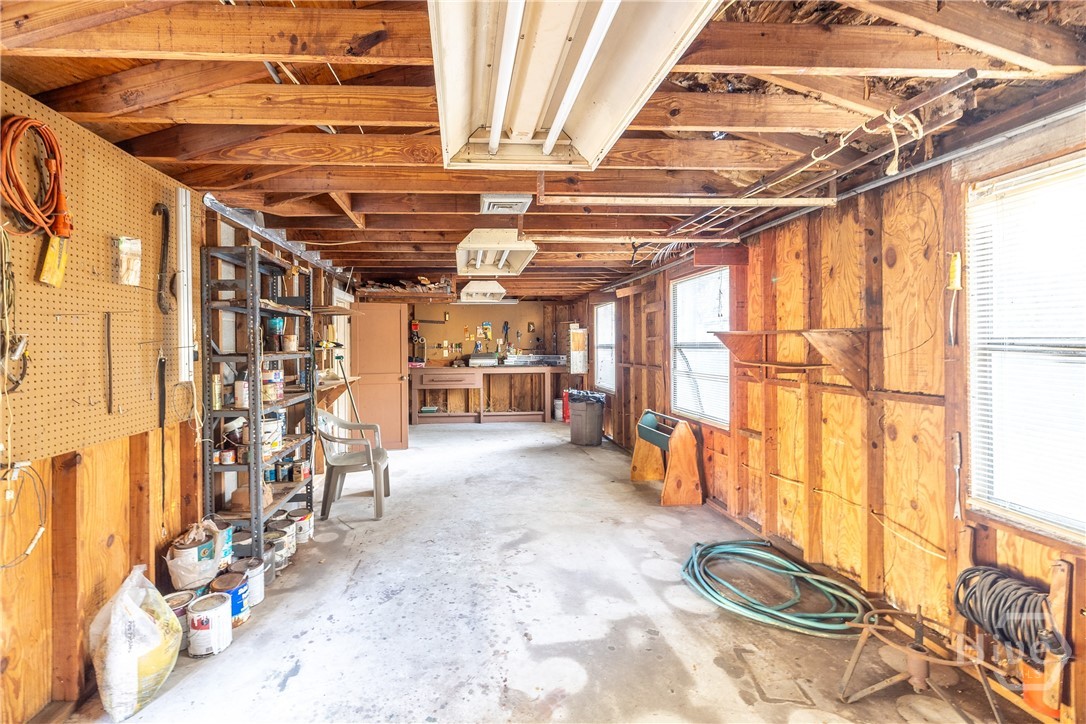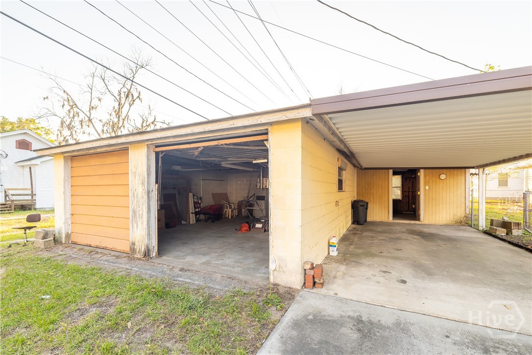 Unlock the potential in this standout investment opportunity. Situated on a rare double lot, this property offers flexibility for investors looking to renovate, rent, or flip. With some cleanup and targeted repairs, it can quickly become a highly desirable asset.The main house features a welcoming front porch and a functional layout that includes a formal dining room, galley kitchen, and utility room. Beneath the existing carpet, you’ll find hard oak flooring ready to be brought back to life. The HVAC system and water heater are operational but dated.The exterior amenities set this property apart: a spacious 2-car garage paired with an equally large workshop and attached carport, all equipped with power and plumbing—ideal for hobbyists, contractors, or additional storage and workspace needs.The property does require some attention, including roof repairs on both the main house and workshop. There has been prior termite activity noted in a small section at the front of the home, attributed to past water damage from a failed gutter, as well as along the back wall of the workshop. Both areas are visible and accessible, and there is no active infestation. Treatment has been quoted at $900 through Yates Astro, with the option to secure a repair and retreat bond one year after treatment. With solid bones, generous lot size, and versatile outbuildings, this property is primed for transformation and long-term upside.