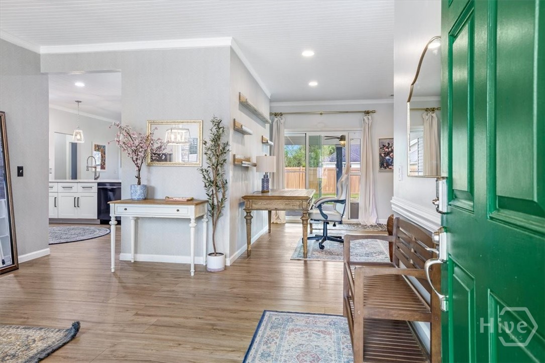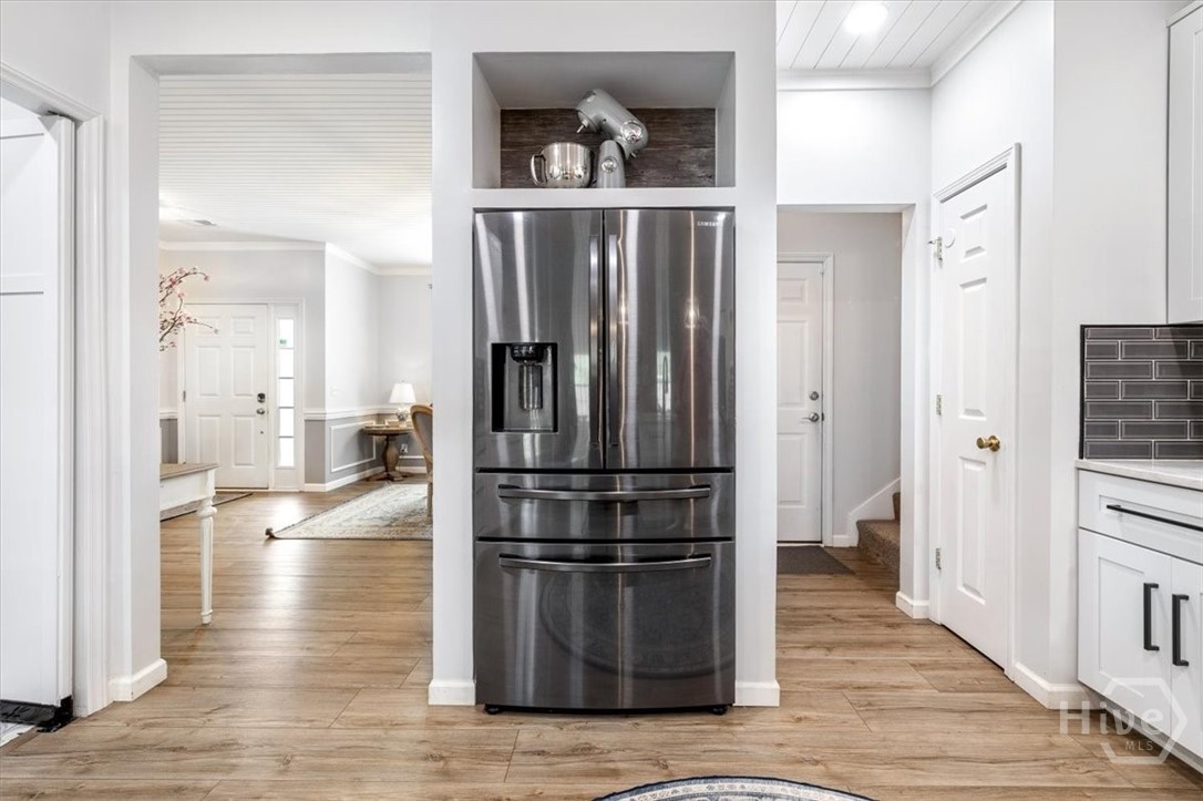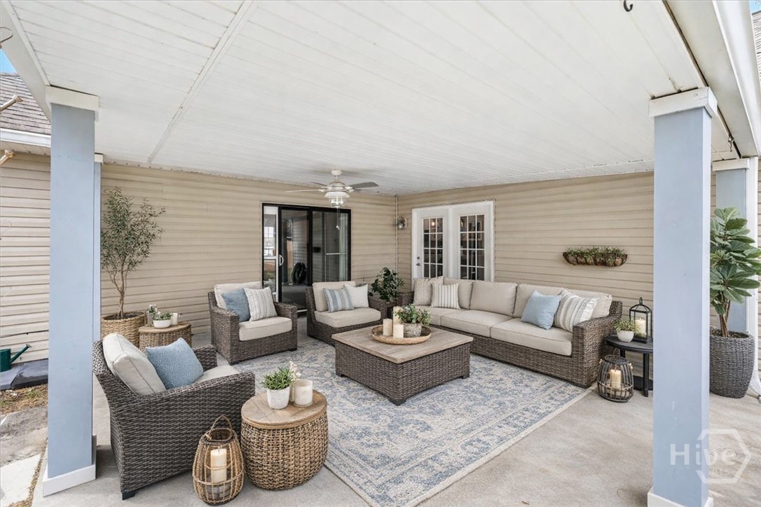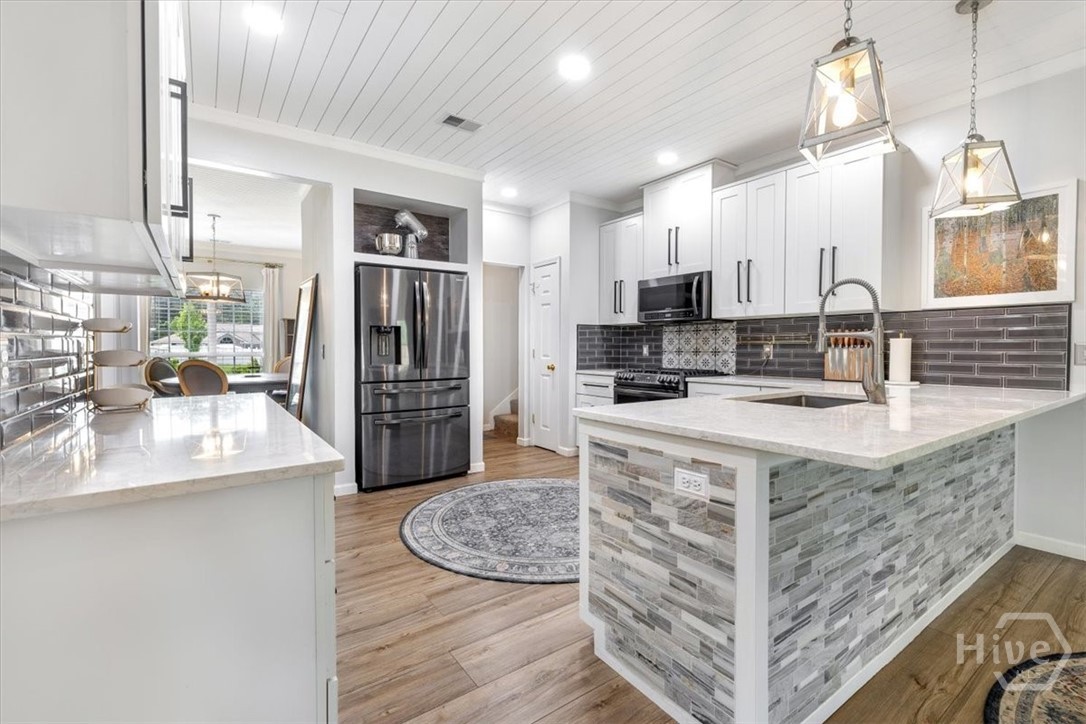 Tucked away on a quiet, private cul-de-sac, this beautifully updated 4-bedroom home offers the perfect blend of comfort, style, and privacy in the desirable Bridgewater community. Inside, the home has been thoughtfully upgraded with a beautiful & bright kitchen featuring quartz countertops, shaker cabinetry, stainless appliances, an appliance garage and 2nd pantry! Enjoy meals in the dining room and a night cap in the lounge while the kids enjoy movie night in the large window drenched living room. The spacious primary suite serves as a relaxing retreat, complete with a spa-like bath including dual vanities and a soaking tub inside a tiled shower. Two more bedrooms and upgraded full bath can be found on the 1st floor while a 4th bedroom awaits you upstairs! Step outside and experience one of the home’s standout features—an expansive covered back porch overlooking a peaceful backyard enclosed by a designer-inspired vinyl privacy fence, offering both beauty and seclusion. Whether entertaining or unwinding, this outdoor space is designed to be enjoyed year-round. Located in a well-established community with resort-style amenities including a pool, pavilion, and playground, this home delivers both lifestyle and location in the heart of Pooler.