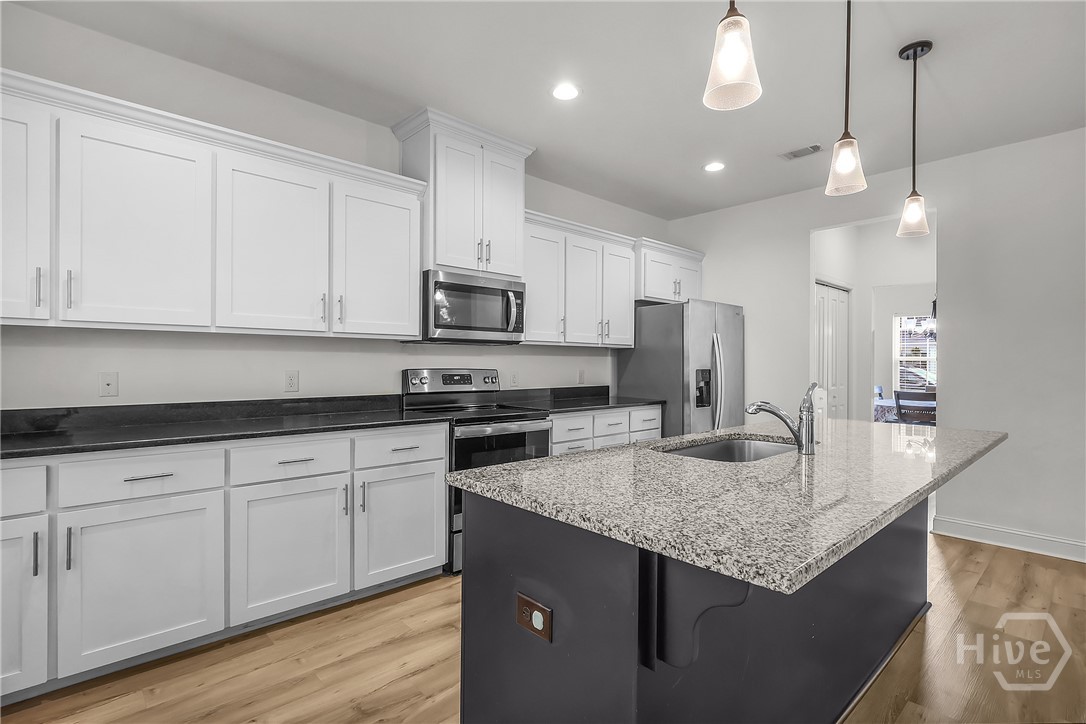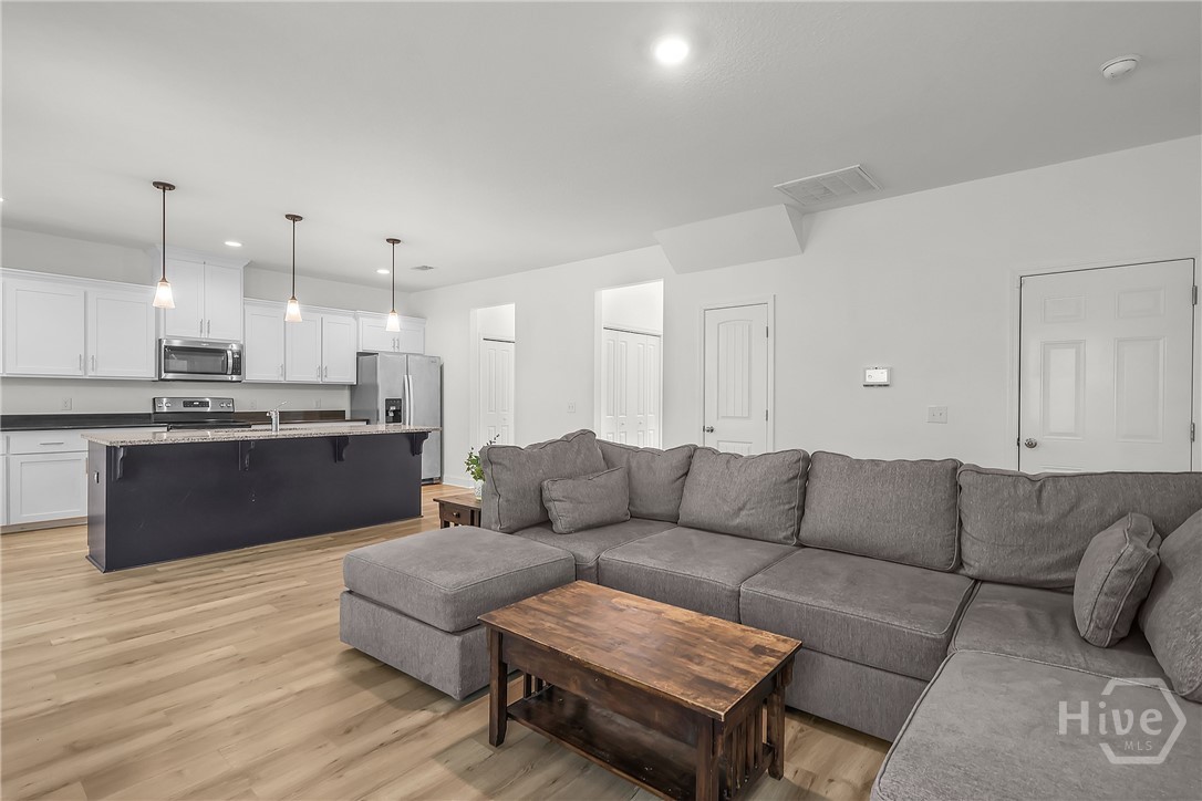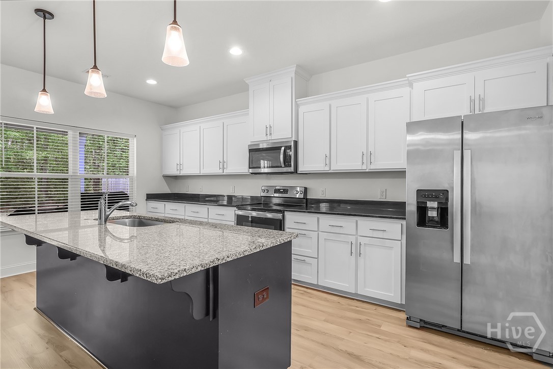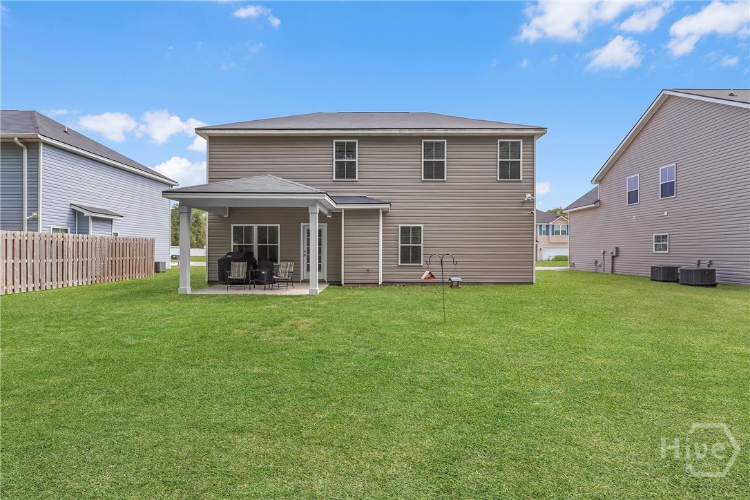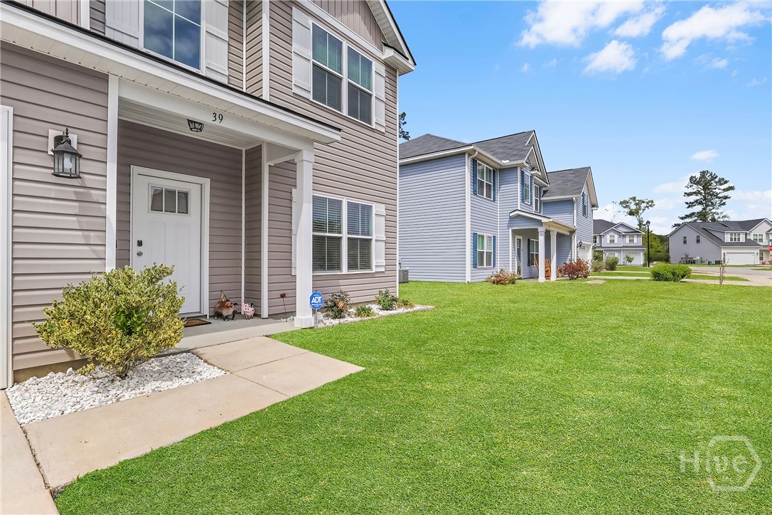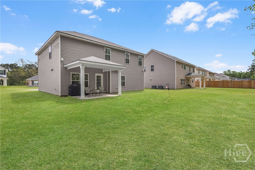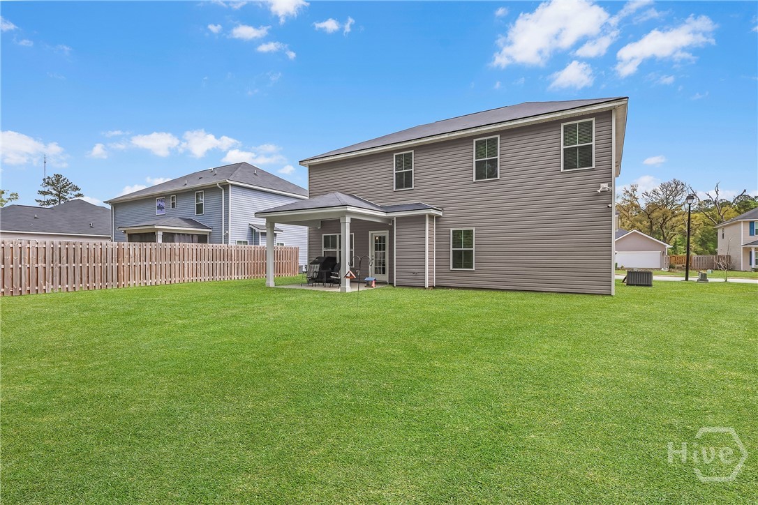 Built in 2021, this beautifully designed two-story home offers the perfect blend of modern style and functional living. With 5 bedrooms, 3 full bathrooms, and over 2,200 square feet, there’s plenty of space for everyone. The main level features a versatile guest bedroom and full bath, ideal for visitors, a home office, or flexible living needs. The open-concept kitchen and living area create a warm, inviting space perfect for entertaining or everyday life, with natural light pouring in through the windows. Just off the kitchen, a formal dining area provides the perfect setting for gatherings and special occasions. Upstairs, the spacious primary suite serves as a private retreat, complete with a well-appointed en-suite bathroom and generous closet space. The conveniently located second-floor laundry room adds ease to your daily routine. Not in a flood zone and irrigation installed! Rear covered patio with larger slab. This home offers comfort, space, and a prime location—all in one.