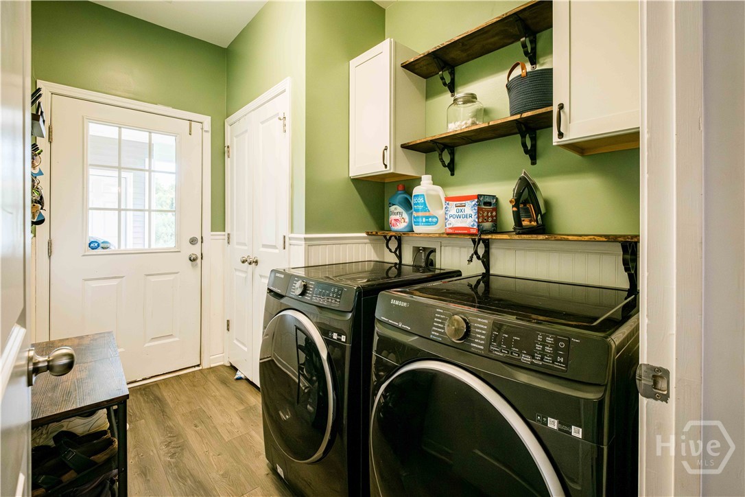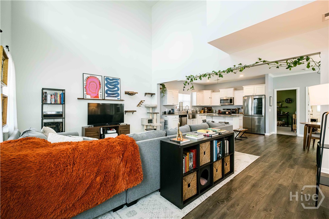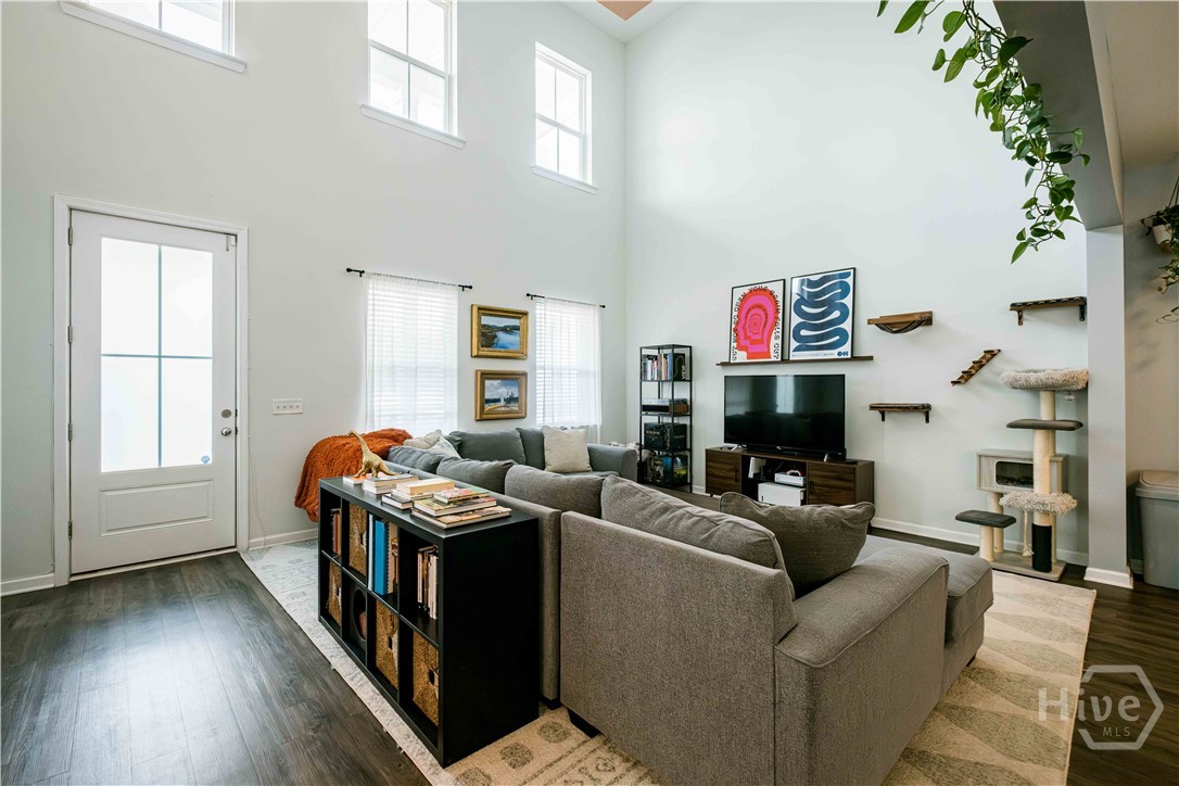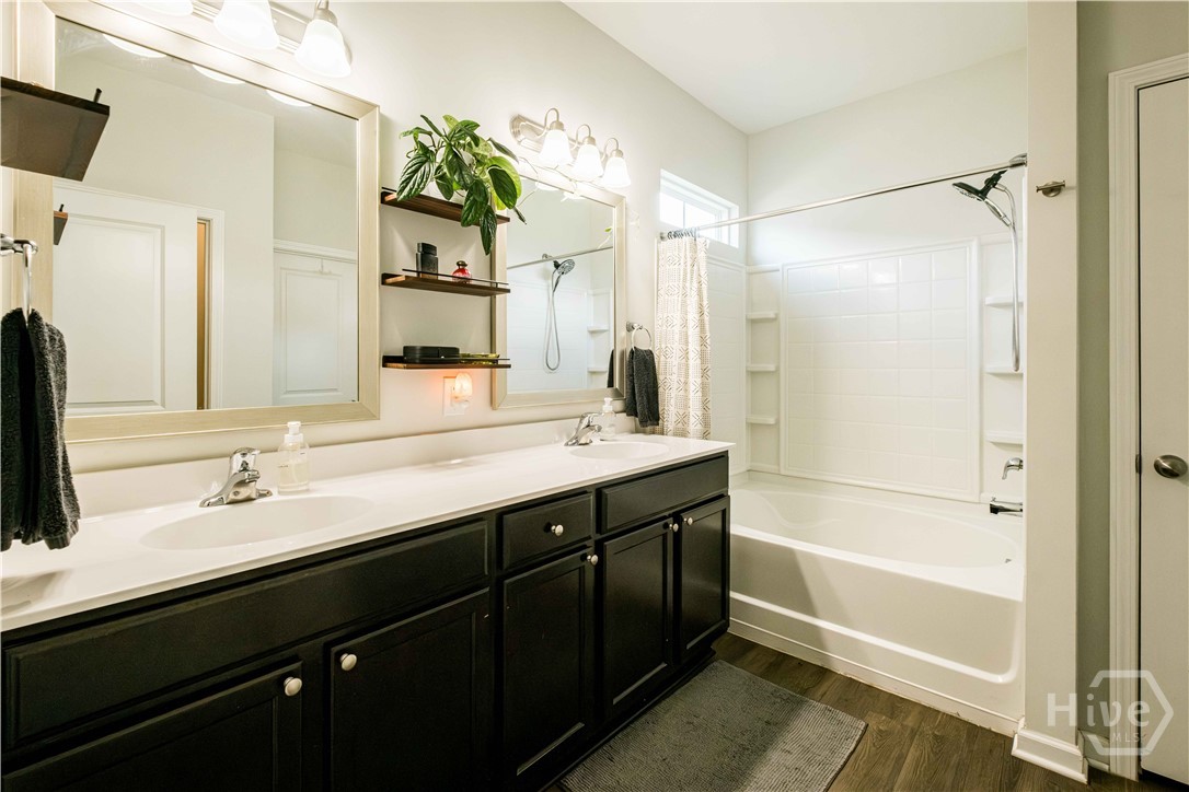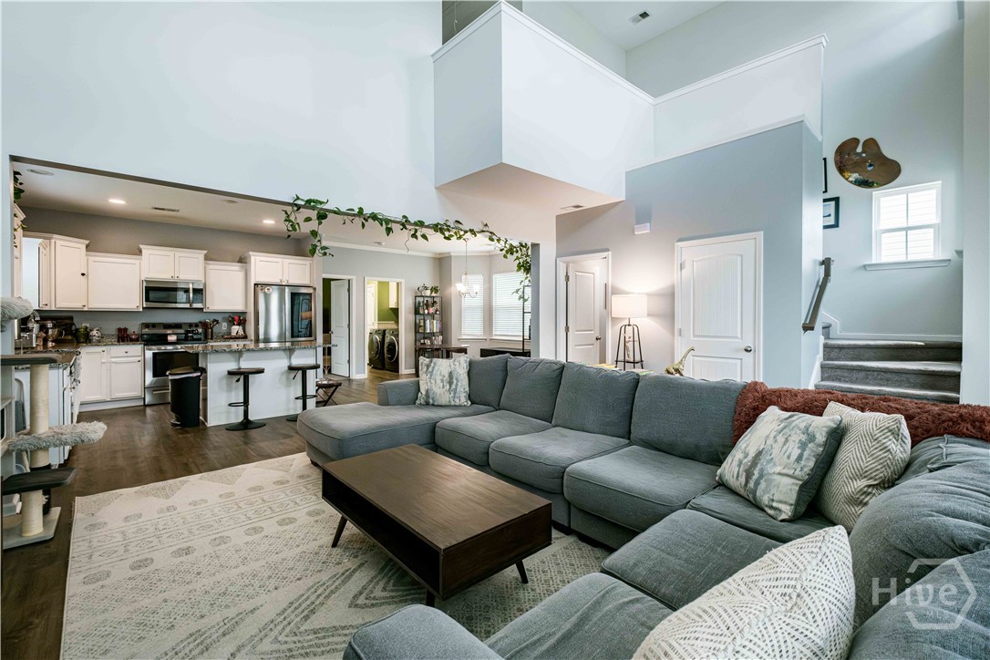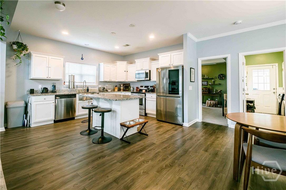 Beautiful three-bed home in one of Port Wentworth’s most amenity-rich neighborhoods, perfect for relaxing, entertaining, and enjoying an active lifestyle. Open, airy floor plan with primary suite on the main level, complete with a walk-in closet, bathtub, and double sink vanity. Kitchen features granite countertops, a large island, and a breakfast nook. Home has high ceilings, abundant natural light. Two bedrooms upstairs have double closets, plus a landing area that overlooks the living space below. Includes an attached laundry room with washer-dryer hookups, double car garage that enters from a rear lane, and private back patio. Beyond your doorstep, community offers abundant amenities like neighborhood pool and lazy river, walking trails, scenic pond, fitness center, playground, and soccer field. Perfect blend of tranquility and accessibility with easy access to I-95, and just minutes from downtown Savannah and Pooler. The Market at Rice Hope featuring a Publix Supermarket and other neighborhood retailers just a short stroll away.